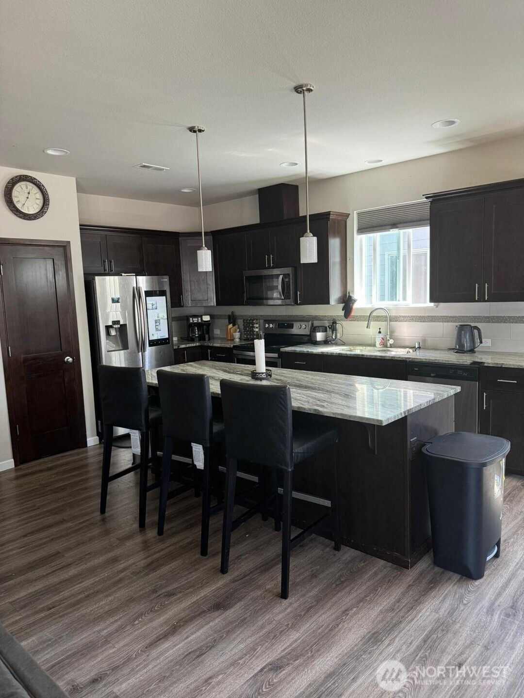 Gorgeous open concept great room for easy living in Tahoma Terra development. Stunning kitchen offer ample cabinetry with beautiful slab granite eating island, touch faucet, dining area and walk out to a covered porch. Cozy gas fireplace and main level flex room - formal dining, office space. The upstairs offers 4 bdrms up, laundry, PLUS large bonus room that could be a 5th bdrm. Large primary suite, 5 piece ensuite bathroom has radiant heat tile floors, large walk-in closet and remote controlled lighting. New LED lights throughout, and custom blinds - some are dual way close. Lovely, soft gray decor. All appliances stay, this home is turn key ready to move in! Great location closed to well maintained community park, Yelm, Yelm shopping, amenities nearby and easy access to east gate Ft. Lewis. This won't last long, show with confidence!