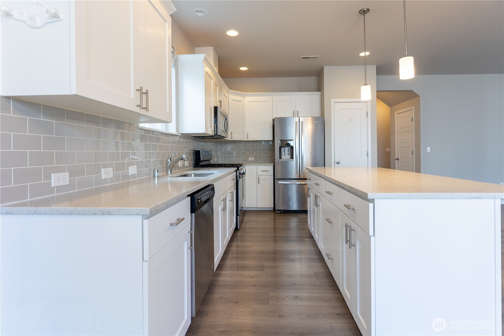 Welcome to your next home in the Tahoma Terra Neighborhood. This beautifully maintained 2879 sqft home features a welcoming covered front porch and a versatile third-floor bonus room complete with a 3/4 bath- perfect for guests or a media space. The main level includes a dedicated den or flex room, ideal for a home office or additional living space. Enjoy open-concept living with a bright, modern kitchen with stainless steel appliances and white cabinetry. There is brand-new first-floor carpeting, along with a dining area that opens to a covered back patio and a fully fenced backyard, creating an easy flow for indoor-outdoor living. Situated just around the corner from a community park with a playground, this home offers both convenience and tranquility. Conveniently located near shopping, schools, walking trails, a golf course, and JBLM, this home offers comfort, flexibility, and a location that continues to be in high demand.