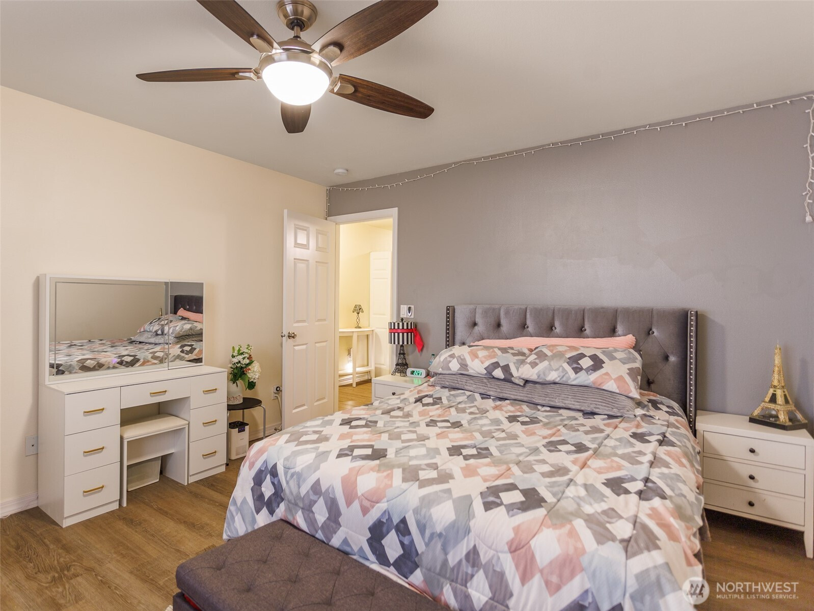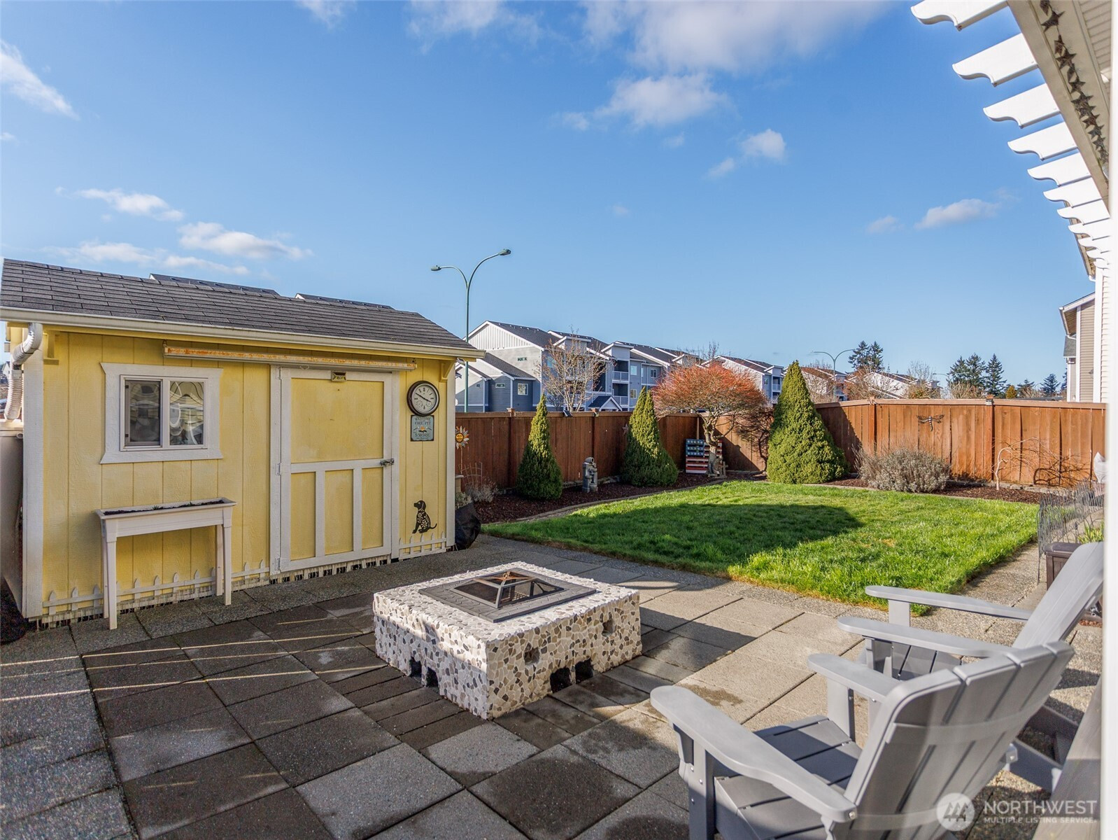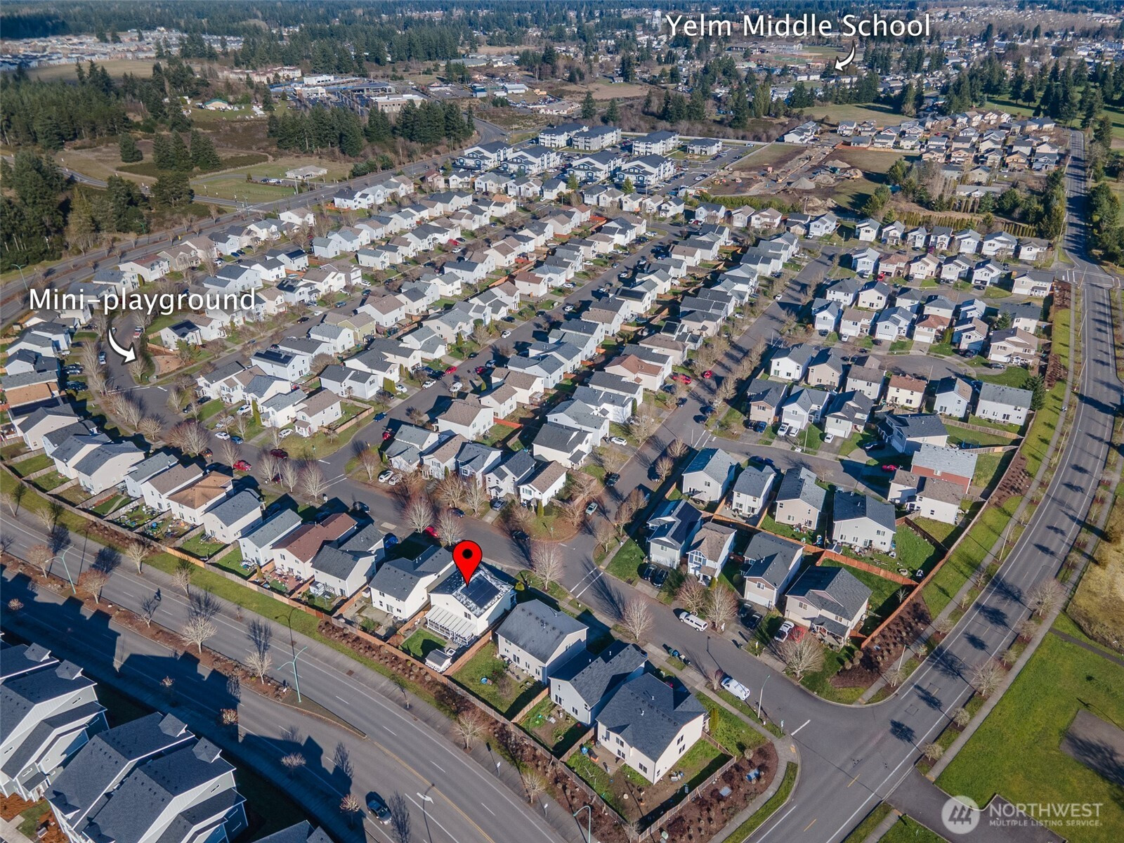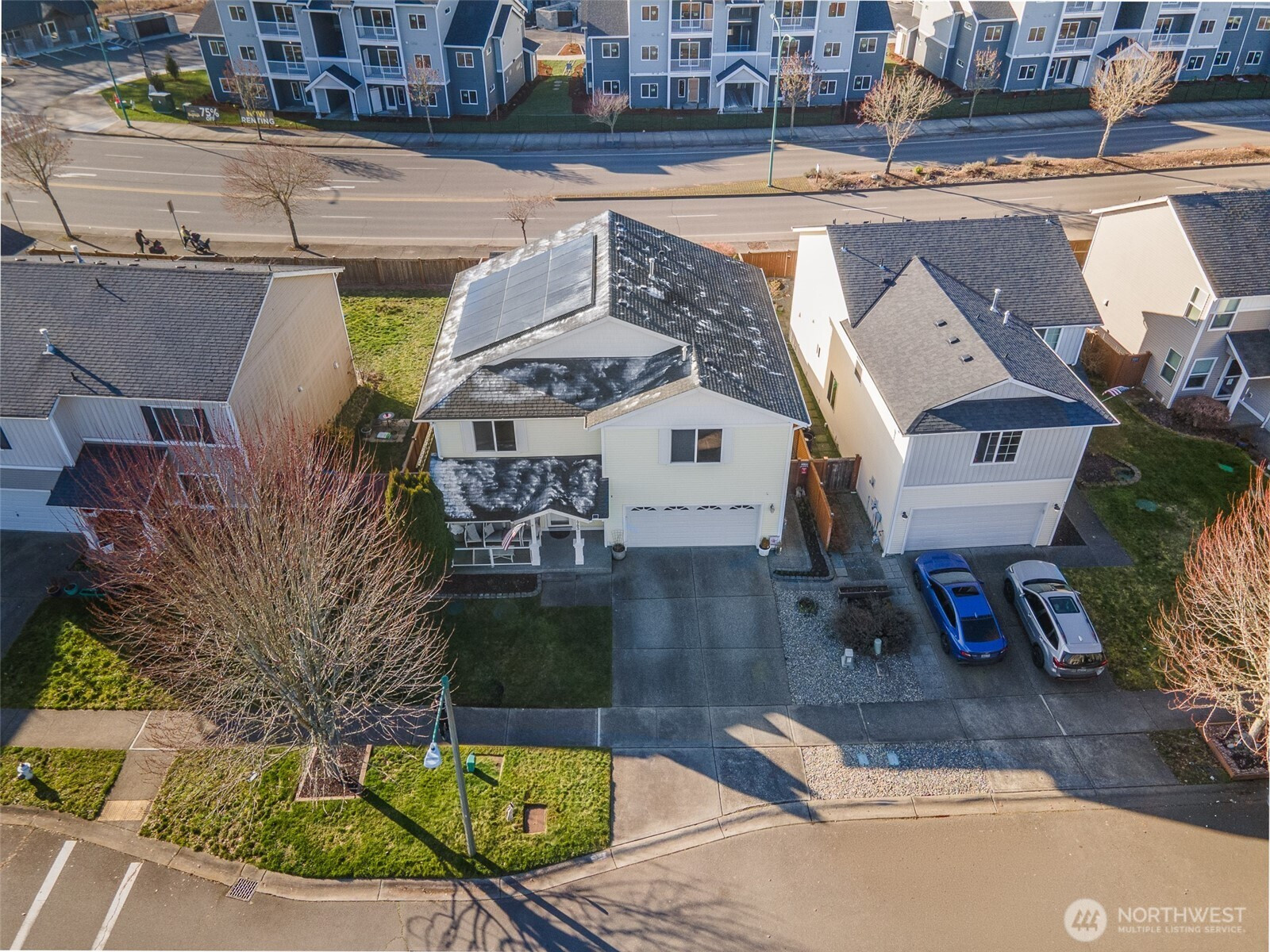Welcome to this stunning 4-bedroom, 2.5-bath home offering a perfect blend of comfort, efficiency, and modern upgrades in the heart of Yelm’s desirable Tahoma Terra community. Enjoy a charming peek-a-boo view of majestic Mt. Rainier, complemented by newer solar panels and an A/C unit that help keep utility costs low. Inside, you’ll find newer LVP flooring, an in-house vacuum system, and a spacious kitchen featuring an island, newer appliances, and a large walk-in pantry. The home’s generous layout includes multiple walk-in closets, spacious bedrooms, and an inviting primary suite with his-and-her closets plus an expansive walk-in off a luxurious 5-piece bath. Fresh interior and exterior paint make this home truly move-in ready. Step outside to a fully fenced yard equipped with a shed, large covered deck, sprinkler and mister system, plus rain barrels—ideal for entertaining, gardening, or simply relaxing. Vinyl siding offers easy, low-maintenance living. Located close to parks, dining, shopping, medical care, golf, and top Yelm schools, with an easy commute to JBLM, this home offers convenience at every turn. Don't miss out on this home!