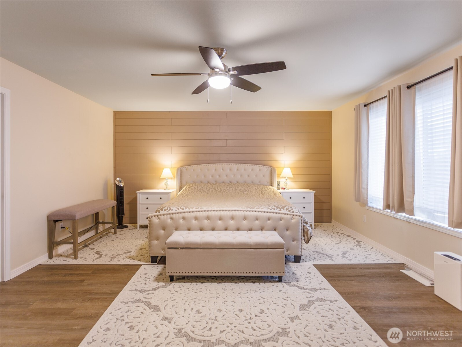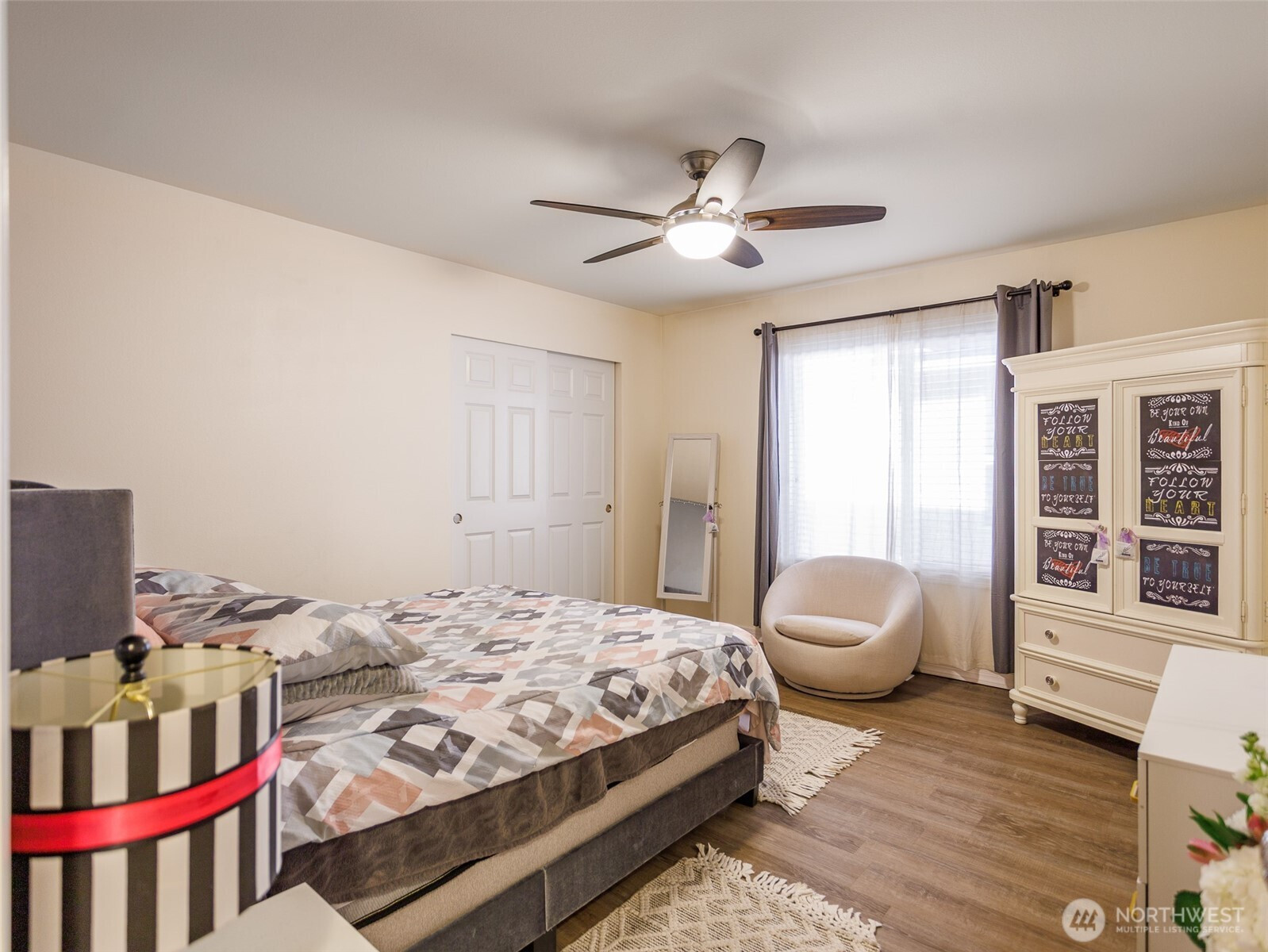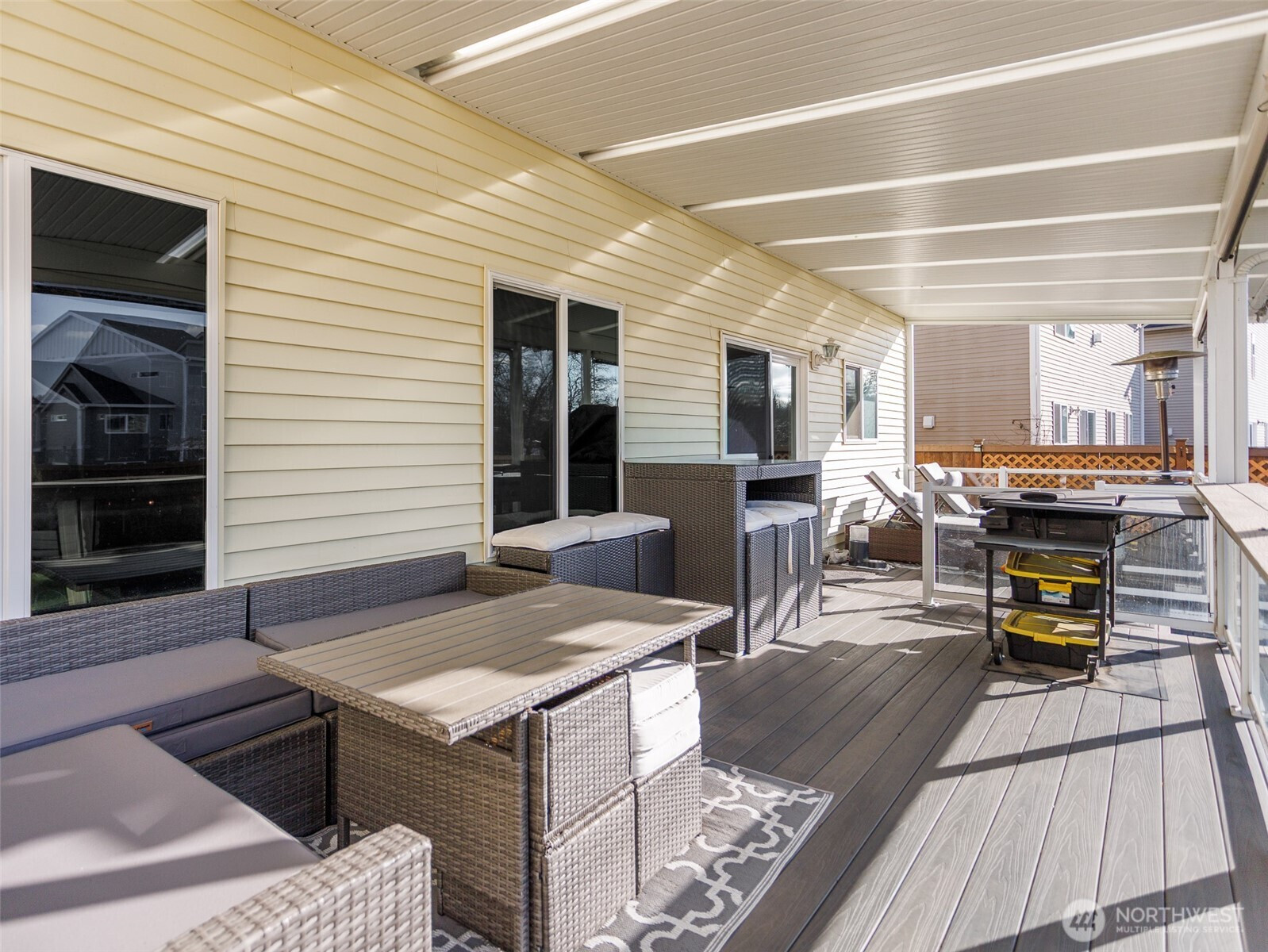 Welcome to this stunning 4-bedroom, 2.5-bath home offering a perfect blend of comfort, efficiency, and modern upgrades in the heart of Yelm’s desirable Tahoma Terra community. Enjoy a charming peek-a-boo view of majestic Mt. Rainier, complemented by newer solar panels and an A/C unit that help keep utility costs low. Inside, you’ll find newer LVP flooring, an in-house vacuum system, and a spacious kitchen featuring an island, newer appliances, and a large walk-in pantry. The home’s generous layout includes multiple walk-in closets, spacious bedrooms, and an inviting primary suite with his-and-her closets plus an expansive walk-in off a luxurious 5-piece bath. Fresh interior and exterior paint make this home truly move-in ready. Step outside to a fully fenced yard equipped with a shed, large covered deck, sprinkler and mister system, plus rain barrels—ideal for entertaining, gardening, or simply relaxing. Vinyl siding offers easy, low-maintenance living. Located close to parks, dining, shopping, medical care, golf, and top Yelm schools, with an easy commute to JBLM, this home offers convenience at every turn. Don't miss out on this home!