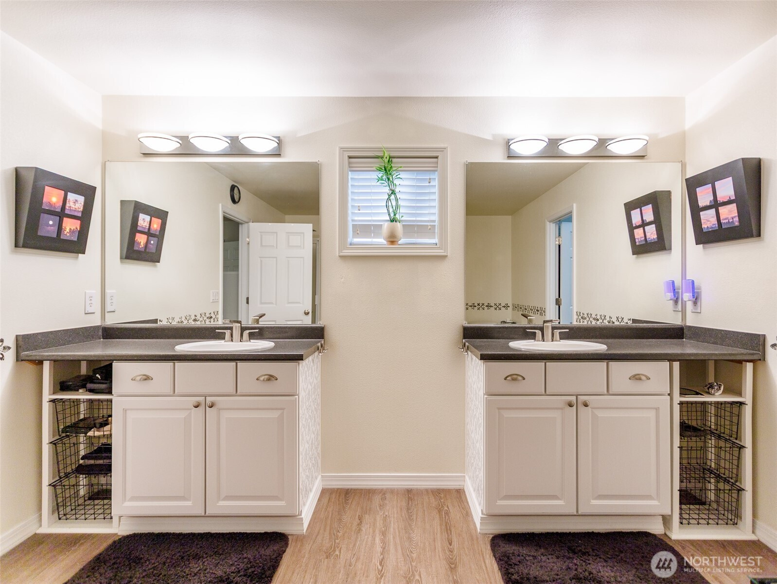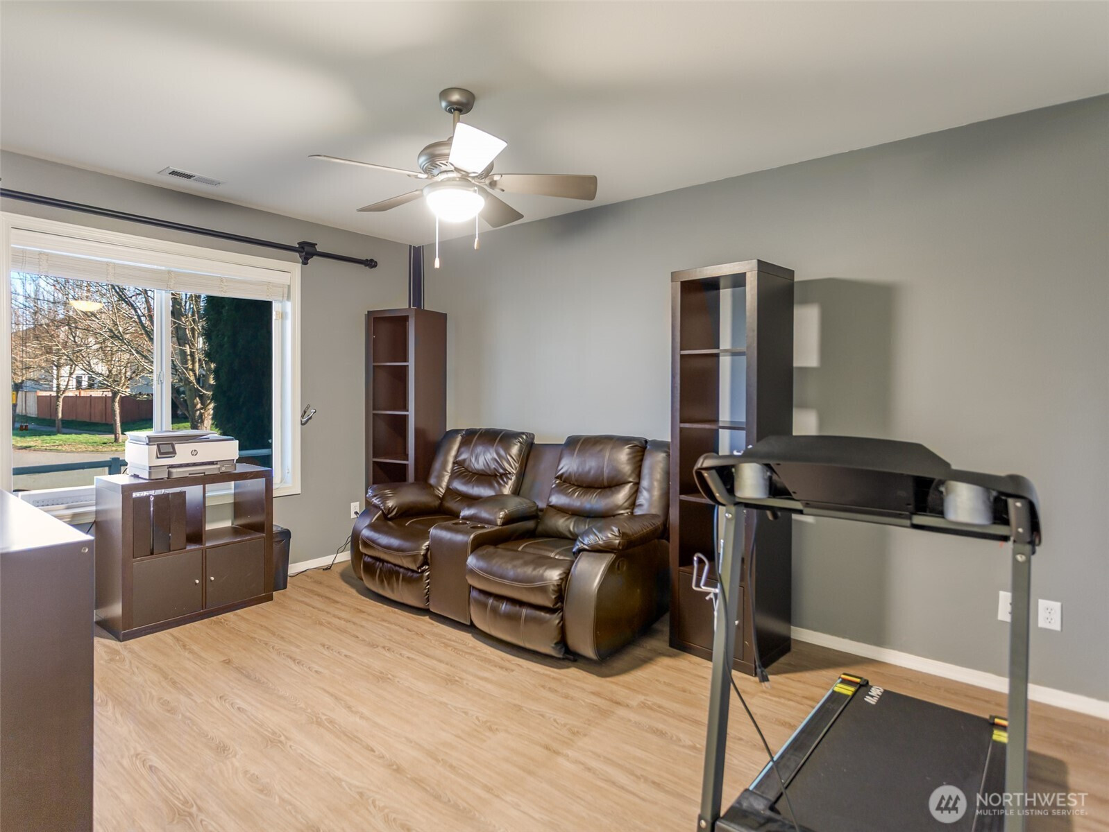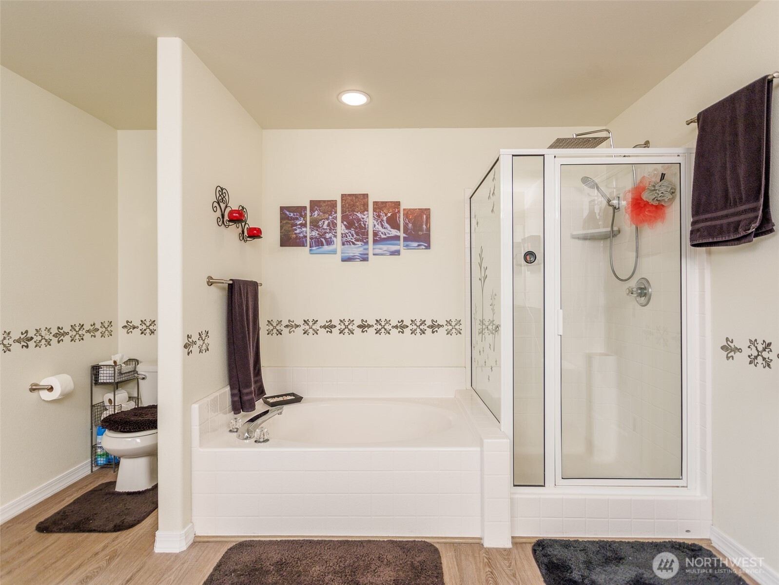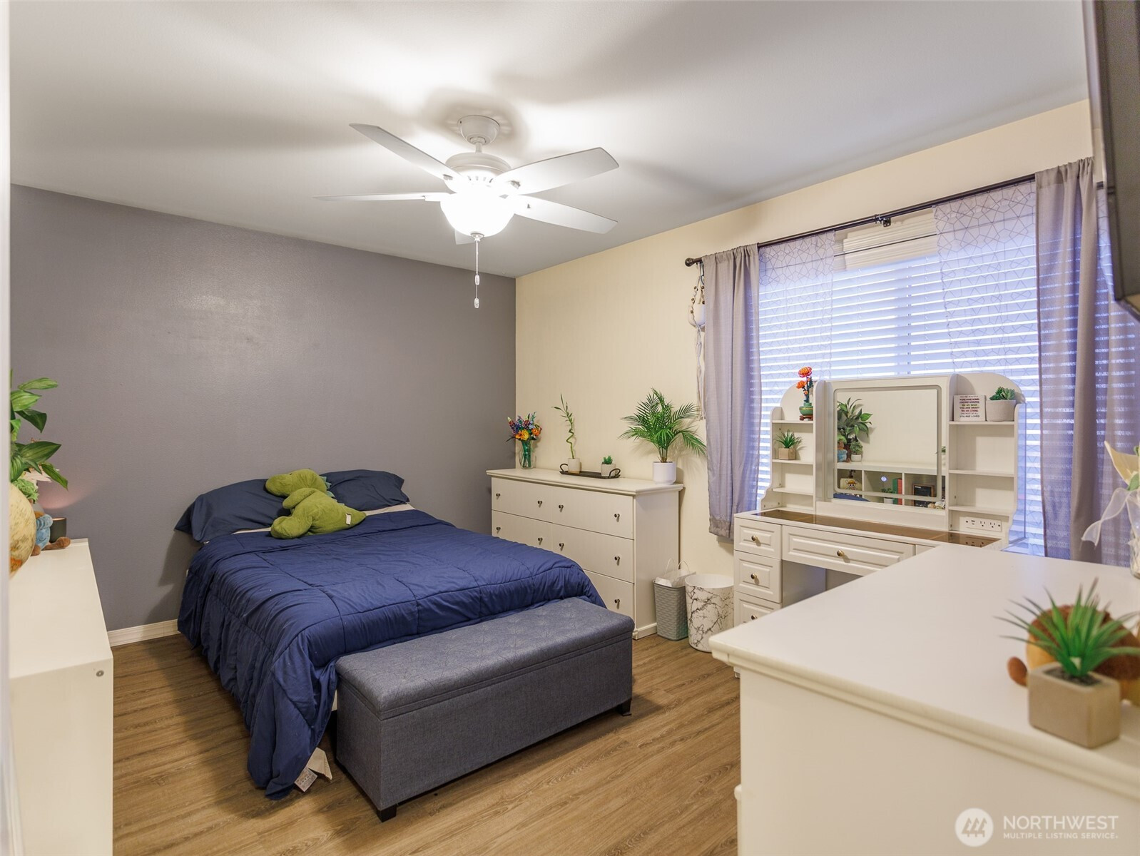 Welcome to this stunning 4-bedroom, 2.5-bath home offering a perfect blend of comfort, efficiency, and modern upgrades in the heart of Yelm’s desirable Tahoma Terra community. Enjoy a charming peek-a-boo view of majestic Mt. Rainier, complemented by newer solar panels and an A/C unit that help keep utility costs low. Inside, you’ll find newer LVP flooring, an in-house vacuum system, and a spacious kitchen featuring an island, newer appliances, and a large walk-in pantry. The home’s generous layout includes multiple walk-in closets, spacious bedrooms, and an inviting primary suite with his-and-her closets plus an expansive walk-in off a luxurious 5-piece bath. Fresh interior and exterior paint make this home truly move-in ready. Step outside to a fully fenced yard equipped with a shed, large covered deck, sprinkler and mister system, plus rain barrels—ideal for entertaining, gardening, or simply relaxing. Vinyl siding offers easy, low-maintenance living. Located close to parks, dining, shopping, medical care, golf, and top Yelm schools, with an easy commute to JBLM, this home offers convenience at every turn. Don't miss out on this home!
