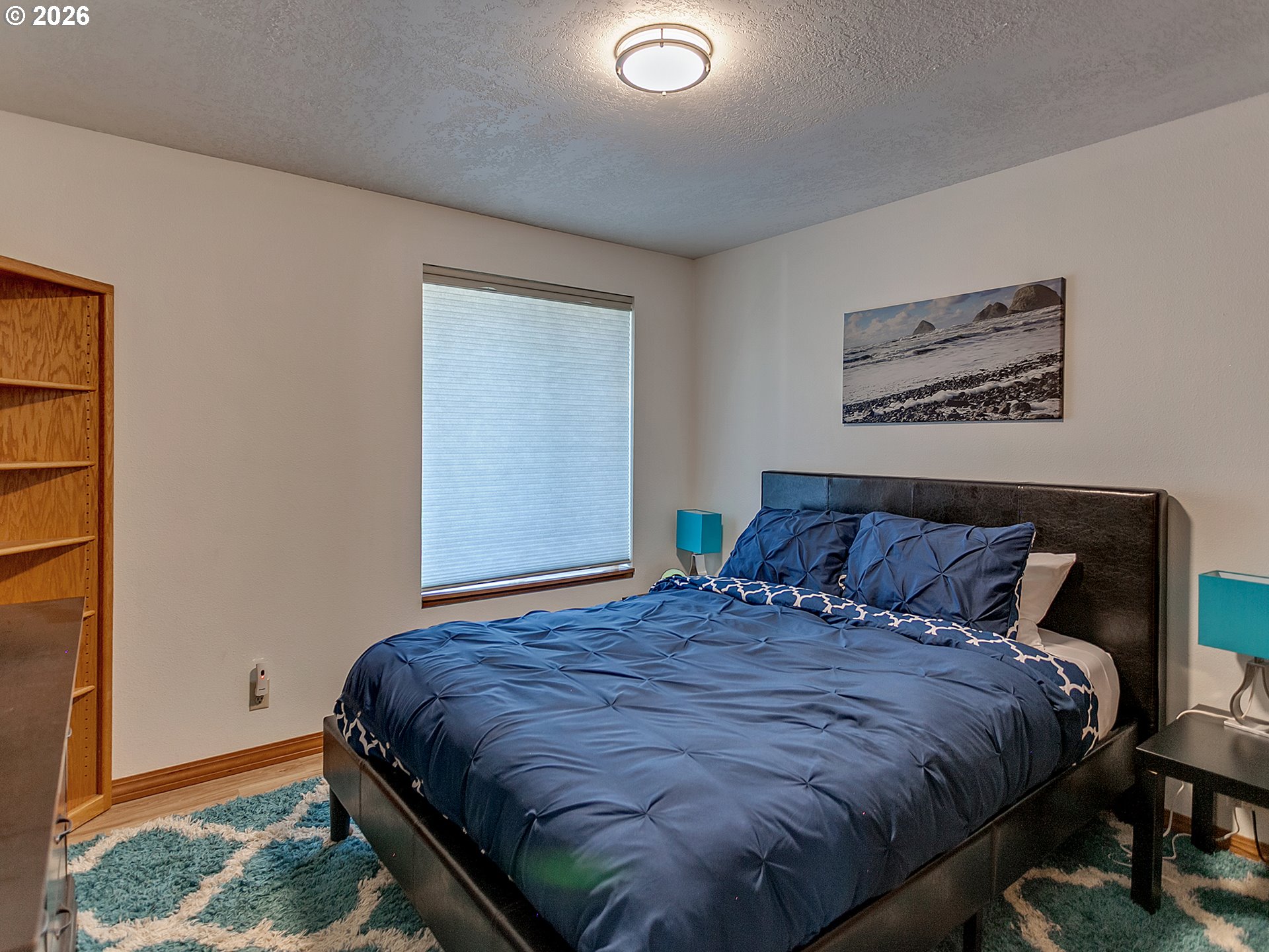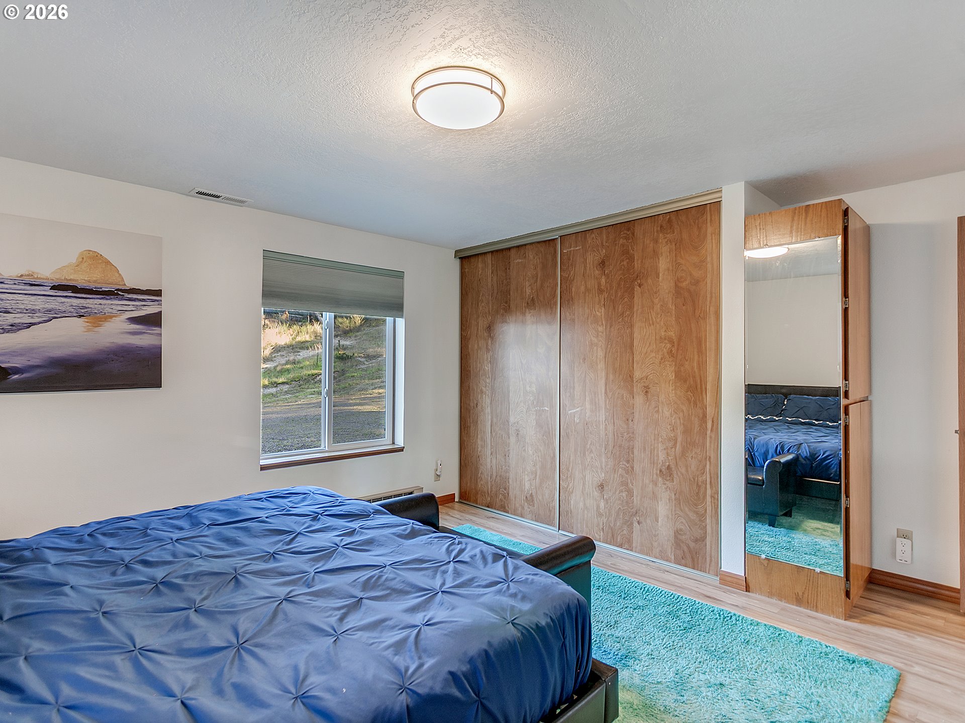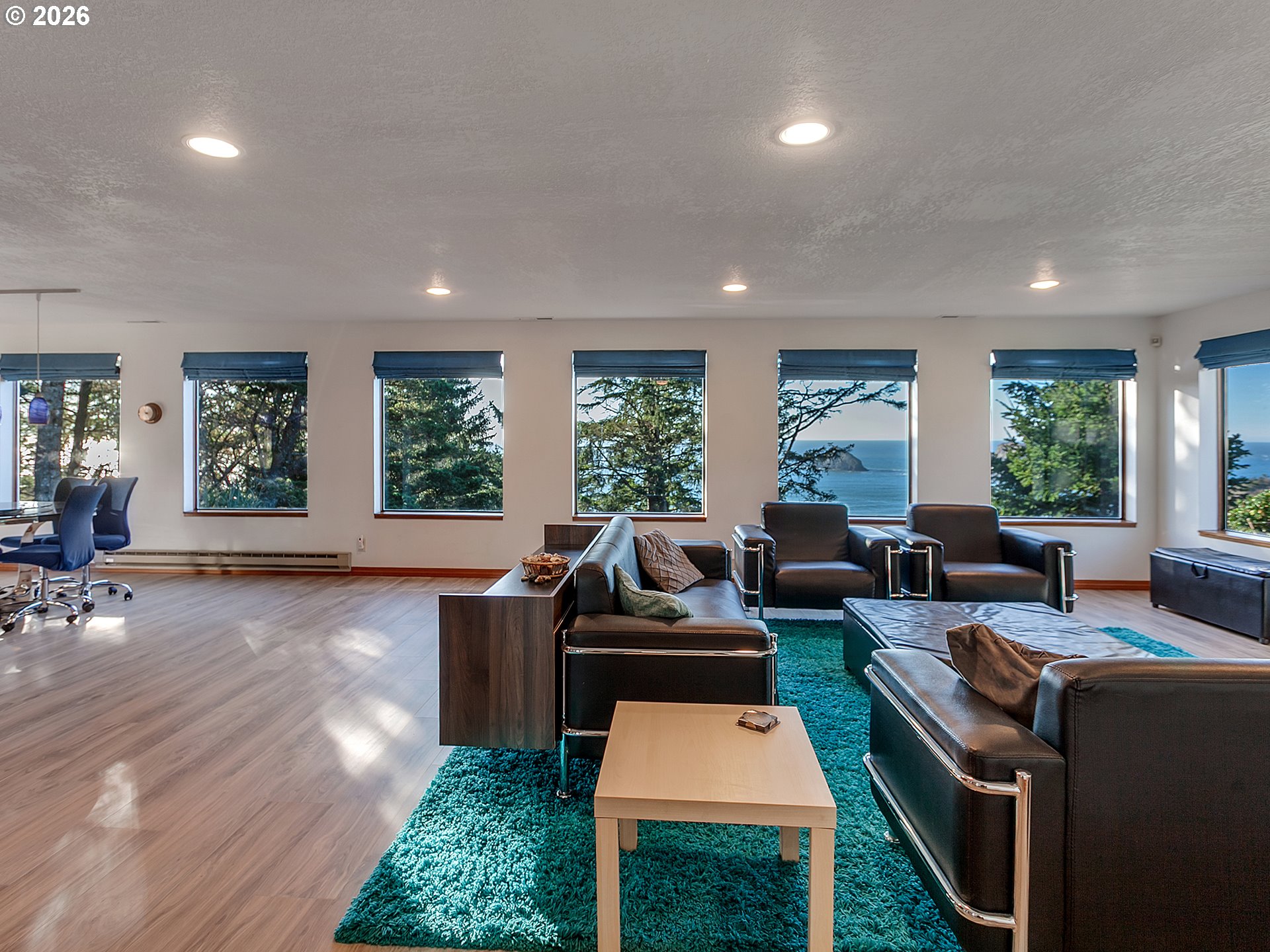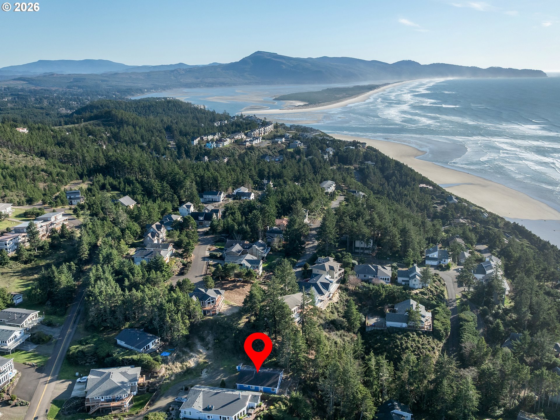 PANORAMIC OCEAN VIEW includes Three Arch Rocks nature preserve & Maxell Mountain cape. One level cottage tucked away at end of private drive with breathtaking view protected by cc&rs. Beautifully updated with cherry cabinets, granite counters, modern flush fireplace, LVP floor, stainless appliances. Tankless water heater. Forced air furnace added (baseboards still work if desired) plus heat pump for economy and cooling. Garage is double size but single overhead door. Beach trail down the street. Cc&rs limit bldg heights and vegetation. No Homeowner Assoc, no dues.