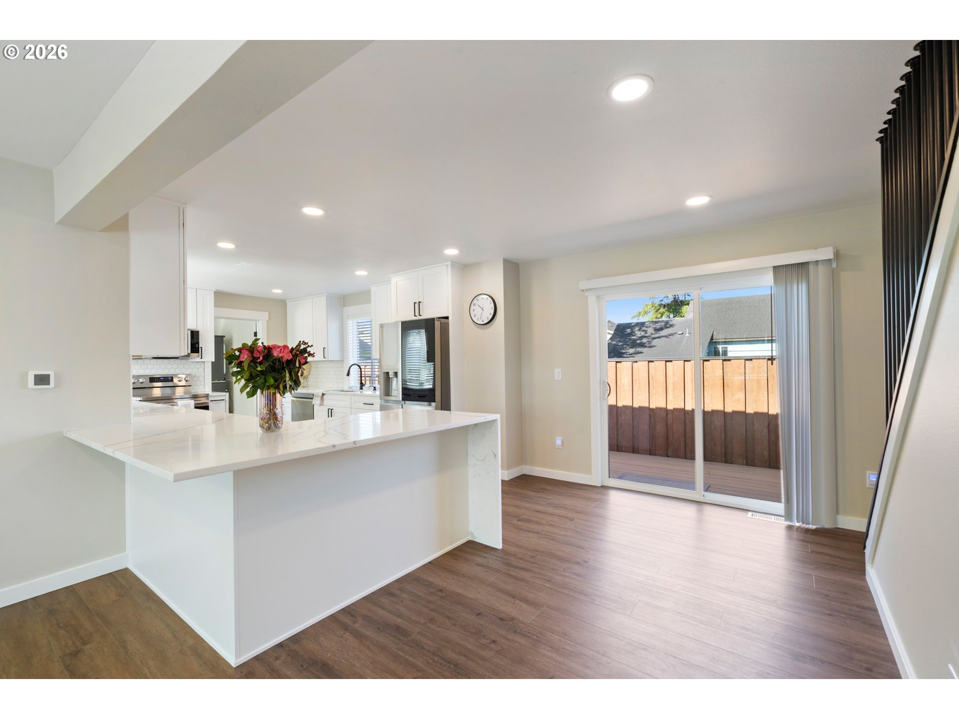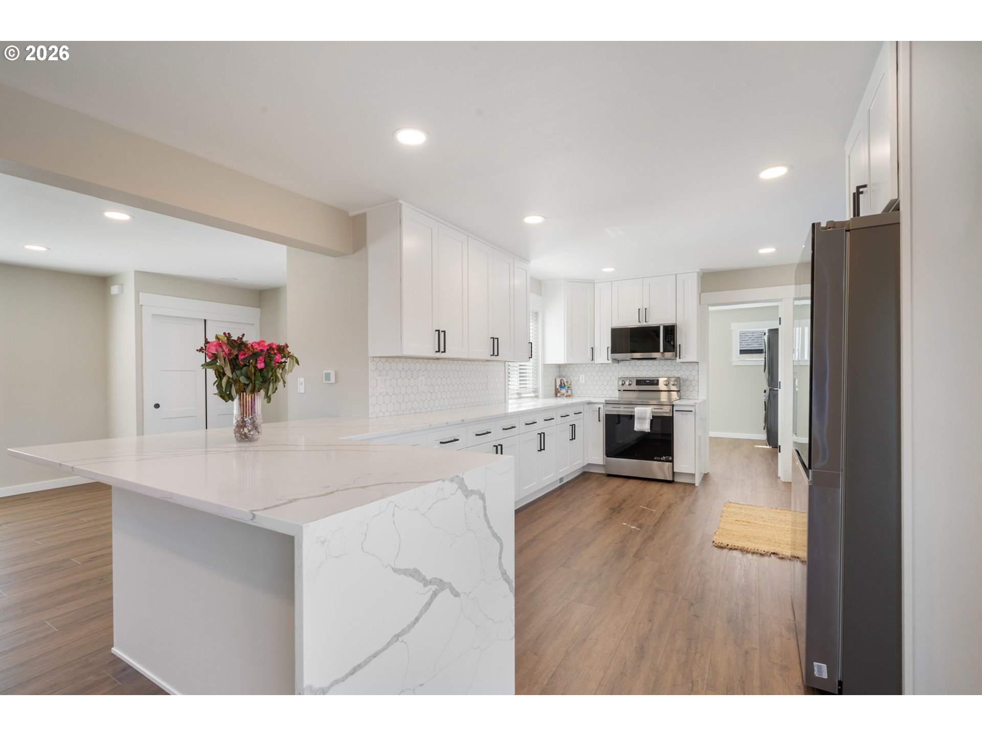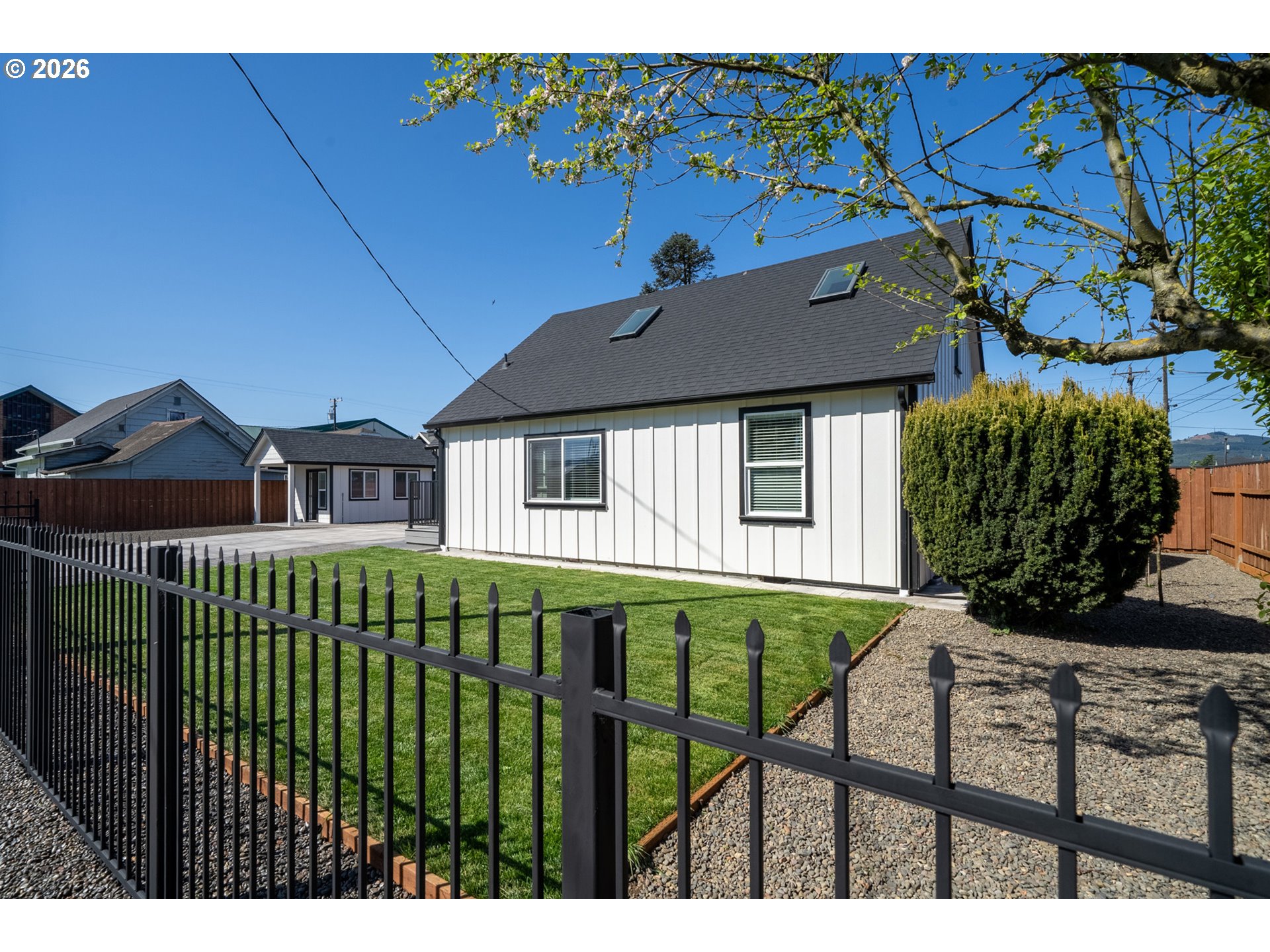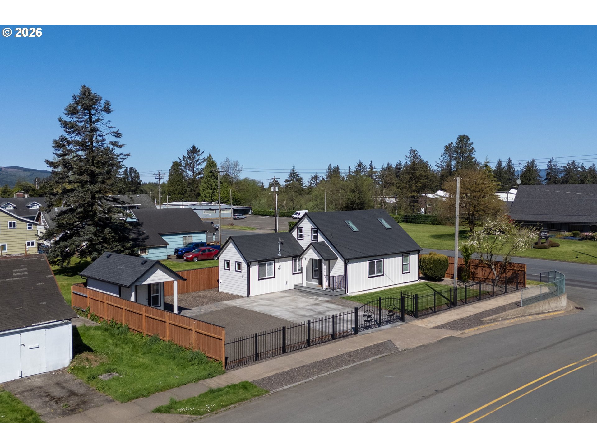 Welcome to this beautiful fully remodeled home in the heart of Tillamook. This home is like new! Tastefully updated from down to the studs with quality high-end finishes throughout. Fully fenced yard with parking for boat/RV and a cute detached outbuilding that can be converted to a cozy home office/sauna or anything you can think of. Home offers a grand craftsman kitchen with a generous quarts island. Two bedrooms on the main floor with a full bathroom and oversized laundry room that can be used as a den/office. Two bedrooms upstairs with a bathroom. This home was remodeled with intentions to keep and every part of the remodel used upgraded items such as: fully insulated interior walls for and 5/8 sheetrock for extra sound/weather insulation, quality LVP flooring, quality heating system, craftsman kitchen. Other upgrades include: NEW --> siding, roof, windows, concrete/pavers, electrical, plumbing, lighting fixtures, bathrooms, all new interior, appliances. It's a fully remodeled home that is LIKE NEW. Everything you need - Close to schools, parks, YMCA, Safeway and local hospitals. A grocery store is only 5 minutes away making daily essentials effortless. When it's time to unwind, the beach is less than 10 miles from your doorstep offering a perfect coastal escape. A great blend of comfort, convenience and seaside charm.