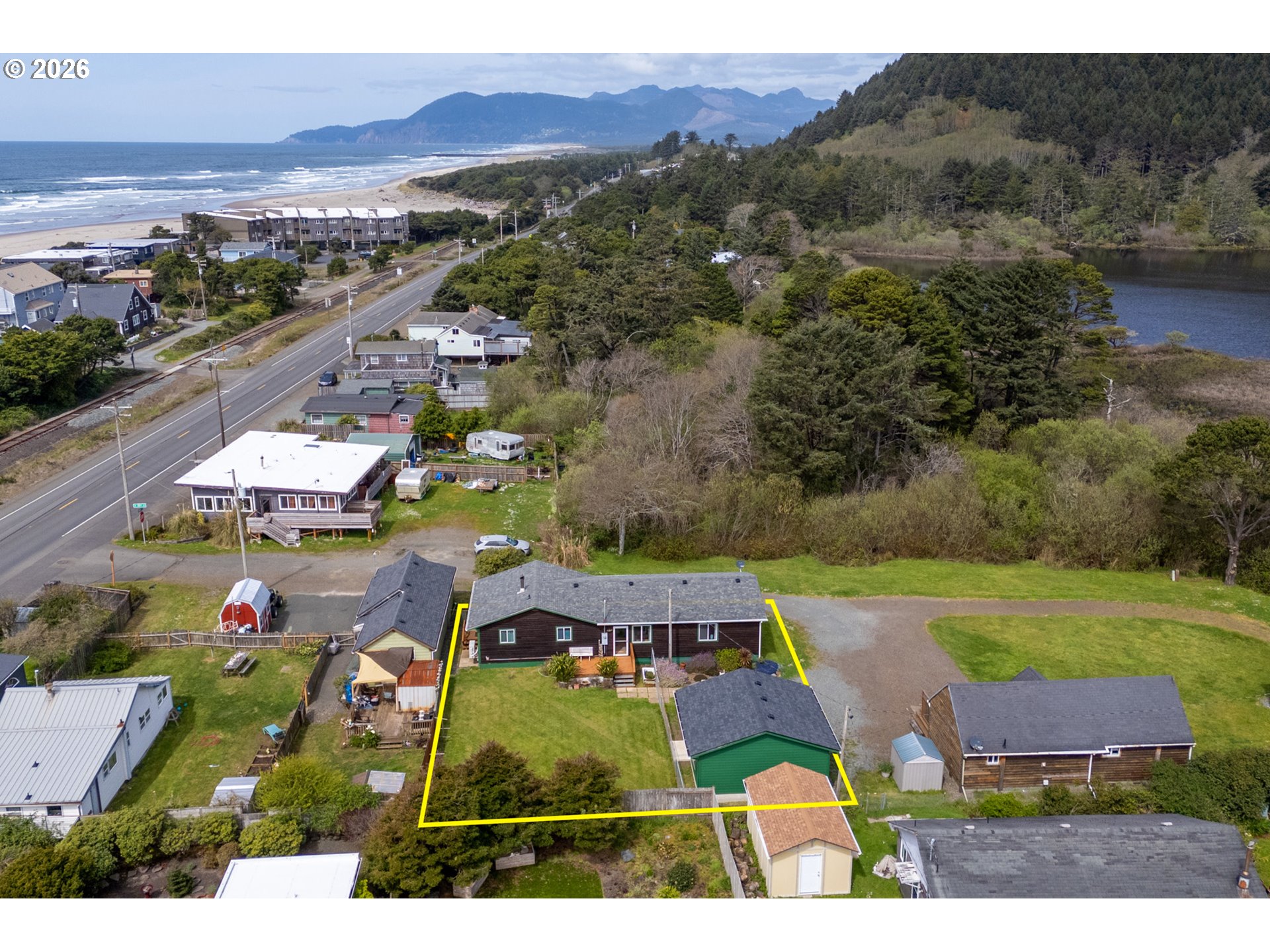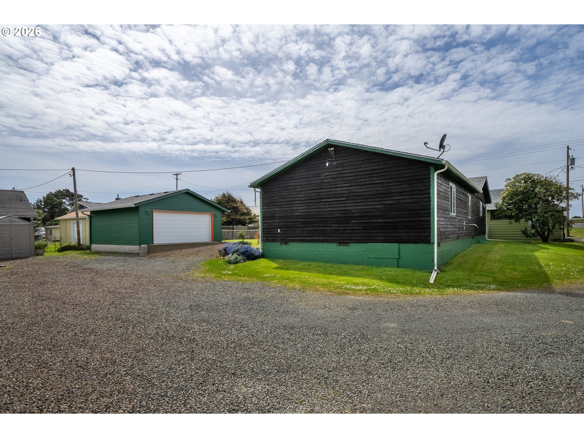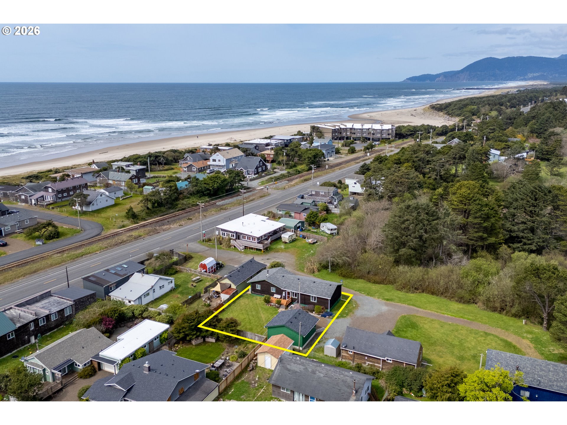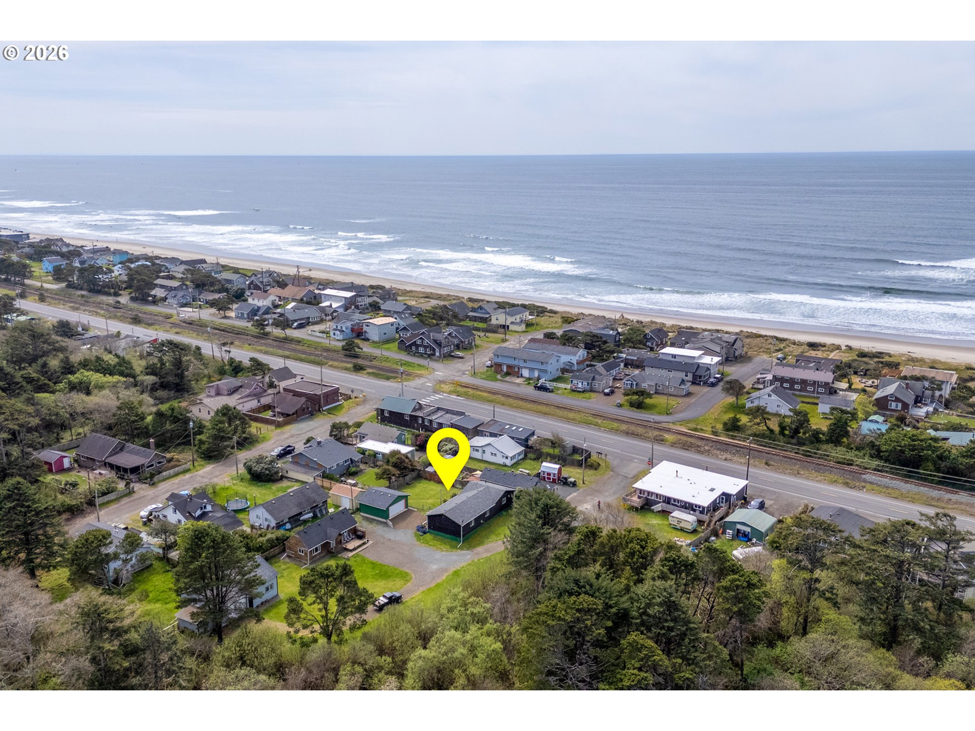 Charming coastal retreat just 1½ blocks from the beach, set on a beautifully fenced lot. This well-maintained home features two generously sized bedrooms with ample closet space and two full bathrooms. The spacious living room offers a warm and inviting atmosphere with a cozy pellet stove, perfect for year-round comfort. The open kitchen and dining area is both functional and welcoming, complete with a woodstove, soft-close cabinetry, and convenient pull-out storage. Thoughtful upgrades enhance both efficiency and livability, including a new 200-amp electrical panel and garbage disposal (2022), and a ductless mini-split system (2023) providing efficient heating and cooling throughout the home. A standout feature is the newly finished, oversized two-car garage (2025), fully insulated (R21/R30) and equipped with abundant electrical outlets, dual-directional lighting, and an automatic garage door opener—ideal for storage, hobbies, or workspace needs. Additional recent improvements include new front deck flooring (2025) and freshly stained and painted cedar shake siding (2025), adding to the home's curb appeal and longevity. This move-in-ready property offers comfort, functionality, and proximity to the coast—an ideal full-time residence or weekend getaway!