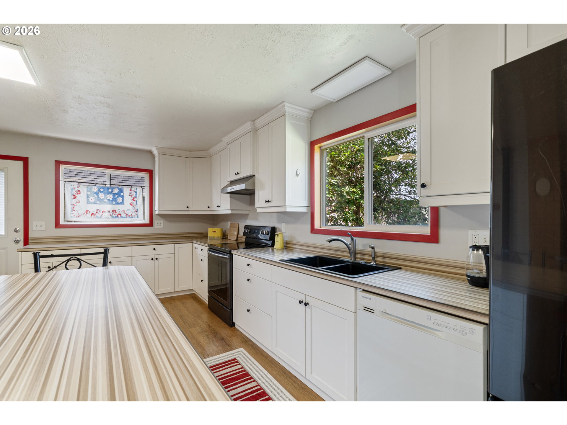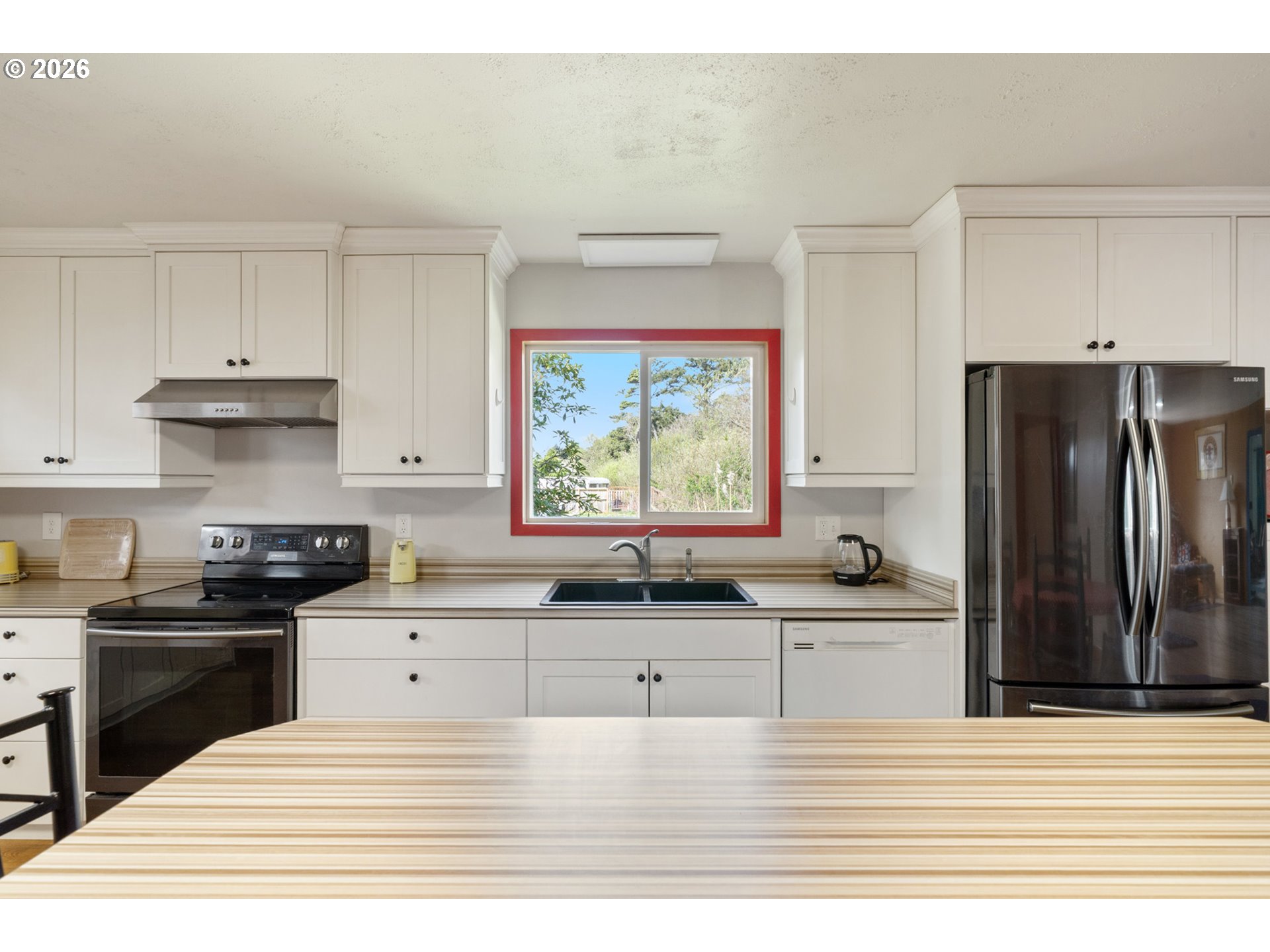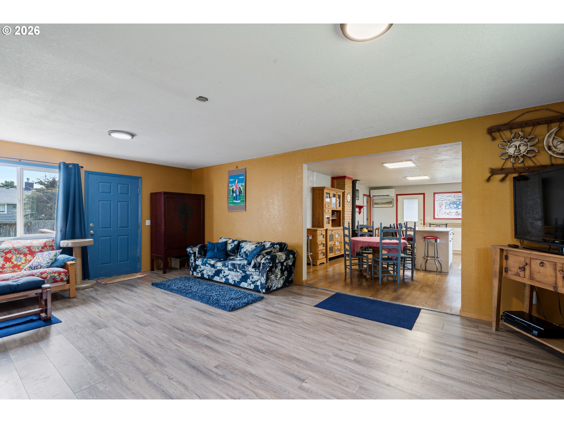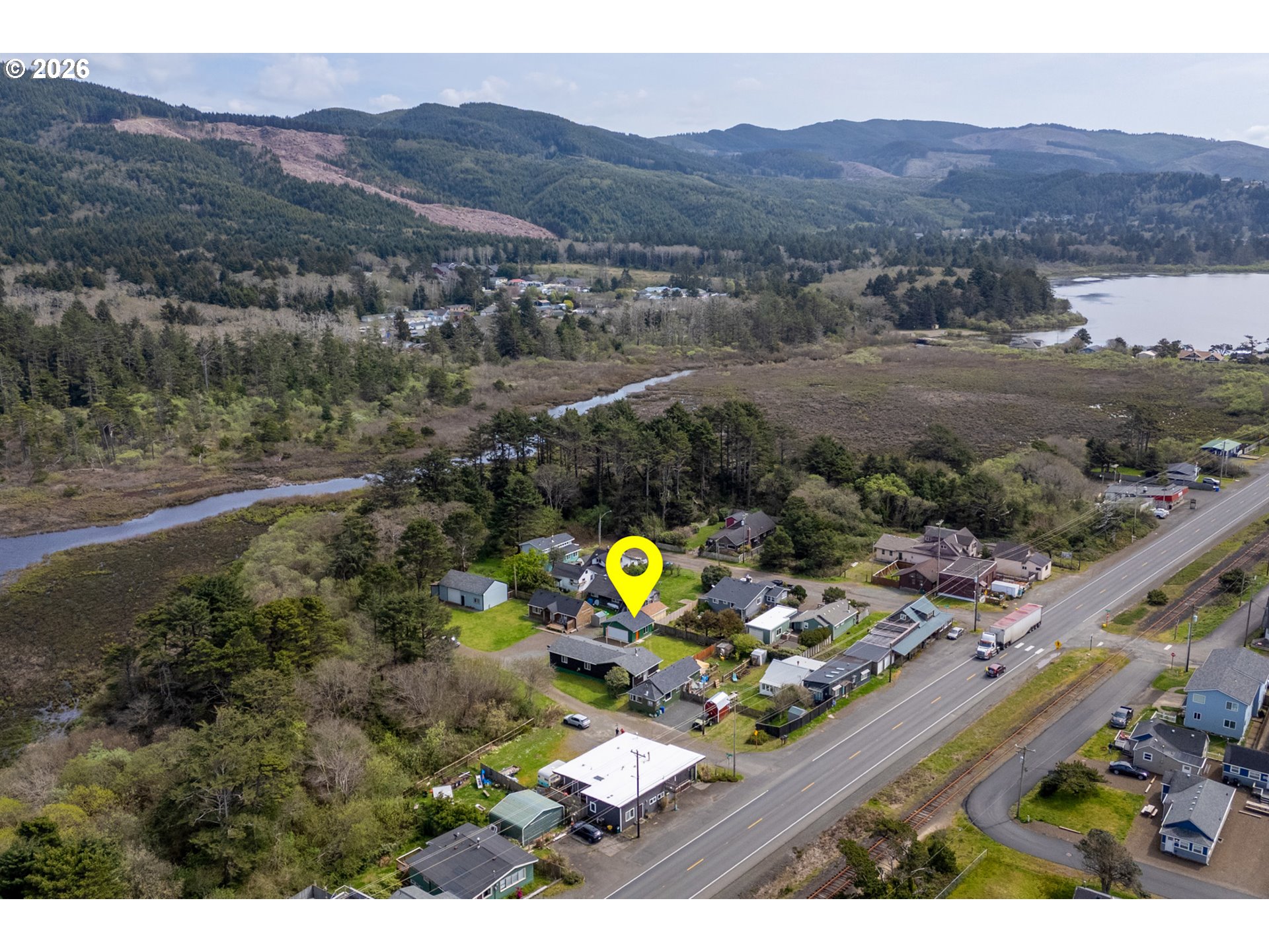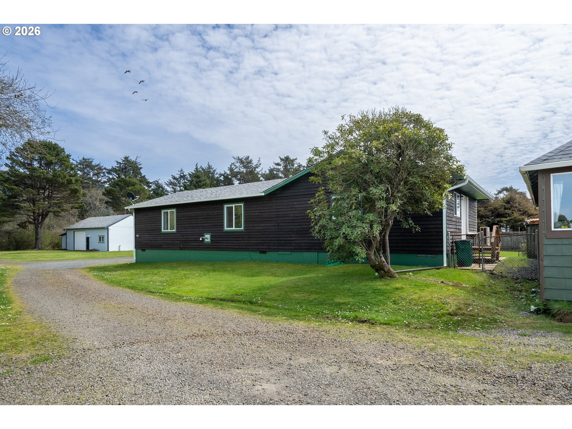 Charming coastal retreat just 1½ blocks from the beach, set on a beautifully fenced lot. This well-maintained home features two generously sized bedrooms with ample closet space and two full bathrooms. The spacious living room offers a warm and inviting atmosphere with a cozy pellet stove, perfect for year-round comfort. The open kitchen and dining area is both functional and welcoming, complete with a woodstove, soft-close cabinetry, and convenient pull-out storage. Thoughtful upgrades enhance both efficiency and livability, including a new 200-amp electrical panel and garbage disposal (2022), and a ductless mini-split system (2023) providing efficient heating and cooling throughout the home. A standout feature is the newly finished, oversized two-car garage (2025), fully insulated (R21/R30) and equipped with abundant electrical outlets, dual-directional lighting, and an automatic garage door opener—ideal for storage, hobbies, or workspace needs. Additional recent improvements include new front deck flooring (2025) and freshly stained and painted cedar shake siding (2025), adding to the home's curb appeal and longevity. This move-in-ready property offers comfort, functionality, and proximity to the coast—an ideal full-time residence or weekend getaway!