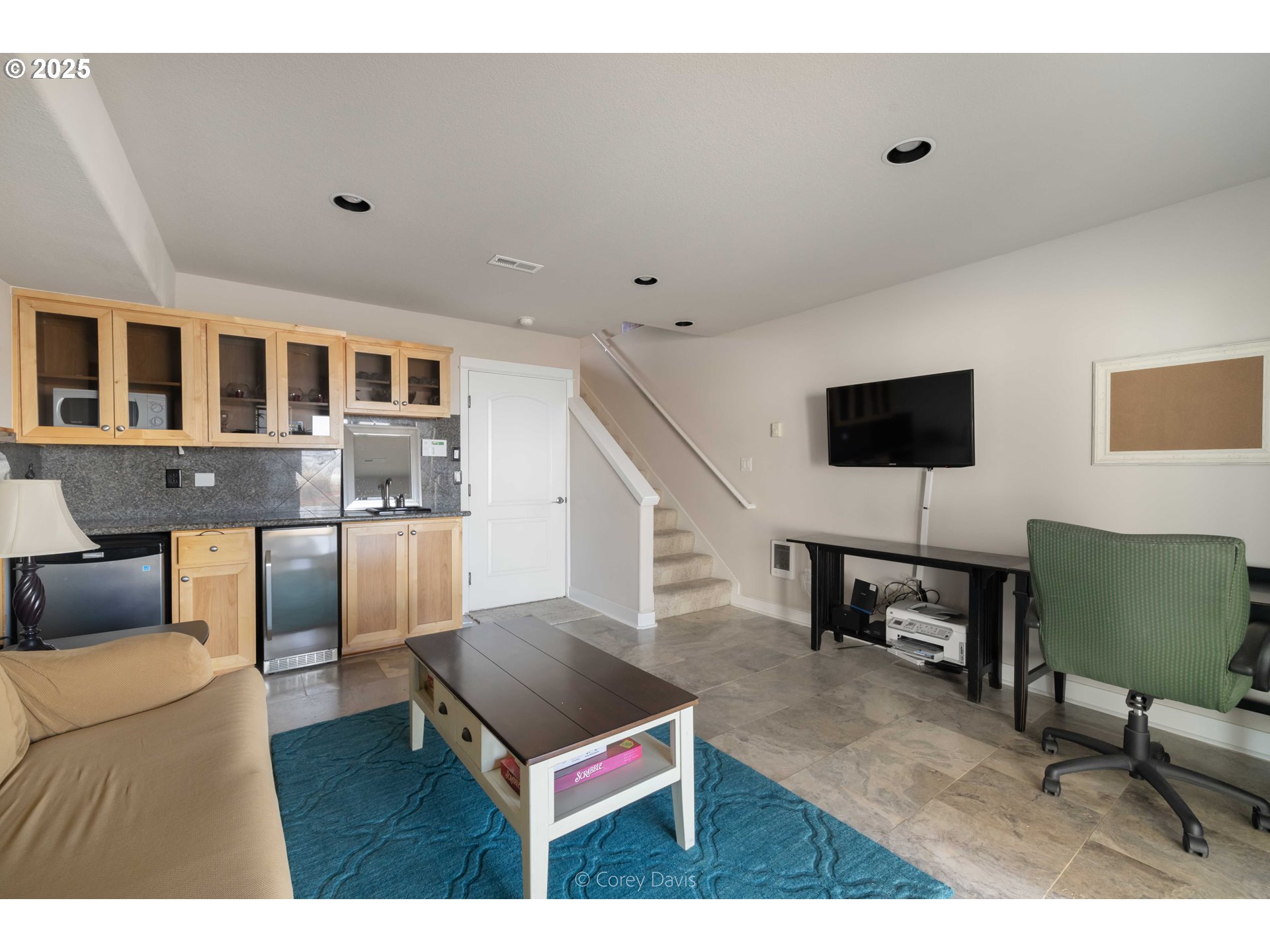 Near oceanfront condo in the heart of Rockaway Beach at a great new price! Upstairs, you will enjoy ocean and Twin Rocks views from the fireside living room & deck. The upper open floor plan includes a spacious kitchen/dining combo with views of the coastal mountains from the breakfast nook. On the second floor, a true primary en suite offers a private balcony and more Twin Rocks views while a second bedroom, laundry and a full bath are just down the hall. Downstairs flex space abounds with a large den complete with wet bar and an extra large garage for storing your beach gear. Close to all that downtown has to offer and miles of sandy beach. Unit is not a short term rental.
