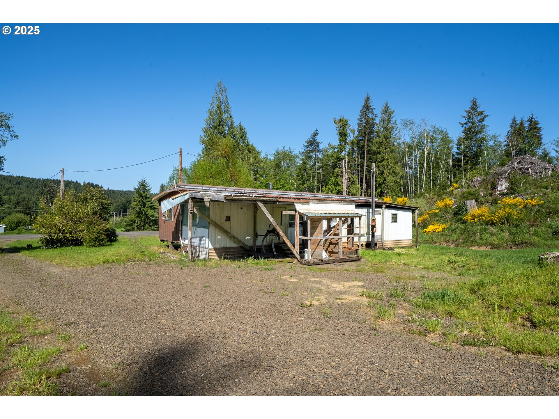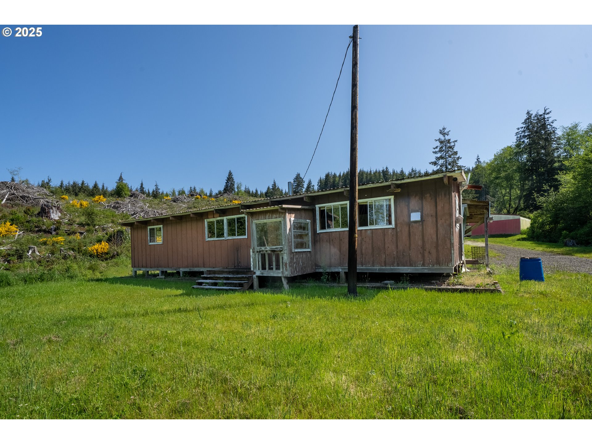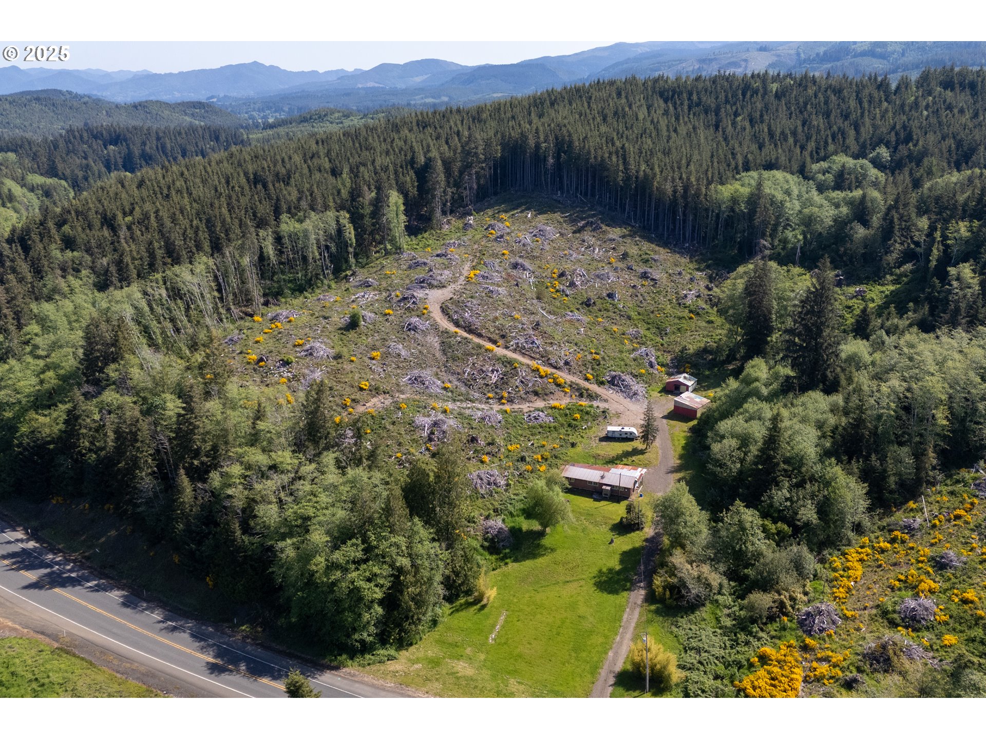 Nearly 40 acres of natural beauty and potential await on this rare property with a designated homesite ready for your dream home. The existing home needs replacement, offering a fresh start to build exactly what you envision. Enjoy sweeping mountain views, especially from the top of the hill where a road has already been put in for easy access. Two spacious shop buildings provide excellent space for storage, hobbies, or a workshop. Room to park your sand toys, RV and boat makes it perfect for outdoor enthusiasts.The property features two natural springs, a 325-gallon underground water tank installed in 2023 and comes with a water rights certificate—ideal for sustainable living. Backing over 21,000 acres of Stimson timberland, the location offers unmatched privacy and a true connection to nature. The land has been recently logged, making the topography visible and giving you the freedom to explore alternative homesite locations. With 10,000 trees planted just 2.5 years ago, the landscape is already transforming. Wildlife is abundant—expect to see deer, elk, and a variety of birds in this serene setting. A truly unique opportunity to create your dream retreat in the heart of Oregon’s great outdoors.
