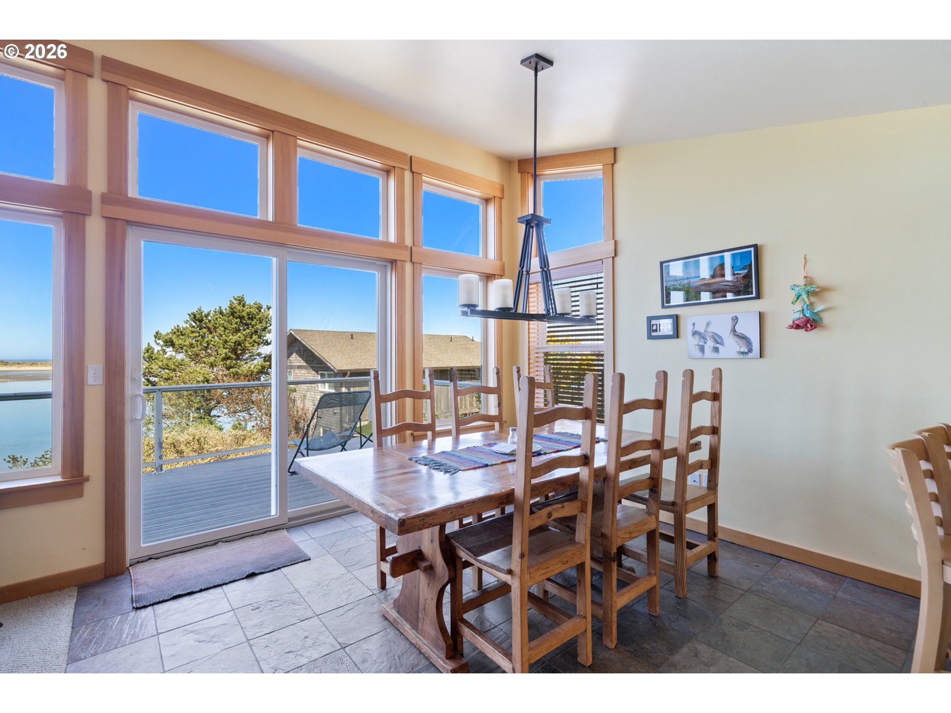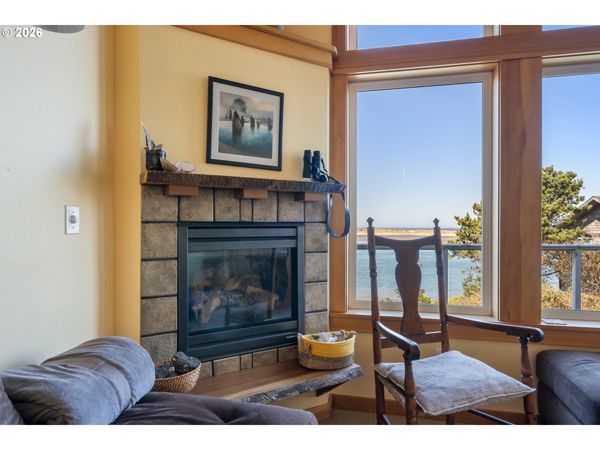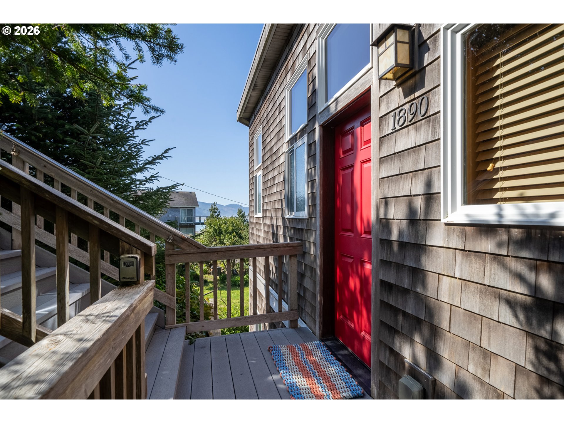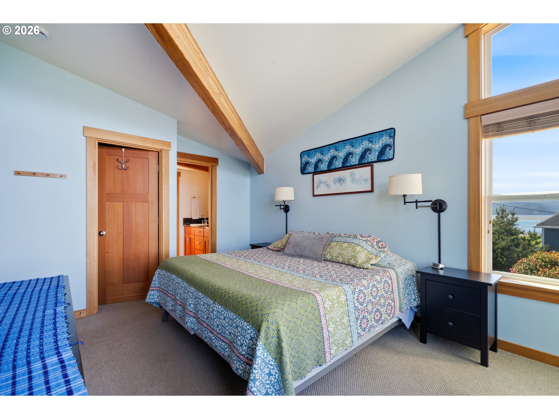 Netarts bayfront home on coveted Pearl Street, featuring an enchanting level front yard with private, gated low-bank beach access. Built-in 2009 with cedar shingle siding and ample off-street parking, the home offers a light-filled, open floor plan with exposed beam vaulted ceilings and a wall of floor-to-ceiling windows showcasing views of the bay and ocean. Step out of the great room onto a large composite deck with a glass railing, perfectly positioned to take in the changing tides, wildlife and tranquility of the bay. Back inside you'll find radiant heat tile flooring, granite counters, a breakfast bar, stainless appliances and propane fireplace. The ocean and bay view primary suite located on the main level features a walk-in tile shower, walk-in closet, and dual vanity. The lower level of the home includes three additional bedrooms, a full bathroom and spacious laundry room with extra storage. Outdoor amenities continue with a concrete patio and outdoor shower, a convenient boathouse/storage shed, and a meandering path through a flower garden that leads to an elevated deck overlooking the bay with stunning views of the Three Arch Rocks.