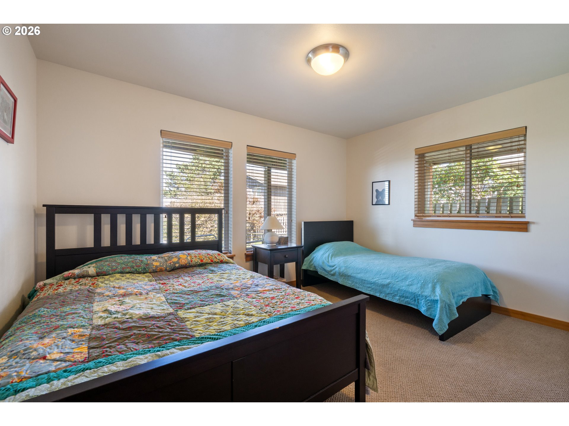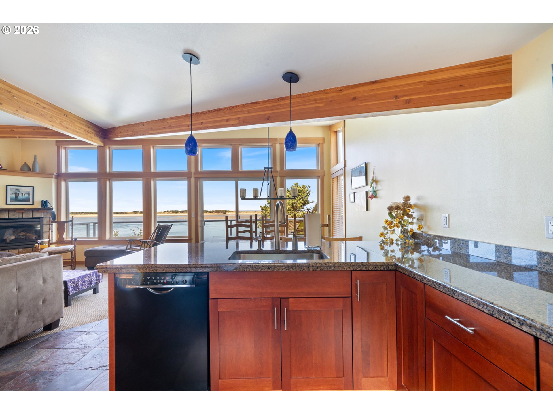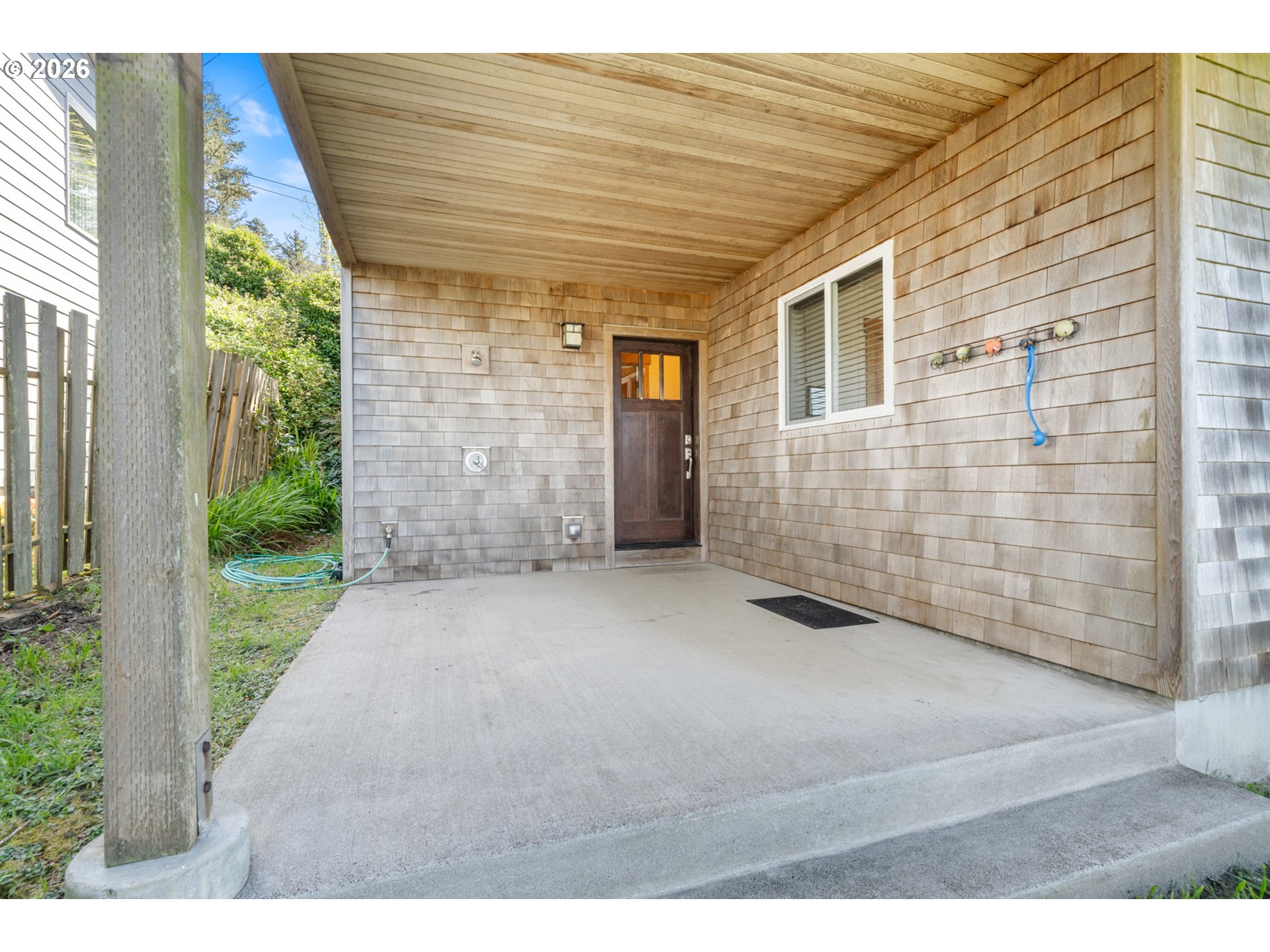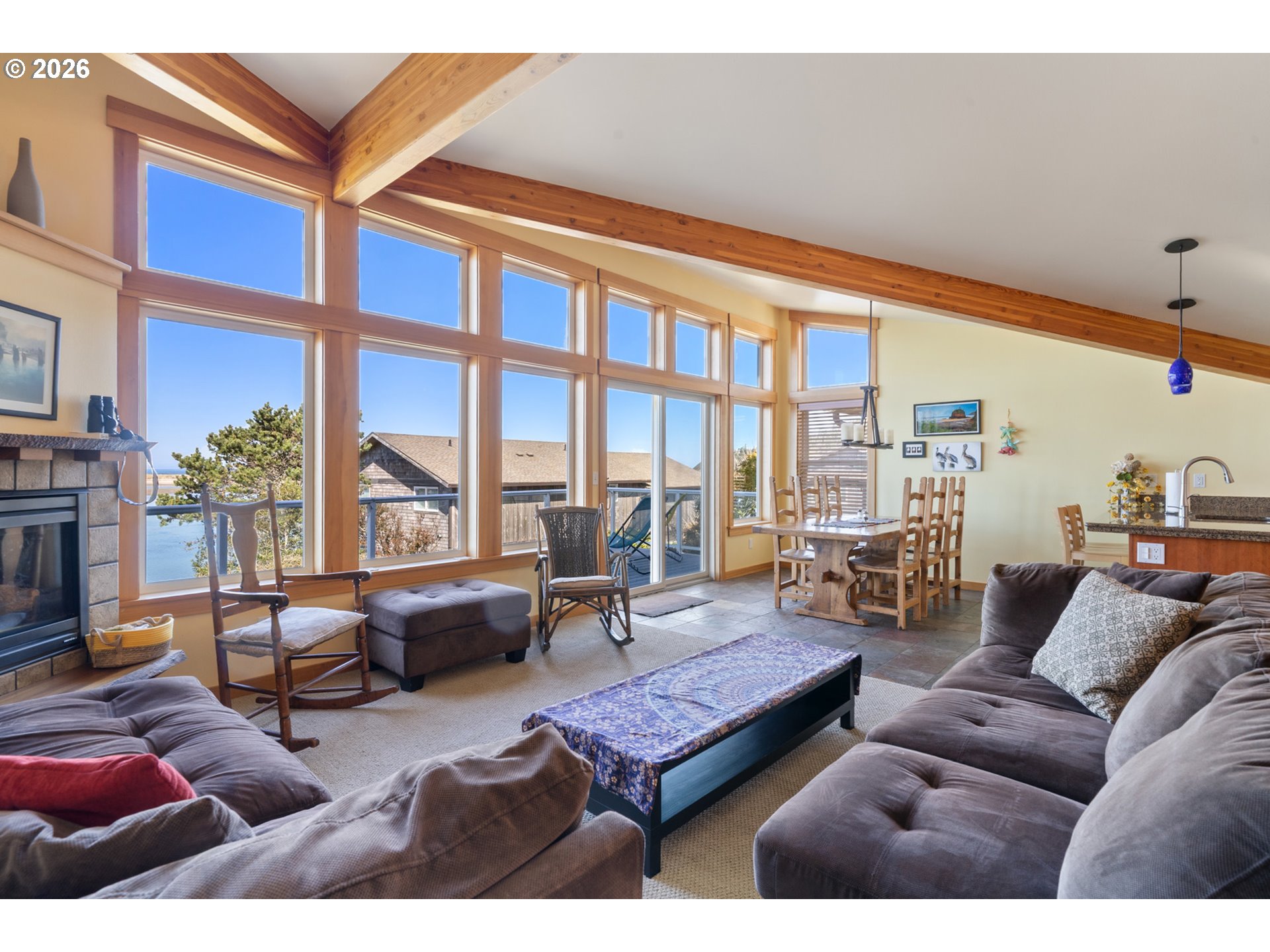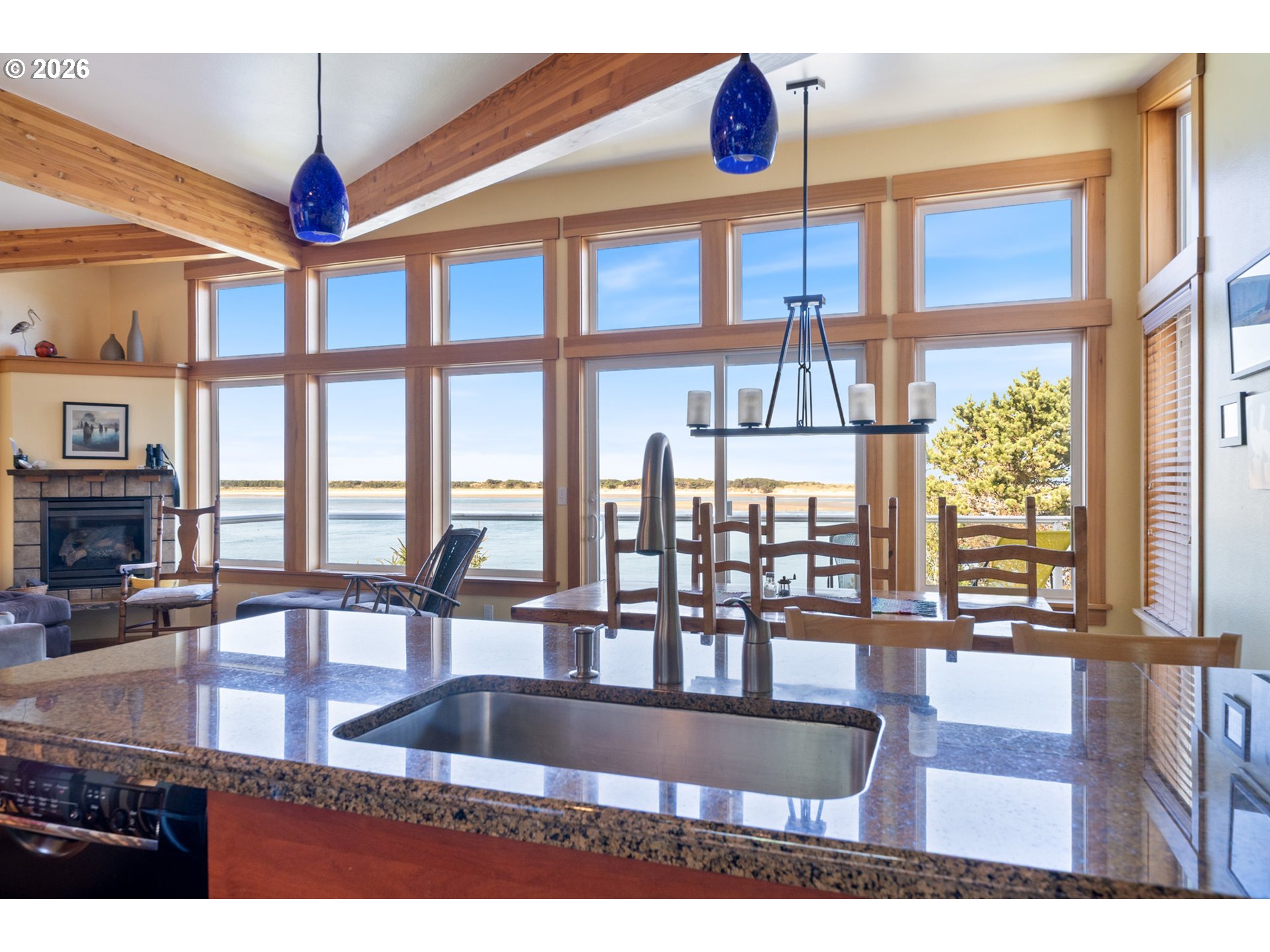 Netarts bayfront home on coveted Pearl Street, featuring an enchanting level front yard with private, gated low-bank beach access. Built-in 2009 with cedar shingle siding and ample off-street parking, the home offers a light-filled, open floor plan with exposed beam vaulted ceilings and a wall of floor-to-ceiling windows showcasing views of the bay and ocean. Step out of the great room onto a large composite deck with a glass railing, perfectly positioned to take in the changing tides, wildlife and tranquility of the bay. Back inside you'll find radiant heat tile flooring, granite counters, a breakfast bar, stainless appliances and propane fireplace. The ocean and bay view primary suite located on the main level features a walk-in tile shower, walk-in closet, and dual vanity. The lower level of the home includes three additional bedrooms, a full bathroom and spacious laundry room with extra storage. Outdoor amenities continue with a concrete patio and outdoor shower, a convenient boathouse/storage shed, and a meandering path through a flower garden that leads to an elevated deck overlooking the bay with stunning views of the Three Arch Rocks.
