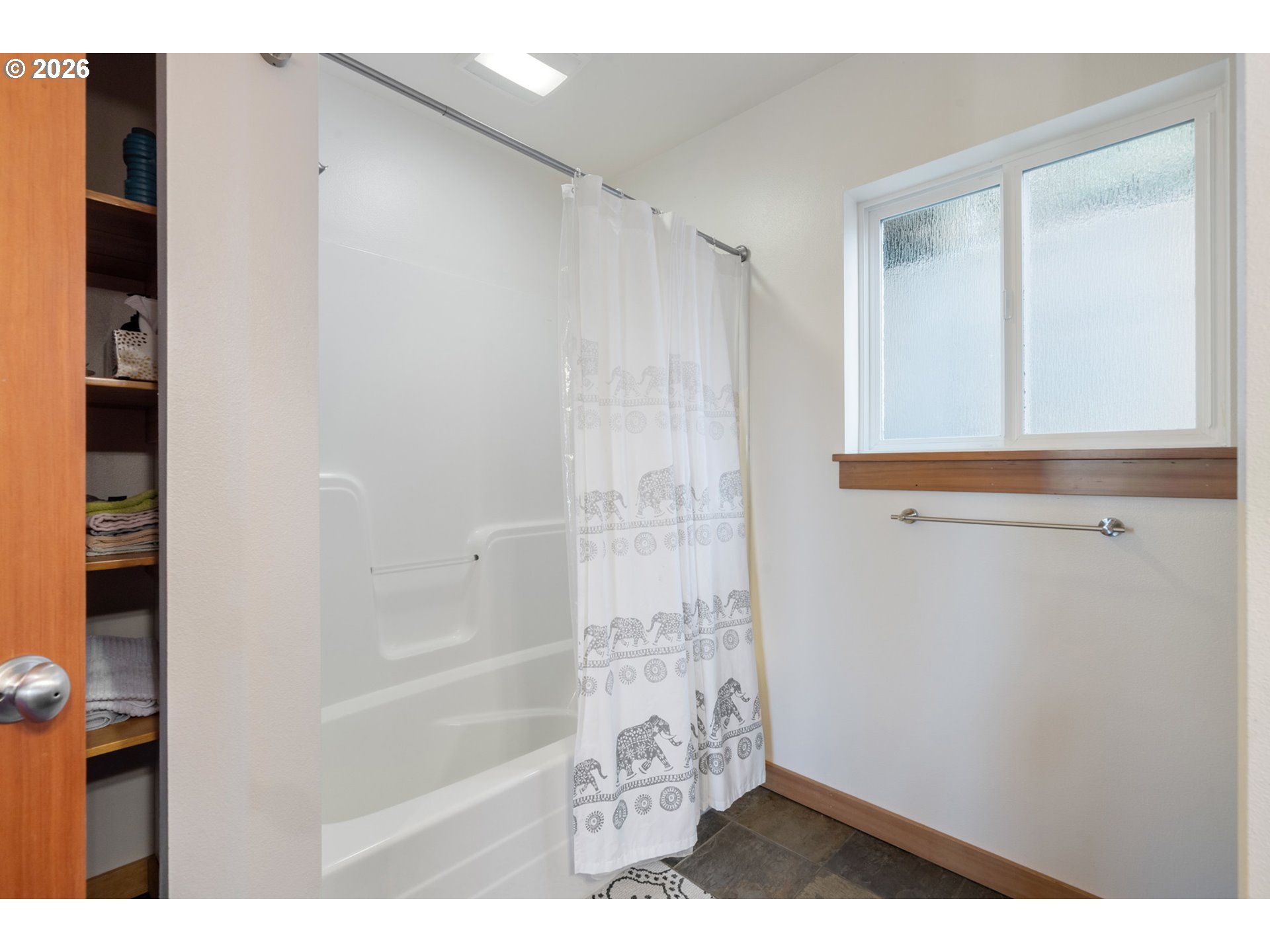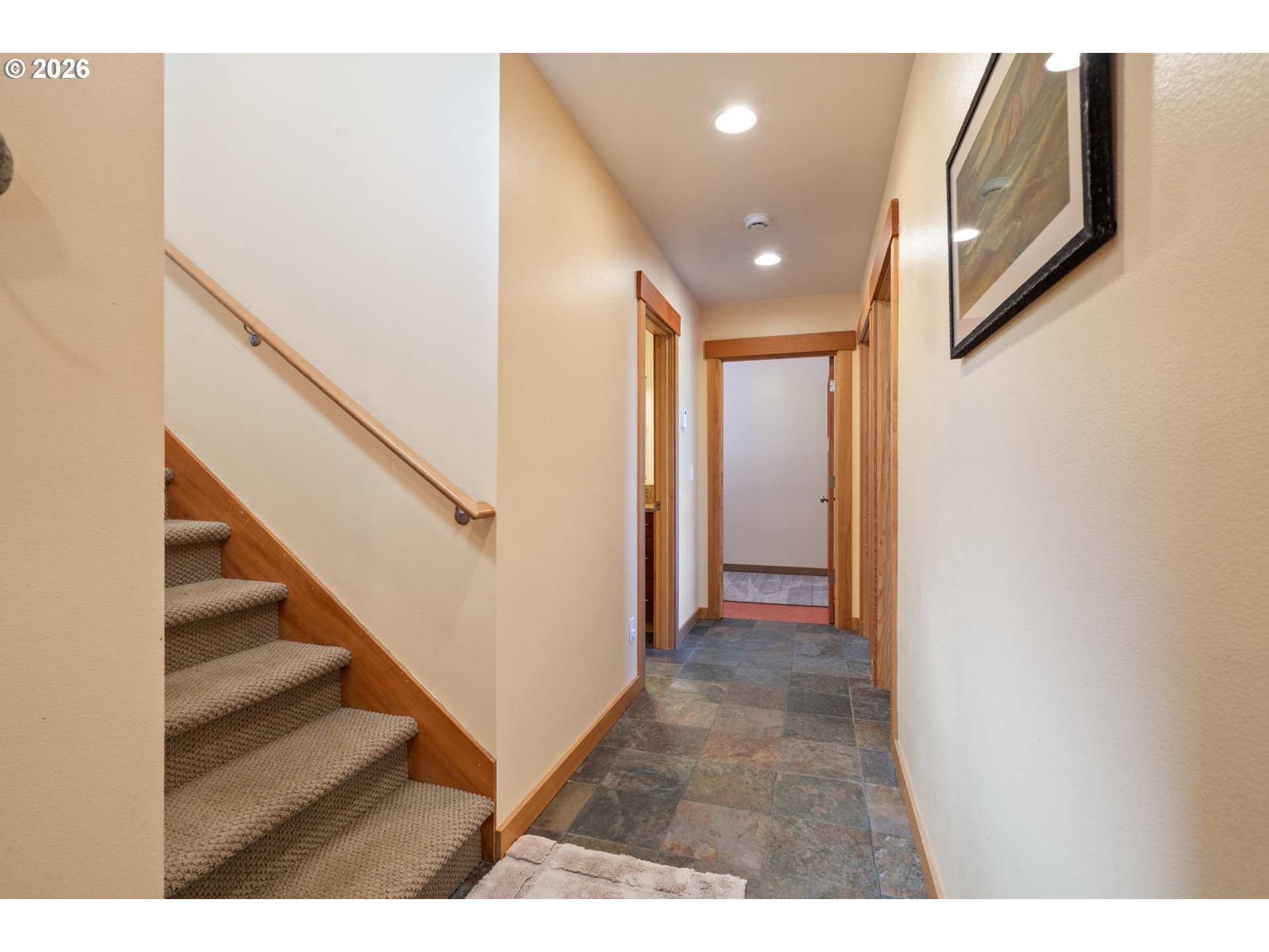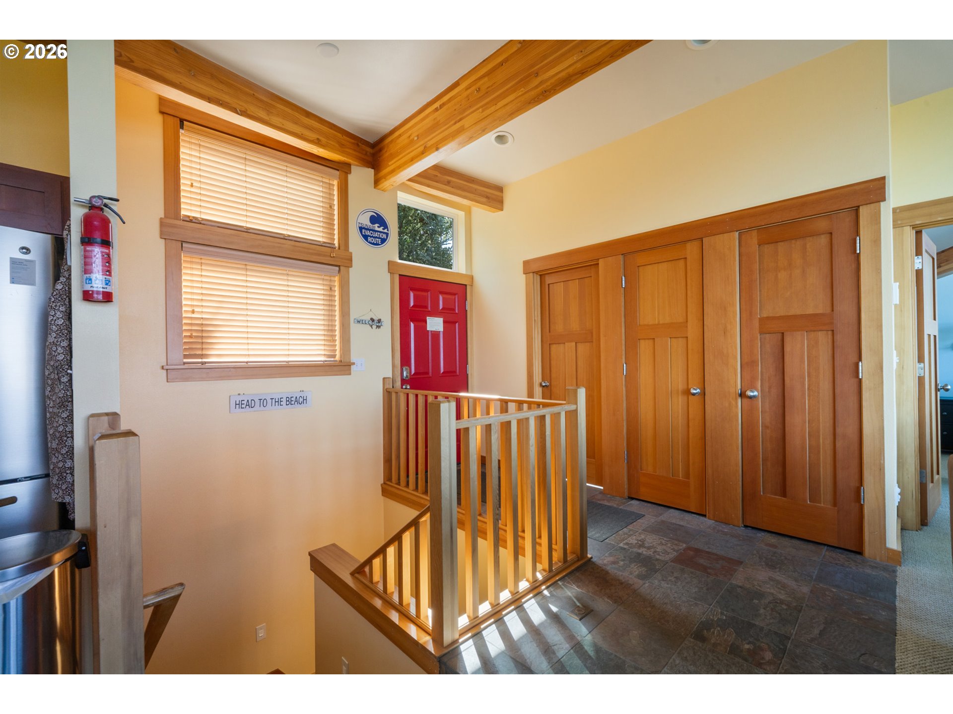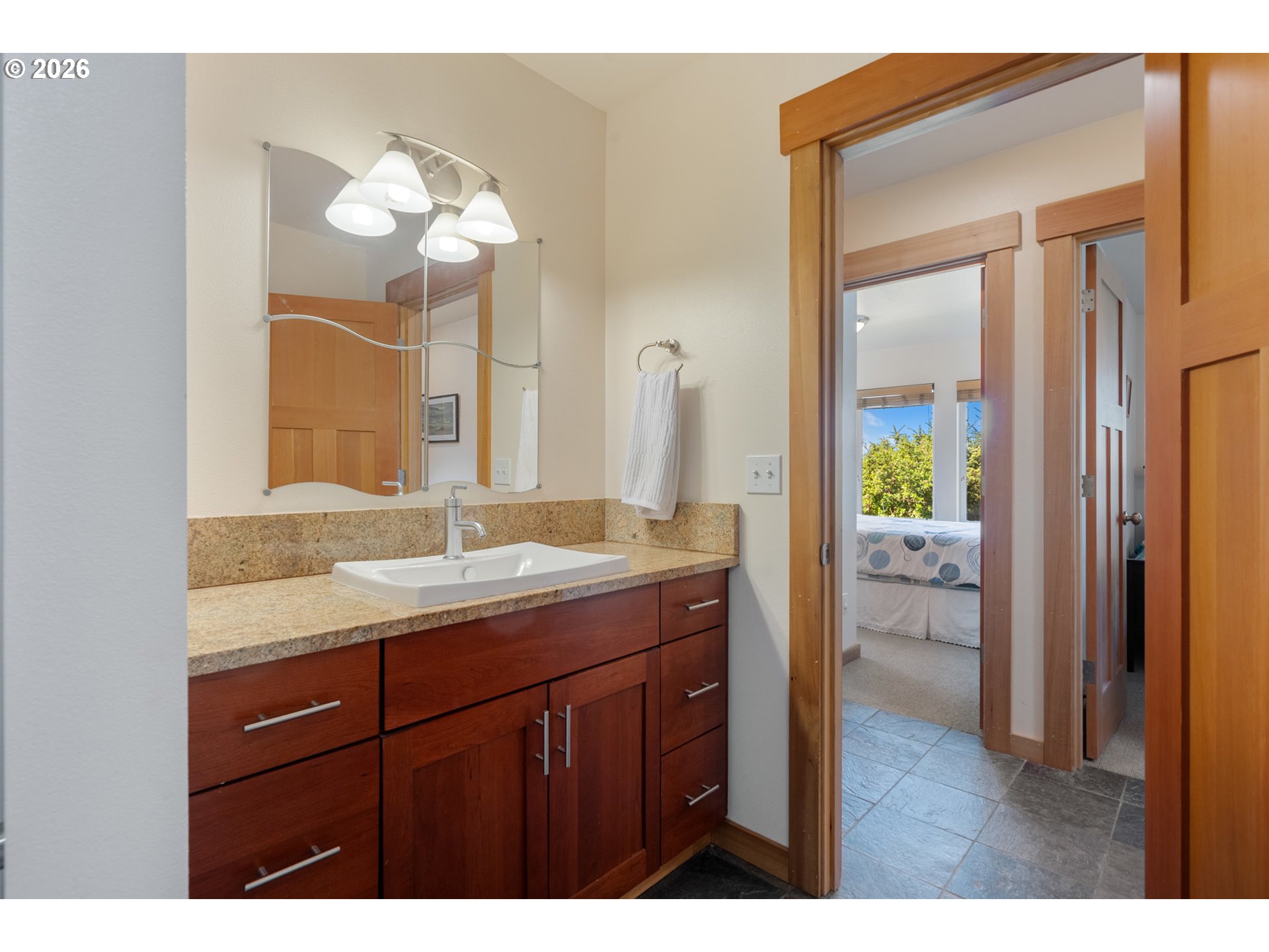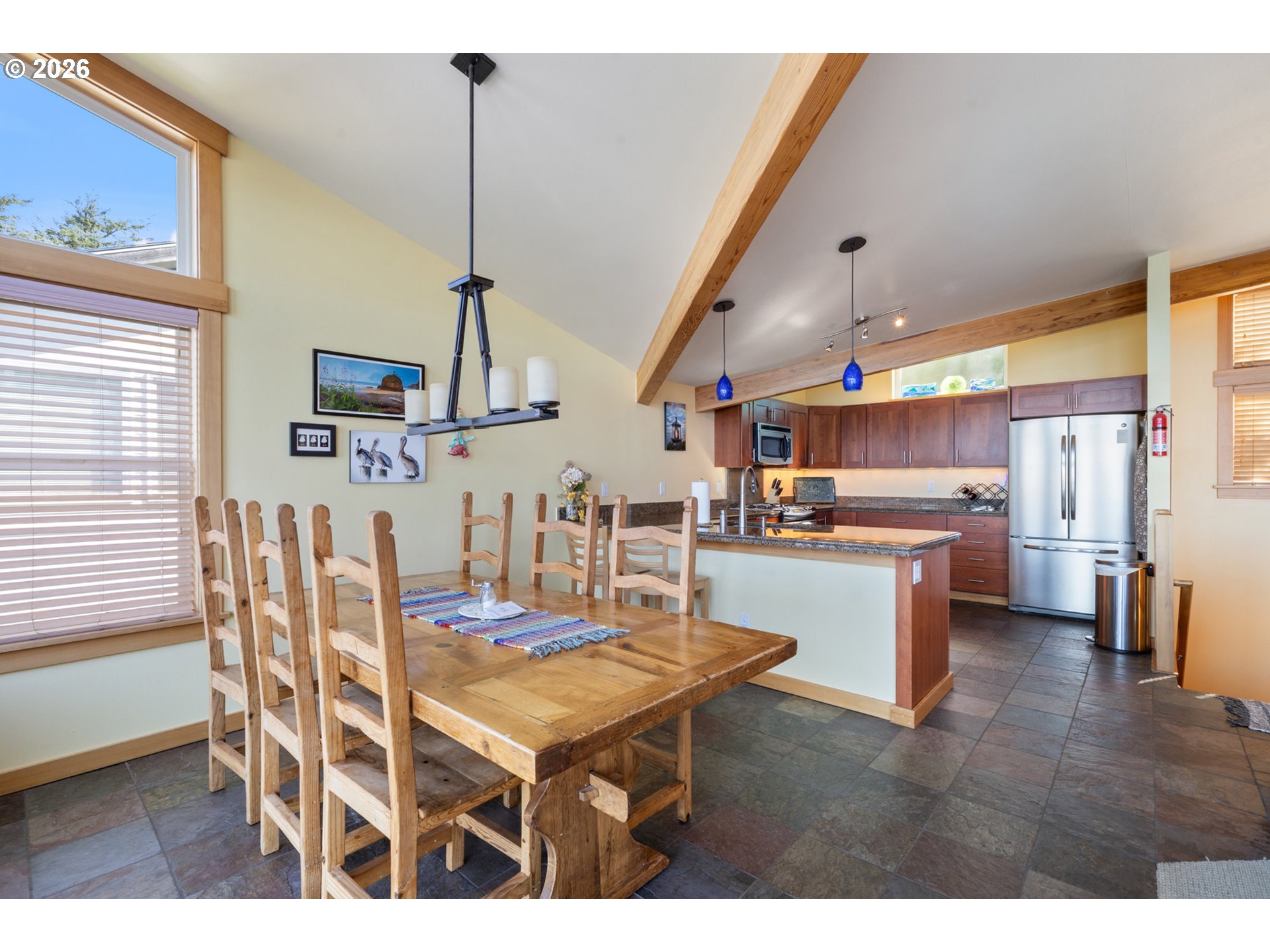 Netarts bayfront home on coveted Pearl Street, featuring an enchanting level front yard with private, gated low-bank beach access. Built-in 2009 with cedar shingle siding and ample off-street parking, the home offers a light-filled, open floor plan with exposed beam vaulted ceilings and a wall of floor-to-ceiling windows showcasing views of the bay and ocean. Step out of the great room onto a large composite deck with a glass railing, perfectly positioned to take in the changing tides, wildlife and tranquility of the bay. Back inside you'll find radiant heat tile flooring, granite counters, a breakfast bar, stainless appliances and propane fireplace. The ocean and bay view primary suite located on the main level features a walk-in tile shower, walk-in closet, and dual vanity. The lower level of the home includes three additional bedrooms, a full bathroom and spacious laundry room with extra storage. Outdoor amenities continue with a concrete patio and outdoor shower, a convenient boathouse/storage shed, and a meandering path through a flower garden that leads to an elevated deck overlooking the bay with stunning views of the Three Arch Rocks.