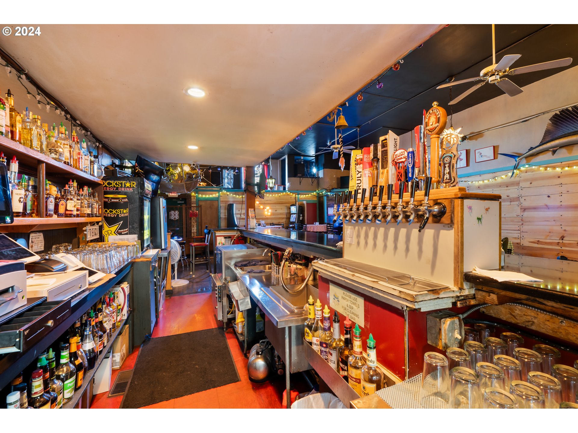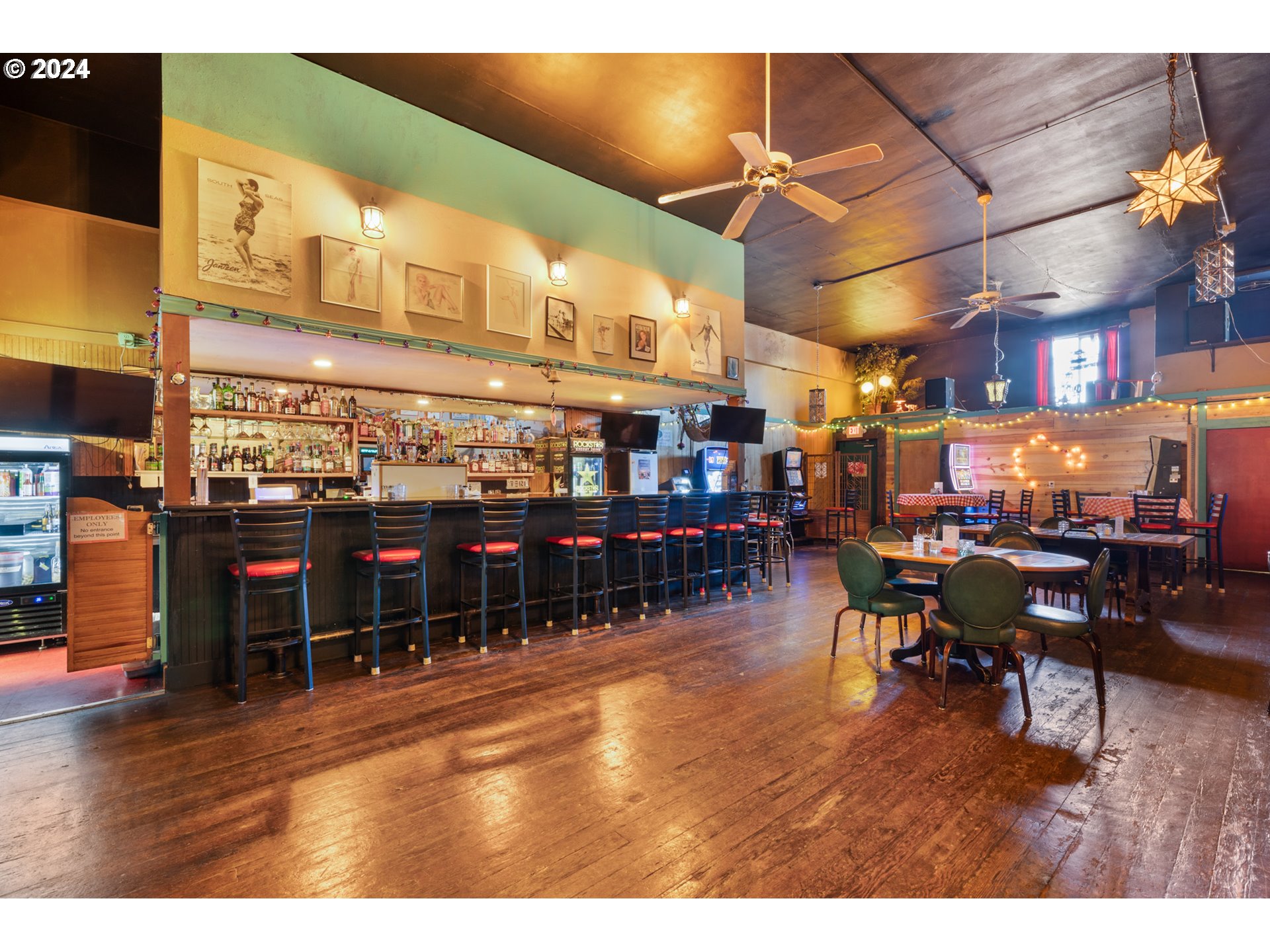 THRIVING RESTAURANT/LOUNGE with front & rear entry and city parking lot at your back door. Lottery, front dining room & back lounge known for live entertainment & dancing. Nearly always busy. 3360sf dry basement storage area & office. Street level is 3296sf. Perfect location on Coast Hwy 101 in center of town, with high visibility where all the visitors slow down & wait at the traffic light to turn onto Hwy 6 to Portland. Conscientious owners, well maintained, happy crew, consistent clientele. Easy access to back door for deliveries. Free city parking lot at back door. Owner will consider financing.