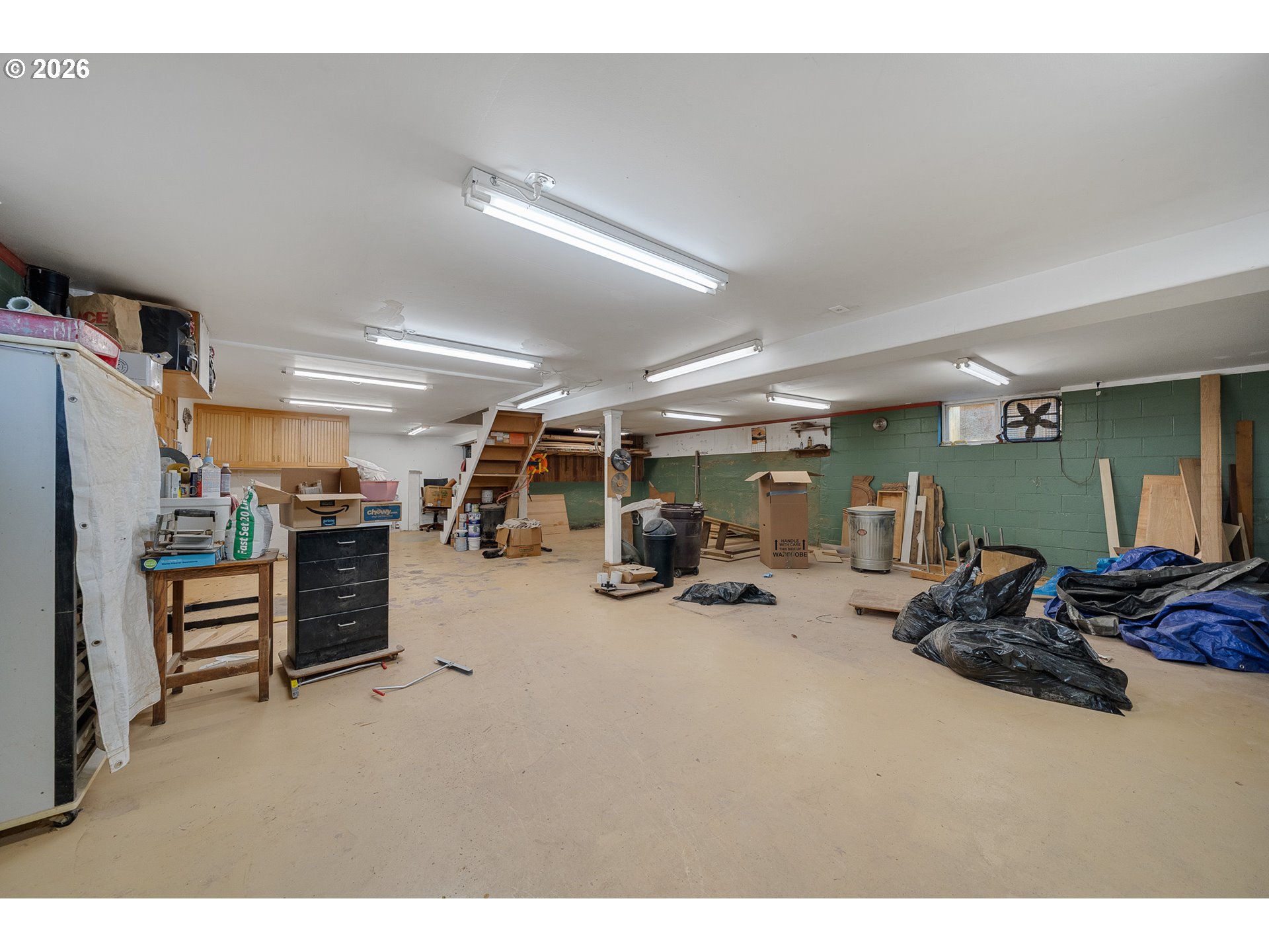 Vintage charmer with workshop space and multi-use zoning! This 4-bedroom (possibly 5), 2-bath home showcases classic details, thoughtful updates, and exciting future potential. From the inviting front porch to the high ceilings, this home is full of historic character. Step inside to find a spacious family room and formal dining room, perfect for gatherings, and complemented by a wood stove and built-in bookshelves. The primary bedroom with ensuite bathroom, conveniently located just off the kitchen, allows for comfortable main-level living. Custom cabinetry in the kitchen adds a touch of elegance while providing the ideal space for cooking and entertaining. Upstairs, you’ll find three additional bedrooms and a full bathroom to accommodate family or guests. The attached, oversized 2-car garage adds a convenience rarely found in homes of this era and provides ample space for storage or vehicles, while the 950 sq ft basement workshop caters to your hobbies and projects. The back patio is ready for summer barbecues or a soothing soak in the hot tub. Located close to downtown amenities, this distinctive property offers timeless charm, flexibility, and the opportunity to make it your own!