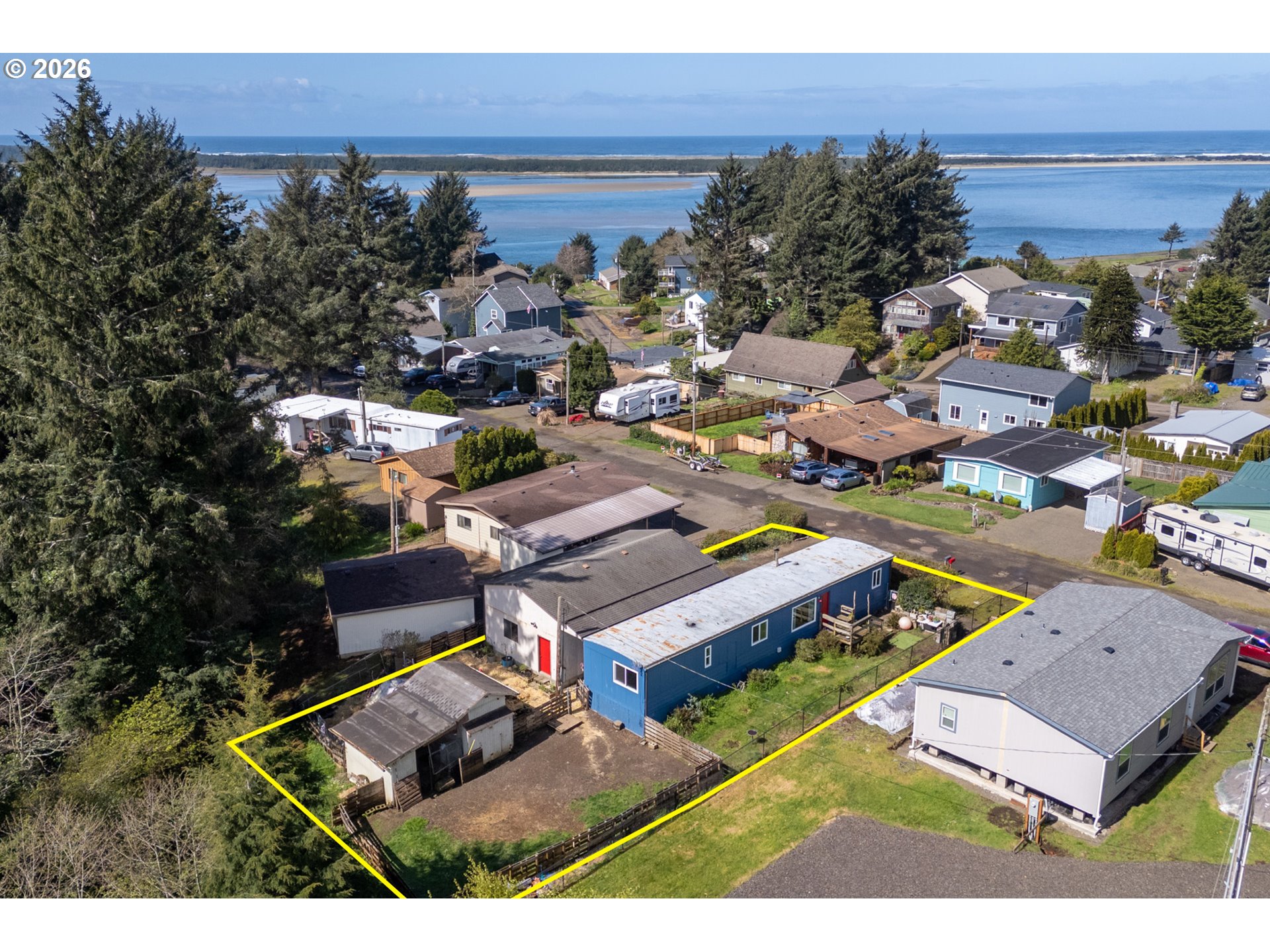 Rare Opportunity to own a turnkey, remodeled home in the heart of Netarts with room to breathe! This "Mini Homestead by the Bay" is perfectly equipped for those who love to spend their time creatively: a massive shop/garage for your latest projects and a private artist's studio. The backyard is a lush oasis with fruit trees, vibrant perennials, and a secure fenced yard for pets. There's an existing chicken coop ready for your fresh-egg morning routine! Inside, the tidy updated manufactured home shines with brand-new appliances, energy-efficient windows, and a luxurious new Kohler spa shower. The open layout offers bay/ocean views and is anchored by a wood-burning fireplace, perfect for relaxing after a day crabbing or clamming nearby. Just minutes from the beach, this property offers views, utility, and comfort in one charming package.