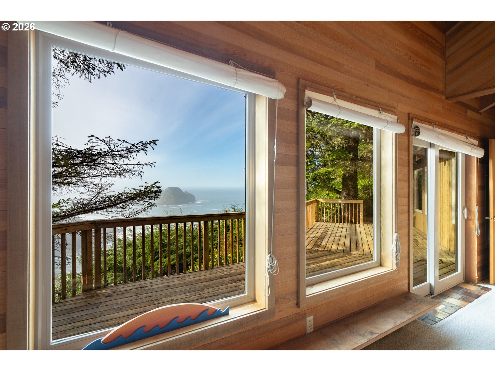 (503) 893-8874RARE GEM overlooking secluded Lost Boy Beach with private access easement to this cozy cove for only a small group of adjacent homes. Massive natural cavern and cove beach are only accessible to the easement owners except during minus tides. Own the North & South slopes of this ridge with SW view of Three Arch Rocks plus NW view of Cape Meares & Pyramid Rock. 2.5 acres (3 tax lots) with architectural design maximizing the view and natural wood features including tongue in groove beamed & vaulted ceilings. 440 sq ft partly finished ground floor space ideal for ADU.