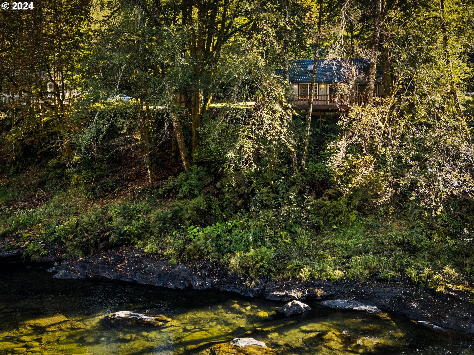 This storybook river cabin is nestled in the "The Narrows", a private gated community within the Tillamook State Forest and is perched just above the scenic and wild Wilson River—one of the Northwest's top destinations for steelhead, salmon, and cutthroat trout fishing. Enjoy inspiring panoramic views of the river and protected forest from the comfort of the home or our outside on the spacious deck.This classic getaway features two bedrooms, one bath, and a generous sleeping loft, providing ample space for family and friends. The loft, which includes laundry, adds approximately 232 square feet (non-conforming) to the official 768 square feet. Inside, the tongue-and-groove knotty-fir vaulted ceiling enhances the rustic charm of the living, dining, and kitchen areas, while the cozy orange enamel wood-burning fireplace keeps the place cozy and warm and make the hot chocolate taste even better. Two skylights flood the space with soft northern light throughout the day. Below the cabin, a stone slab riverbank creates a natural patio perfect for relaxing in your Adirondack chairs, fishing, or playing by the river. A right sized storage shed has ample of room for your tools, rods and firewood but if you have bigger toys, there’s plenty of room to replace it with a garage studio as others have. The private community is home to both full-time and part-time residents, and a security gate ensures privacy and peace of mind. Just 55 miles from Portland, you can escape to the river within an hour. Nearby activities include hiking, foraging, fishing, crabbing, and exploring local spots like J Andy Oyster, Pelican Brew Pub, DeGarde Brewing, the Tillamook Cheese Factory, the Flight Museum, as well as all the attractions at the beach, Netarts Bay, and Oceanside. Don't wait long, salmon are in the river now!