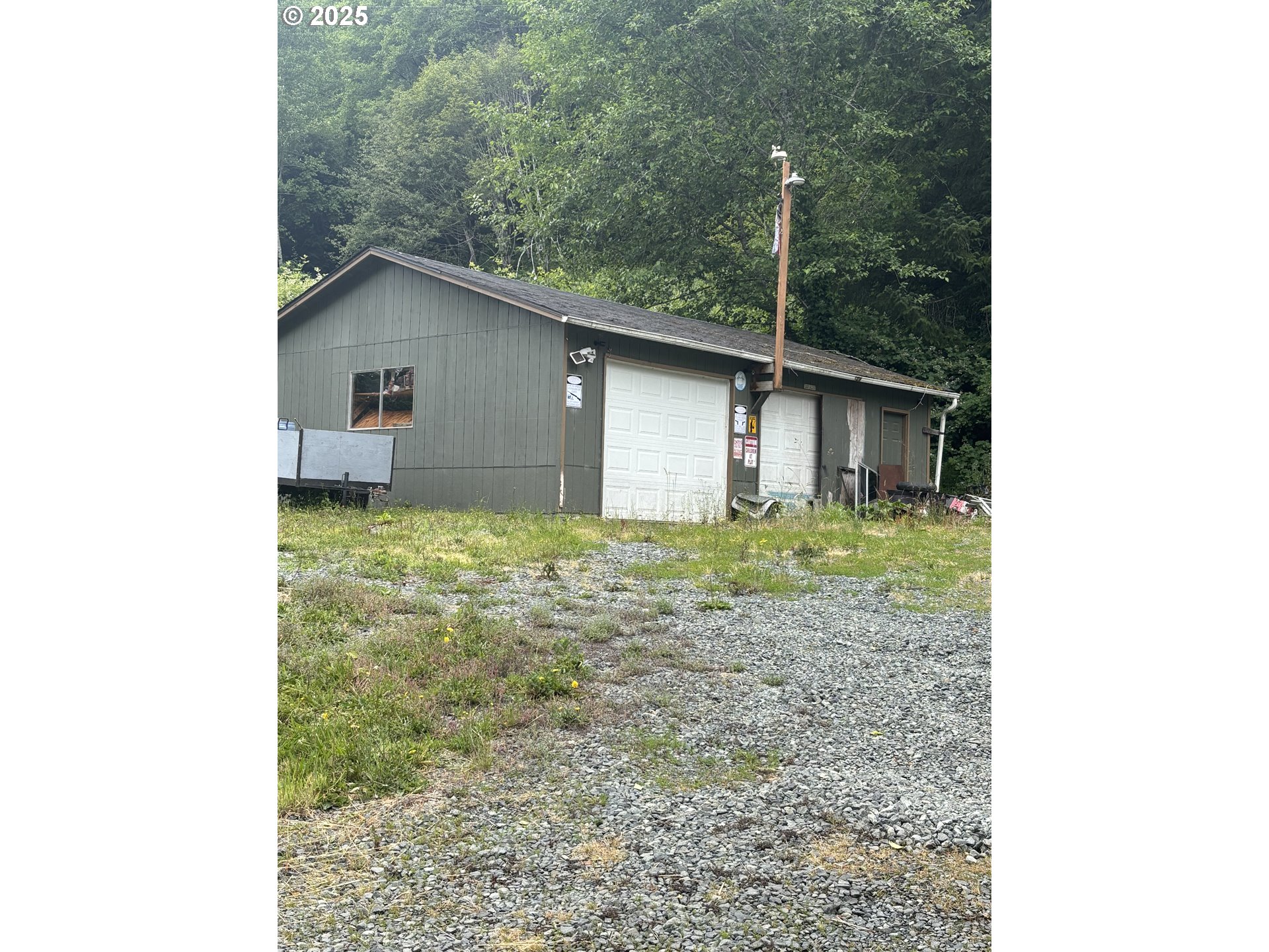 Welcome to your peaceful retreat nestled on over two acres of land. This charming single-wide manufactured home with a durable metal roof offers 2 bedrooms and 1 bathroom, providing a cozy and comfortable living space surrounded by nature. Located on a scenic hillside, the property is beautifully treed with land that levels out at the top, creating a perfect spot for enjoying the tranquil surroundings. A covered front deck invites you to relax and take in the serene views. Inside, the kitchen features updated stainless steel appliances, and a woodstove in the living area adds warmth and rustic charm, perfect for those cozy evenings at home. A detached garage/shop offers additional storage or workspace, making this property ideal for hobbies, outdoor equipment, or extra parking. The property is zoned for two homes, offering great income potential or the opportunity to live in the existing home while building your dream home. Whether you're looking for a peaceful full-time residence, an investment opportunity, or a weekend getaway, this hillside gem has so much to offer.