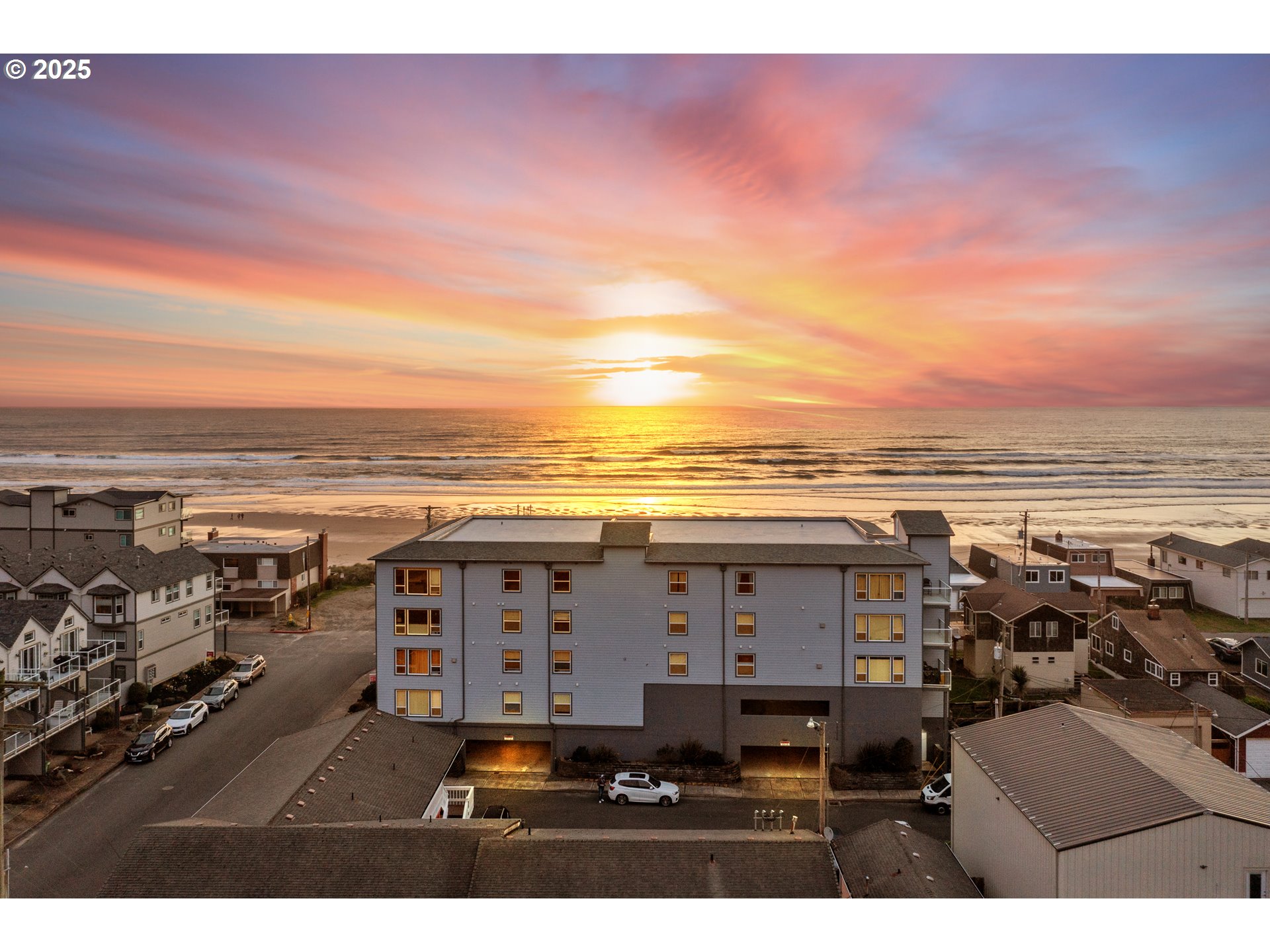 Your Oregon Coastal Oasis awaits! This stunning ocean view condo in Rockaway Beach is the perfect vacation home with the added bonus of rental income opportunity with a transferable short term rental license. Enjoy panoramic views of the Pacific Ocean from the kitchen, living room, and dining room. Watch the sunset from your covered balcony! The open concept kitchen has granite countertops, tons of storage, and an island to encourage gathering with loved ones. Perfectly appointed with beautiful furnishings, stainless steel appliances, new washer and dryer, and new refrigerator. The primary bedroom with ensuite is a quiet and cozy retreat after a day at the beach. The second bedroom is spacious with a bathroom right across the hallway. The unit includes two parking spaces in the tuck under garage and elevator access to the unit. Quick access to the beach right across the street and all of the charming restaurants and shops of Rockaway Beach!