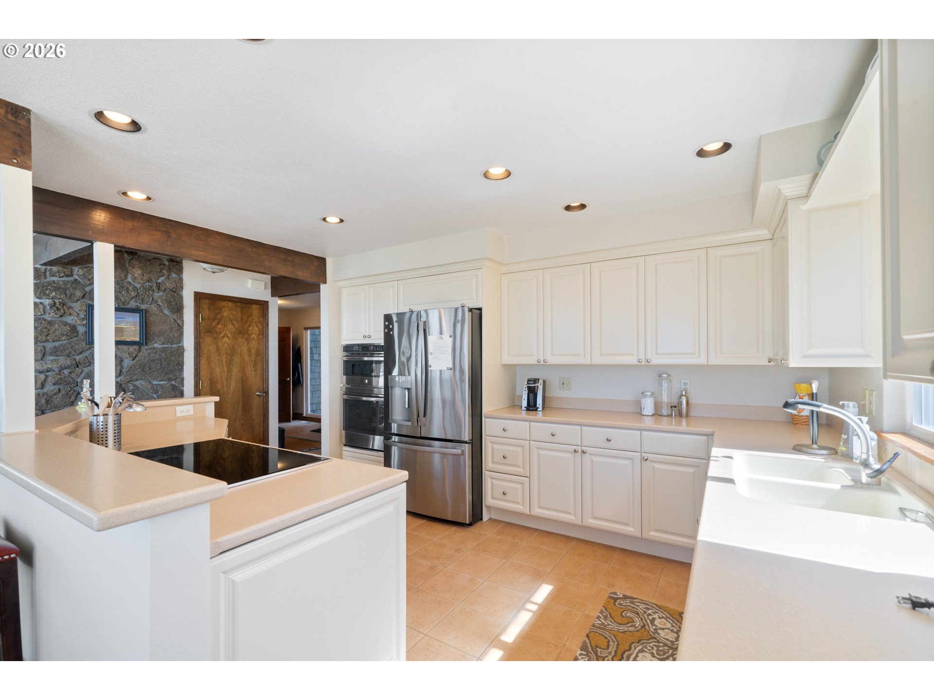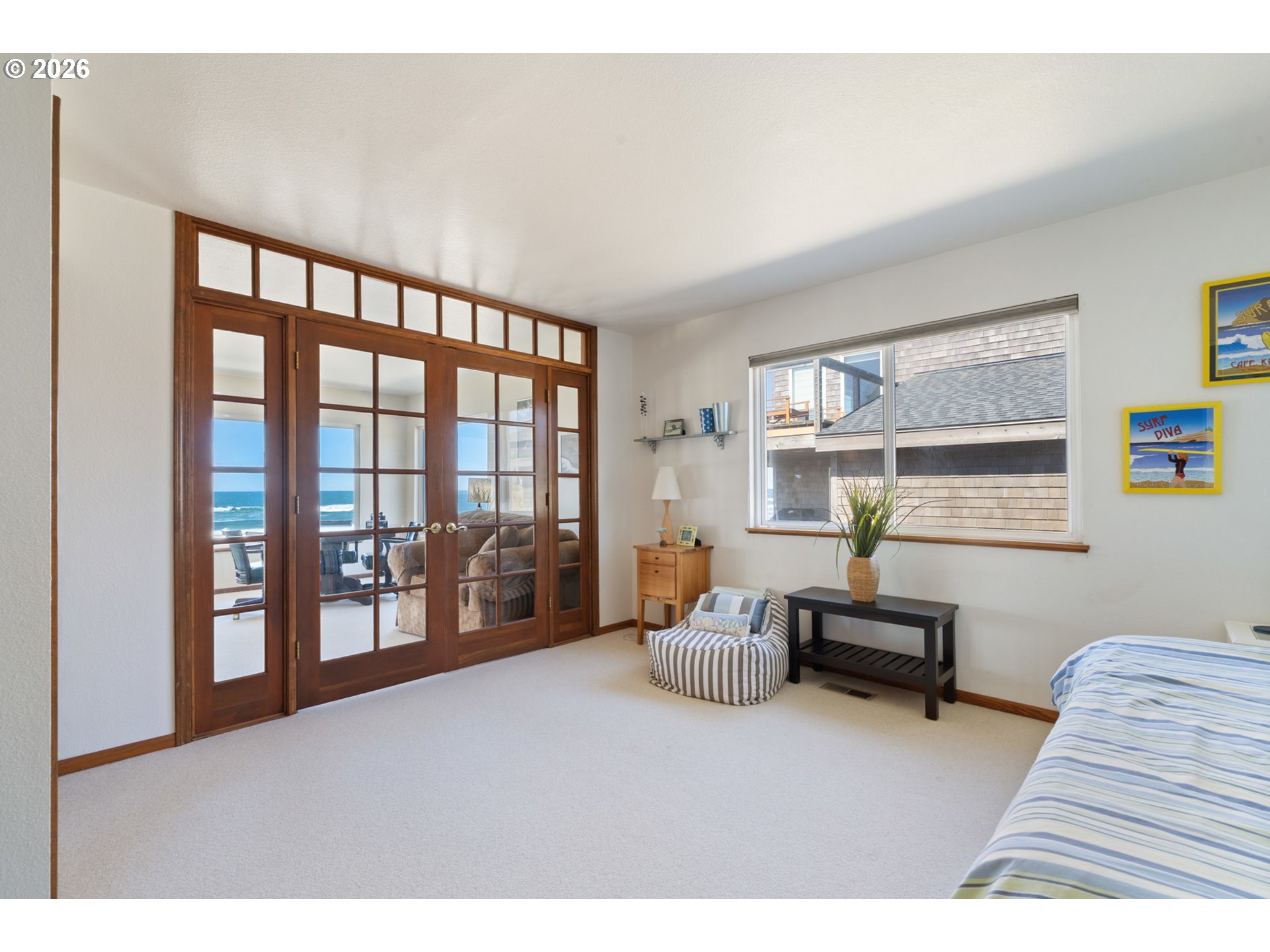 Oceanfront home located in the gated community of Kiwanda Shores in Pacific City, offering sweeping views of the Pacific Ocean and Haystack Rock. This architecturally unique home features tiled floors, vaulted wood ceilings, and a variety of spacious gathering areas. Step into the sunken living room, centered around a massive stone fireplace or head to the beach via the beachside patio. Along the west side of the home, a wall of windows fills the space with natural light and expansive ocean views.The kitchen and dining area blend seamlessly and take full advantage of the setting, featuring stainless steel appliances, a breakfast bar, and a dining area positioned for sunset views. A spacious loft provides additional living or viewing space, while a flexible bonus area offers potential for a fourth sleeping area or office. The covered front entry is protected from the weather on three sides and opens to a tiled foyer via a sheltered front deck, perfect for kicking off the sand. Upstairs, the primary suite features an ensuite bath and a private reading nook with an ocean view. Located on sought-after Ocean Drive, this fully furnished home is well suited as a full-time residence, second home, or short-term rental, offering unparalleled views and a true Oregon Coast experience.