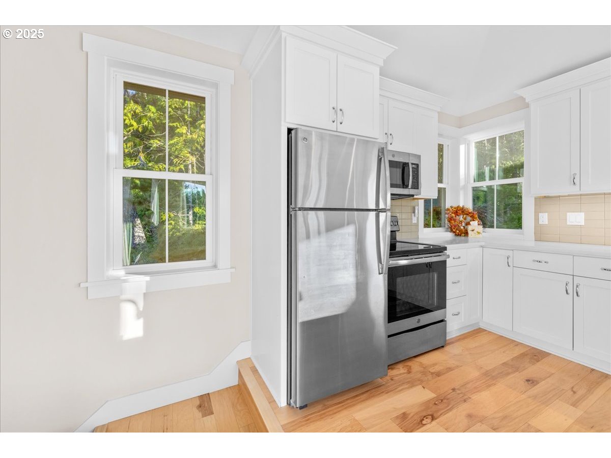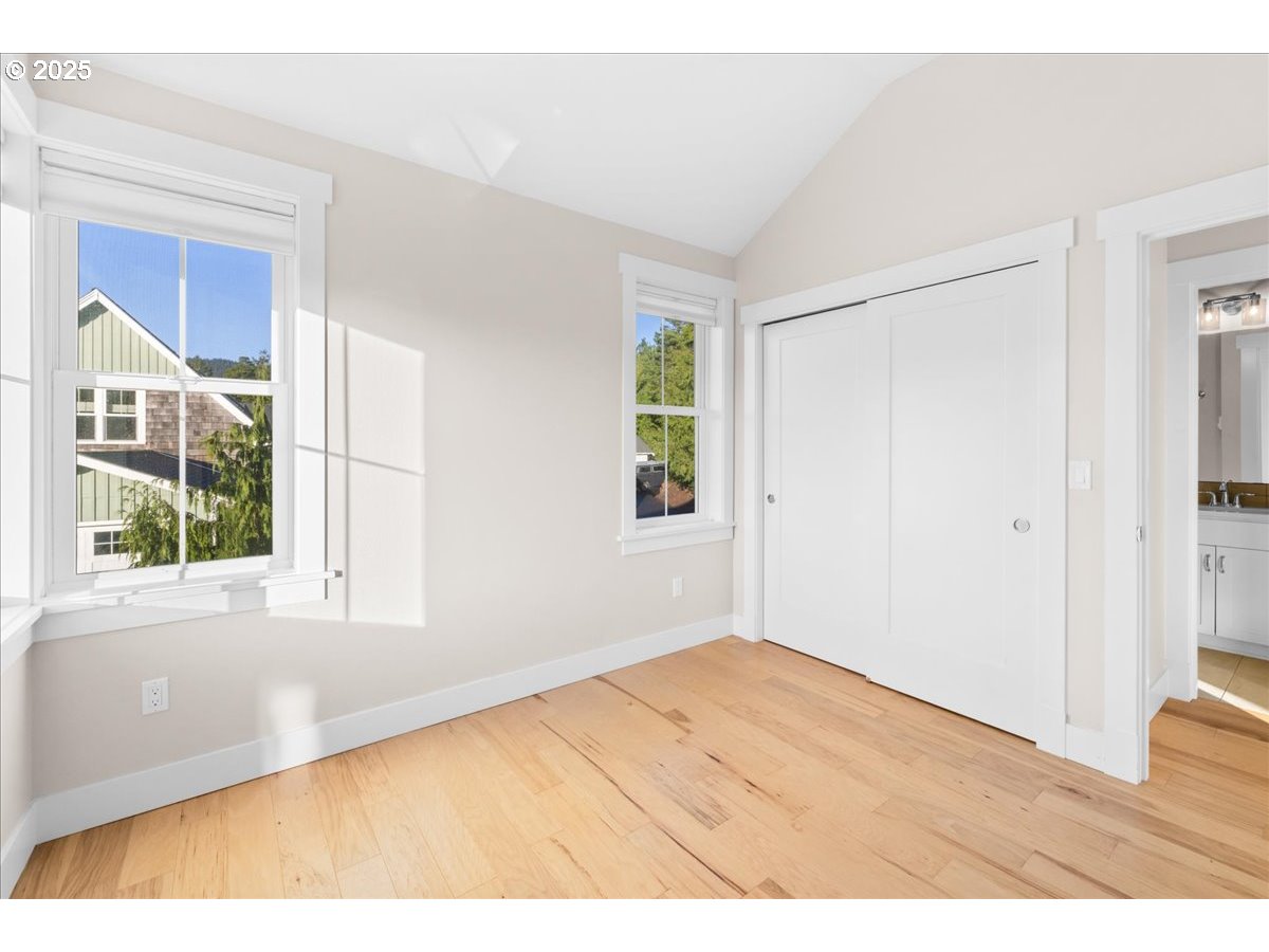 Property is in the small community of Classic Street Cottages w/minimum traffic secluded and tucked away in Manzanita backing up to the forest. These homes are for primary residence or secondary residence dwellers wanting community with others like minded homeowners. This two story home has several access mandoors & two patio settings, one with a deck for entertaining and a BBQ area. Downstairs has a 2nd bedroom, W&D and second full bathroom & single car garage. The upstairs has the Primary bedroom and suite w/open concept w/corner windows for a great view of the landscape and area. Home has AC w/mini split, several parking spots for guests, property cannot be used for Short Term Rentals unfortunately. Please contact the agent for showings.