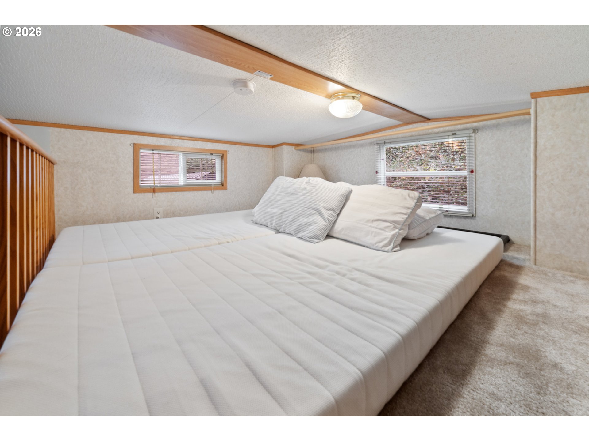 Charming RIVERFRONT Cottage on the Nehalem River with AMAZING VISTA VIEWS of water, wildlife and wilderness. Immaculate, and freshly updated with newly textured walls, new paint, stainless refrigerator. High ceilings on Main, lots of windows, and a loft with two king-bed sleeping areas makes this little gem live Large. Primary bedroom and full bath on main. Spacious deck partially enclosed for all-weather river viewing! Kitchen includes propane stove, built-in microwave, breakfast bar, and dining area. Bonus: this one has full-size washer/dryer and Utility Shed for all your tools, kayaks, and fishing/crabbing gear. Shed also includes small refer and freezer. House sold FULLY FURNISHED so you can immediately turn on the electric fireplace, get cozy and watch the river from the 2 gorgeous leather recliners… and when it gets dark… watch the Big Screen TV! Make this your getaway cottage, or live full-time in this little slice of heaven. Space rent includes water, sewer, garbage, cable, maintenance of common grounds and seasonal floating dock. About 2 miles to Manzanita and beaches; less than 30 minutes to Seaside and HWY 26. CASH ONLY SALE. No Short Term Rentals.