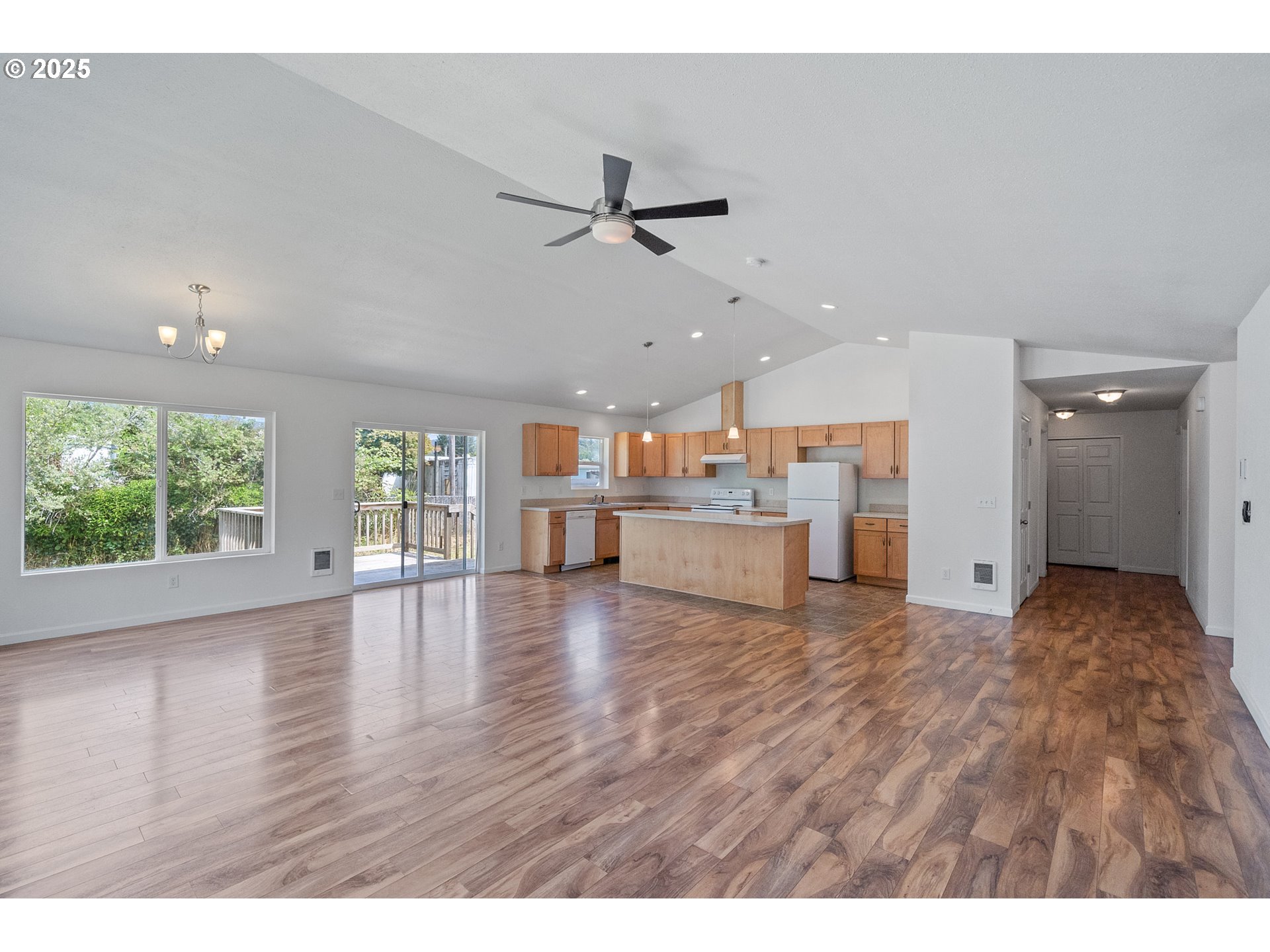 Affordable rural acreage without the projects! Centrally located at the end of a dead end road, this newer single level home sits on over 7 level(!!!) acres nestled in the center of a lush meadow. Built in 2014, this is a modern floorplan, featuring vaulted ceilings in the welcoming great room with views of your private coastal wonderland. Comfortable bedrooms, with lots of natural light. The acreage offers a blank canvas for your acreage dreams- plenty of room for a large shop, a barn, an arena, or all three!