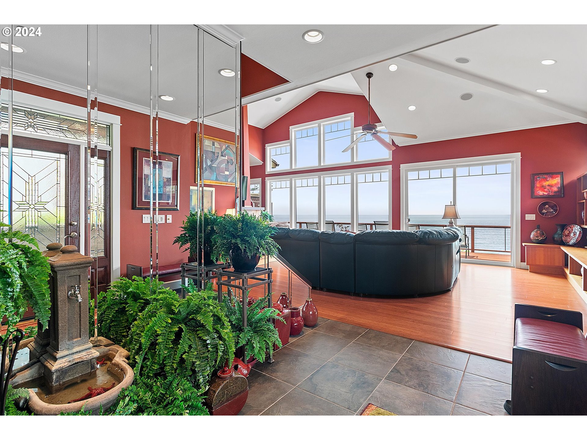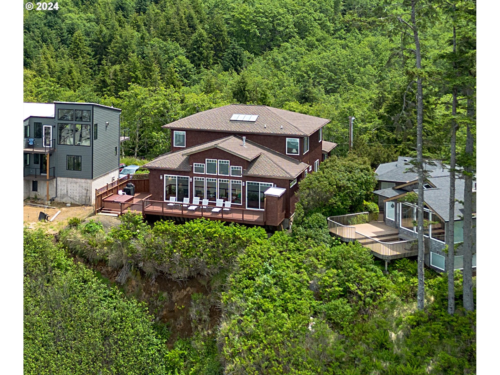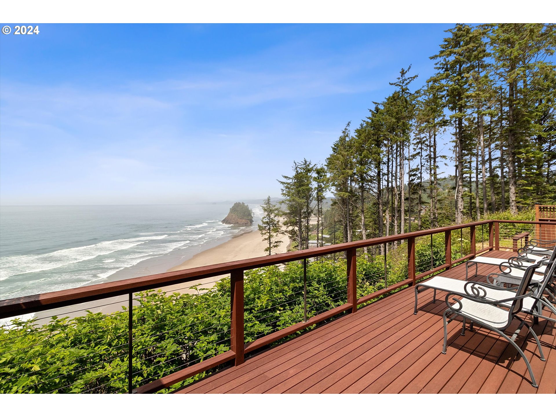 (503) 893-8874Neskowin luxury oceanfront custom home with breathtaking ocean views, expertly built by Bob Hoffman. This home showcases exceptional craftsmanship and high-quality materials throughout. Abundant natural light floods the home, enhanced by skylights, vaulted ceilings, and high-end finishes. The unique glass entryway invites you into a coastal haven, featuring a gourmet kitchen with plenty of storage, a formal living room, and a dining room. Relax by the custom stone fireplace or enjoy the mahogany deck and spa. The main level features a primary bedroom suite and a guest bedroom. On the upstairs level, you'll find two additional bedrooms with ensuites and a bonus area overlooking the main floor. The lower level includes a 3-car stall garage, an exercise room, a home office, and a full bath. This home also features a dumbwaiter and radiant heating. Be sure to make an appointment to view this meticulously maintained home.