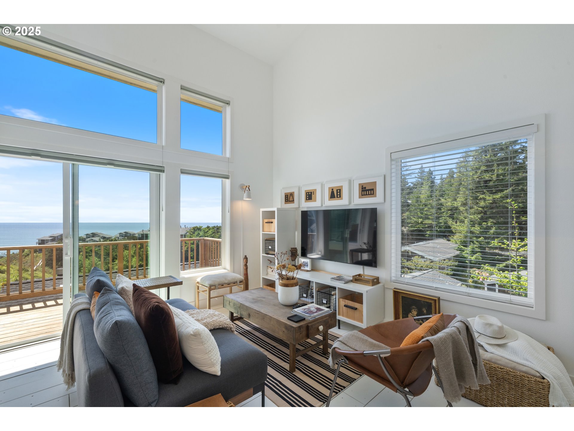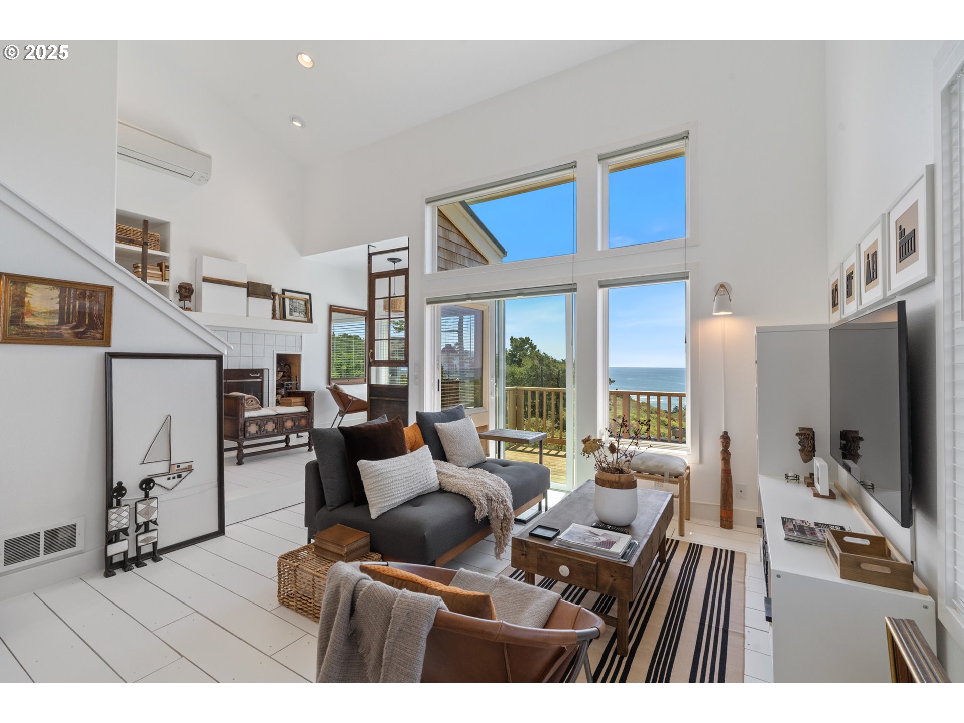 OCEANVIEW DESIGNER GETAWAY. Detached condo, architectural design by Robert Moreland. Artistic, stylish interiors true to the name of this small enclave called the "Hideaway Cottages". White painted pine floors, lots of light cheery space. Soaring 2-story vaulted ceiling.Large open living area includes inglenook with great view. Spacious open kitchen with island and room for a full dining table. Located at the top of trail to beach, features stunning panoramic sunset ocean view with whitewater waves visible even on moonlit nights. Quiet gated community. All ext maintenance included! New siding on weather exposed wall. Enjoy the benefits of condo maintenance but without a common-wall neighbor. New mini-split heat pump for your comfort. HOA includes insurance for your unit, plus major outside maintenance (siding, roof, deck, carport, grounds) in addition to community amenities of the beautiful Bridge House event facility, resident manager, tennis/pickleball, bocce ball, 2 beach trails, garbage.