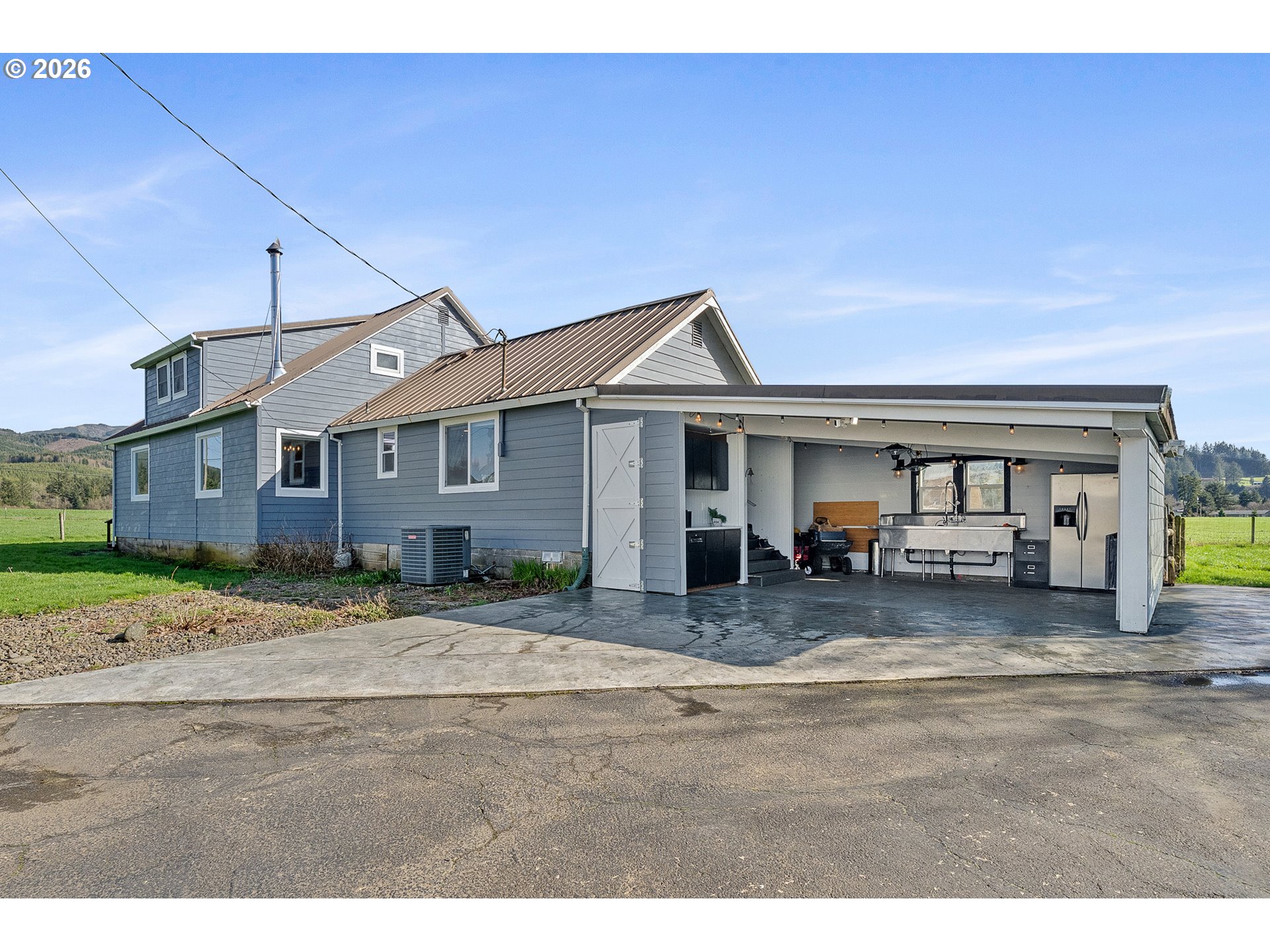 COUNTRY FARMHOUSE ON ACREAGE | REMODELED HOME WITH BARN, CREEK & PASTURE Escape to peaceful country living on 5.45 acres with this beautifully remodeled 4 bedroom, 2.5 bath farmhouse, the perfect blend of modern upgrades and rustic charm. This move in ready home features original hardwood floors, elegant quartz countertops, and a certified wood stove, creating a warm and inviting atmosphere. This versatile rural property is fully equipped for a hobby farm, mini ranch, or homestead lifestyle. The impressive 2,800 sq ft barn with loft provides plenty of space for livestock, equipment storage, workshop use, or agricultural projects. A detached oversized garage offers additional room for vehicles, RVs, boats, and recreational gear. Grow your own food with ease using two hoop house greenhouses, perfect for year round gardening, sustainable living, and organic farming. The fully fenced, level acreage includes lush pastures ready for horses, cattle, or other animals, plus a scenic year round creek that enhances the natural beauty and tranquility of the land. Enjoy outdoor living with a covered deck ideal for entertaining, relaxing, or taking in serene country views. A unique carport area with fish cleaning station, overhead heaters, and ambient lighting adds charm and functionality. Located just a short drive to town, this property offers the best of both worlds, private rural living with convenient access to shopping, dining, and amenities. If you're searching for acreage homes, farm properties, country homes with land, or farm animal ready real estate, this exceptional property delivers space, flexibility, and lifestyle. Your dream of country living starts here.