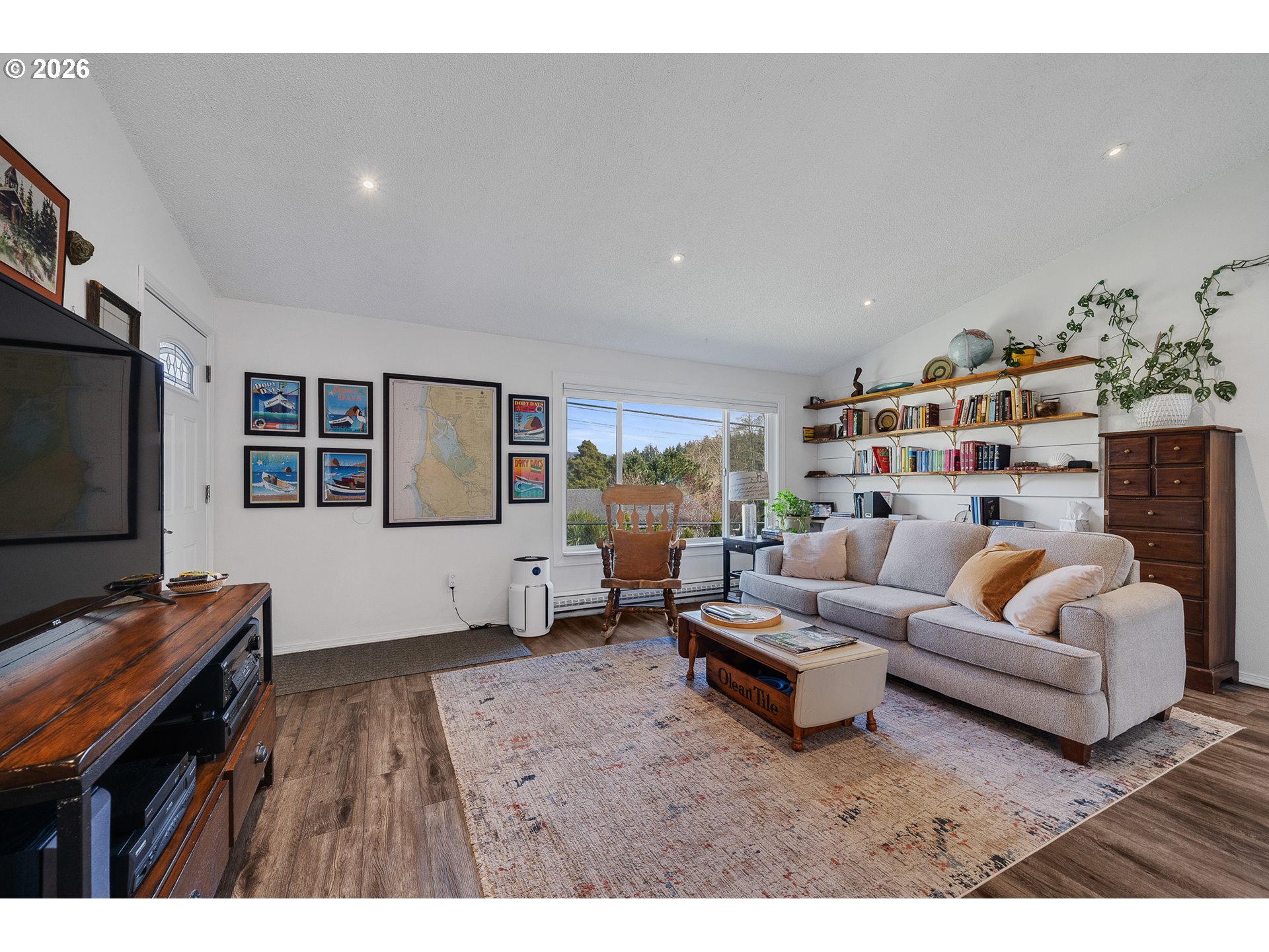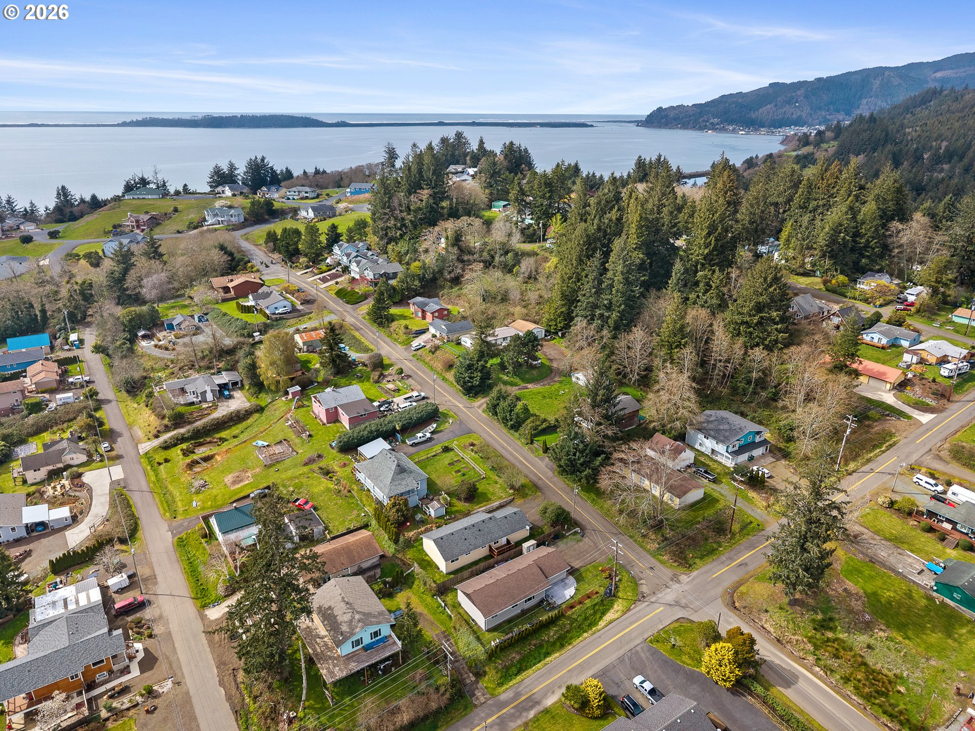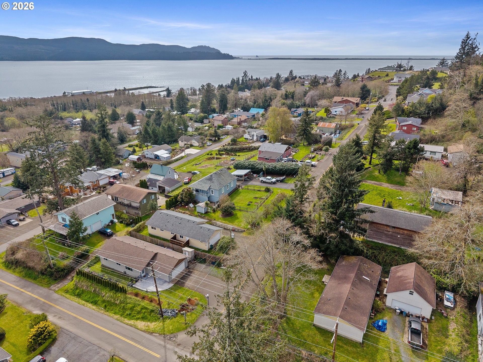 Charming Bay City home with bay views, located just a few blocks from the heart of town. This one level, 3 bed, 2 bath home offers a great layout, perfect for a starter home, downsizing, or coastal getaway. Enjoy an open kitchen with painted cabinetry, butcher block counters, full-height backsplash, pantry and newer appliances. Vaulted living room has lots of light and and custom live-edge myrtle wood shelving. Outdoor spaces, perfect for entertaining with a nicely landscaped, fenced yard, raised garden beds, garden shed, and new concrete front patio that has a view of the bay! Double car garage with storage. Thoughtful updates include new insulation, new dishwasher and kitchen faucet. No carpet, for easy indoor maintenance. Enjoy this quiet neighborhood and take your evening stroll down to the park, local art center, café or just enjoy the bay views! Schedule a showing today!
