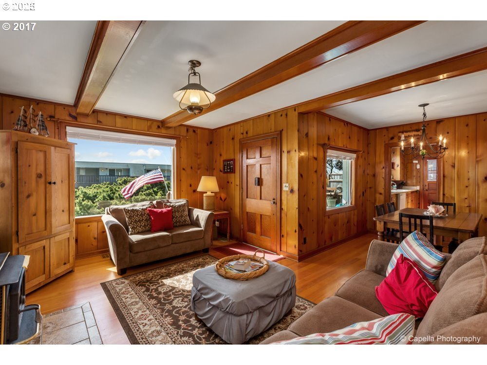 This cozy 1950 beach house is perched up off the street, offering privacy, ocean views and vintage charm! Located across the street from the beach and minutes to all of the darling shops/restaurants Rockaway has to offer. An arcade/game room in daylight basement. Endless opportunities for use with plenty of bedrooms + bathrooms for an income earning rental/airbnb, multi generational family or owner occupant needing storage + hobby space! Please do not disturb tenants! Short term rental permit is transferable! Located in flood zone. Rents in 2024: $606 nightly average, $76,053 annual rental revenue, 101 nights booked. Pelican Pub Brewing scheduled to open mid August 2025 in Rockaway Beach!