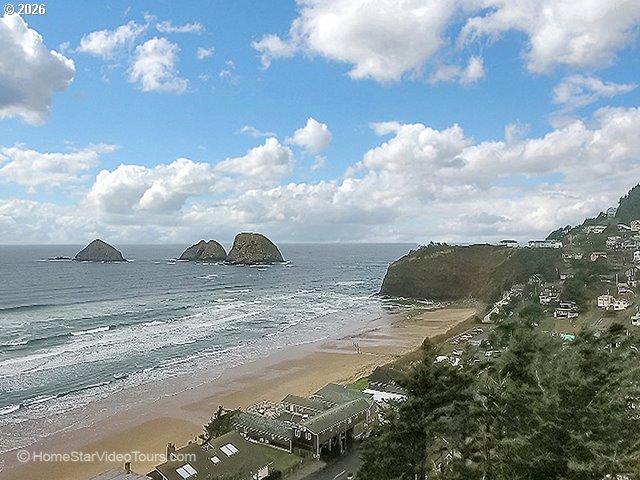 (503) 893-8874OCEANVIEW CONTEMPORARY on a flat lot studded with majestic trees. Located on the corner near the end of a street of elegant homes. Walls of windows bring in the light, the spectacular ocean view including Three Arch Rocks, and the towering trees. Entire top floor is the lavish and romantic primary suite with oceanview jetted tub and huge closets. Open concept floorplan. Living room has 2 story high ceiling, hardwood floor, marble fireplace. Ground floor den/family room with attached bath and woodstove. Solid structure, steel framed. Owner says "never a squeak or a rattle." Oversized garage with room for a hobby corner. Abundant parking on the large flat driveway. This HOA is basically for maintaining the private paved roads that meander up the hillside, far above tsunami hazard. Dues are apx $300 per year. May be sold furnished.