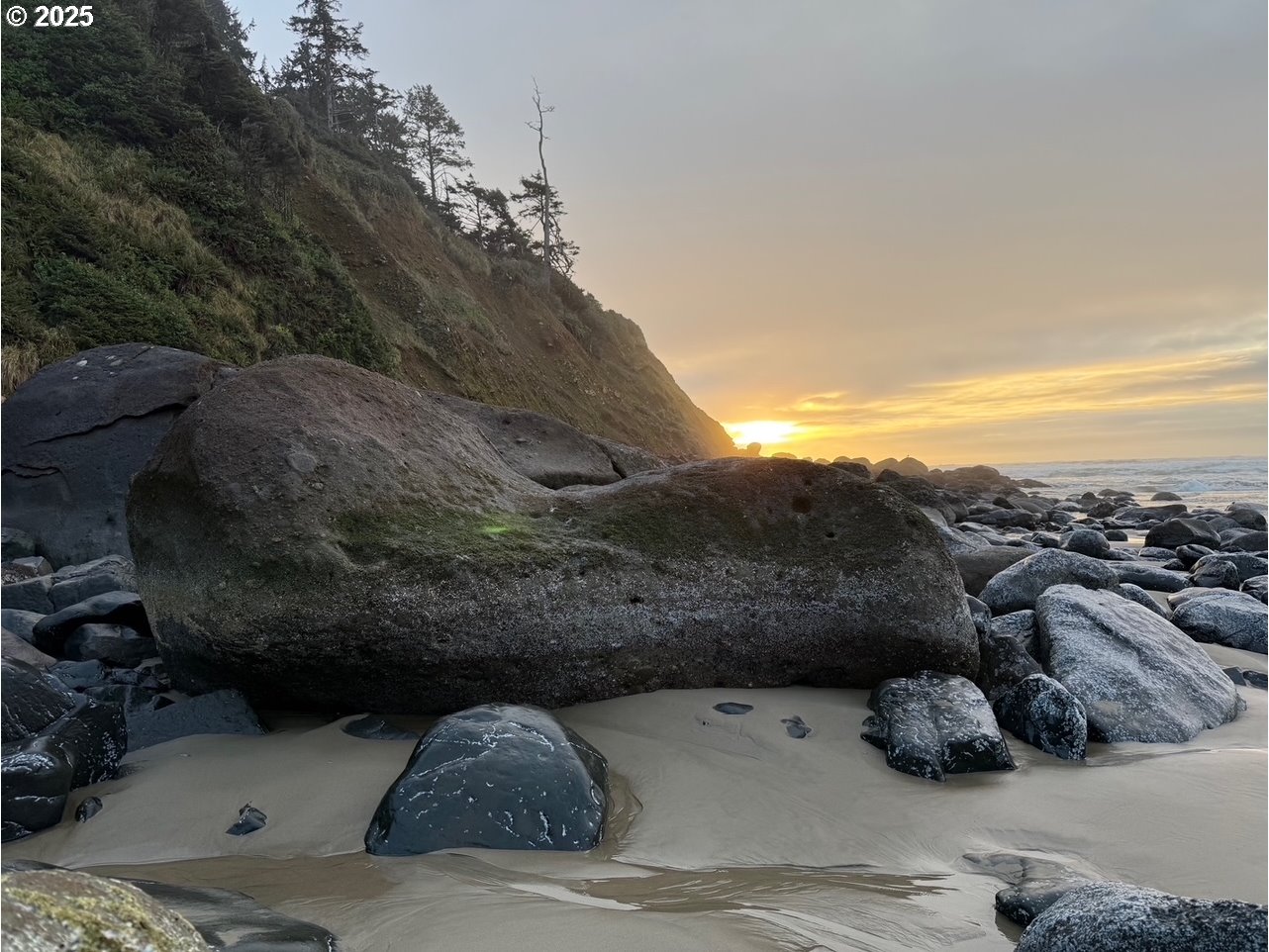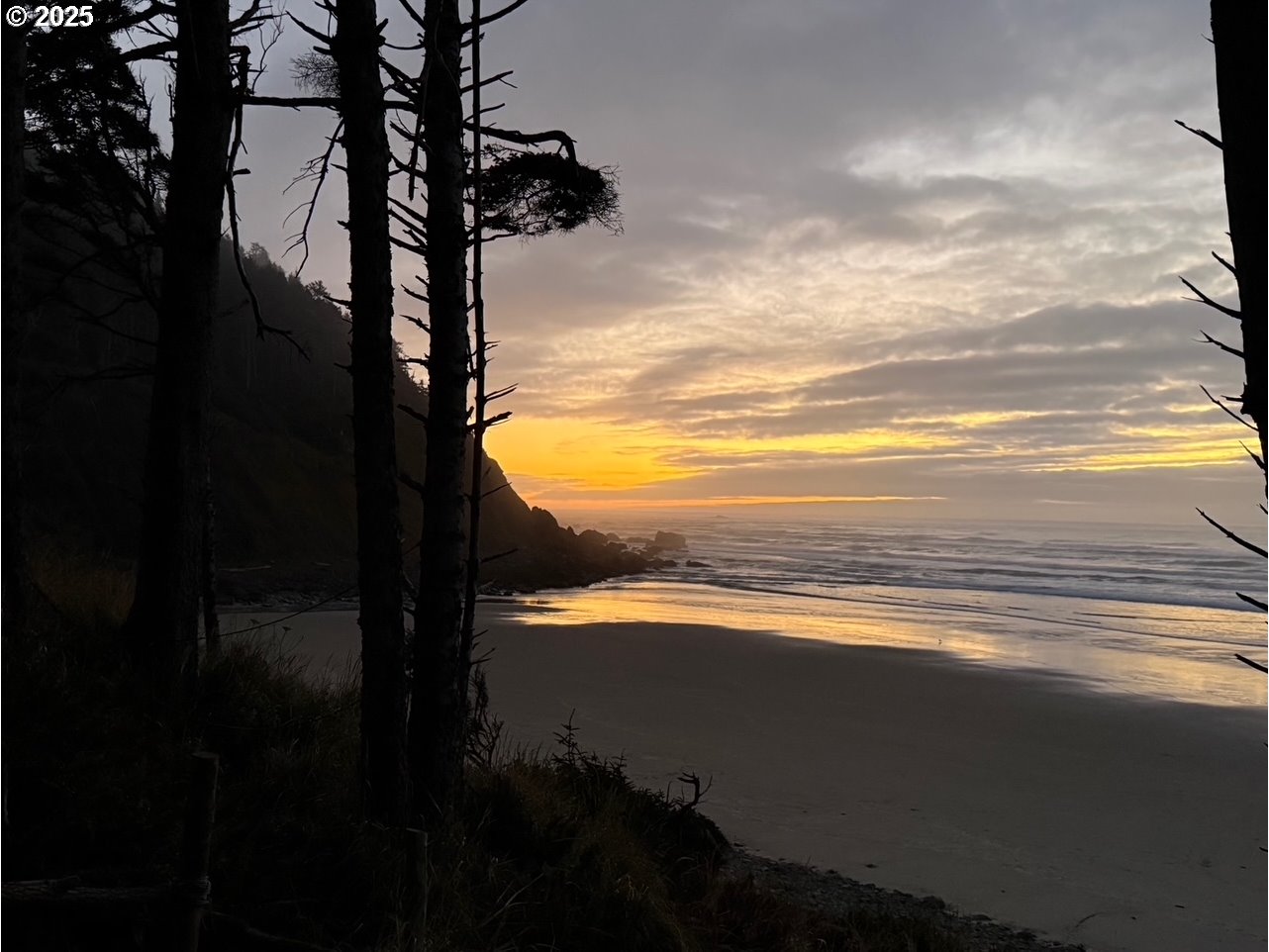 Escape to Falcon Cove one of the most breathtaking and protected stretches of the Oregon Coast. This inviting coastal home sits in a quiet community dedicated to preserving the natural beauty of its unspoiled beach and lush forest surroundings. The open concept layout includes 3 bedrooms and 2 bathrooms, featuring a comfortable primary suite. A wood burning stove provides comfortable warmth, while the spacious 3 car garage/workshop offers room for a boat, RV, or creative projects. Step out to the sun filled deck, ideal for outdoor dining and soaking in the fresh sea air. Originally manufactured in 1972, the home underwent a complete remodel, including the addition of drywall throughout, with an effective year of 1984 per county records. Two tax lots (Parcels #64110 & #3302) combine for approximately 0.43 acres, offering exceptional space, privacy, and flexibility a rare find along the coast. Just steps from the beach and only two miles from world class surfing and hiking at Short Sands Beach, this property presents a remarkable opportunity to live immersed in coastal beauty. An estate sale offered as is, this home is filled with potential to make it your own a true Oregon Coast retreat waiting to be discovered. The additional tax lot houses the septic drain field, providing essential infrastructure and valuable extra land.