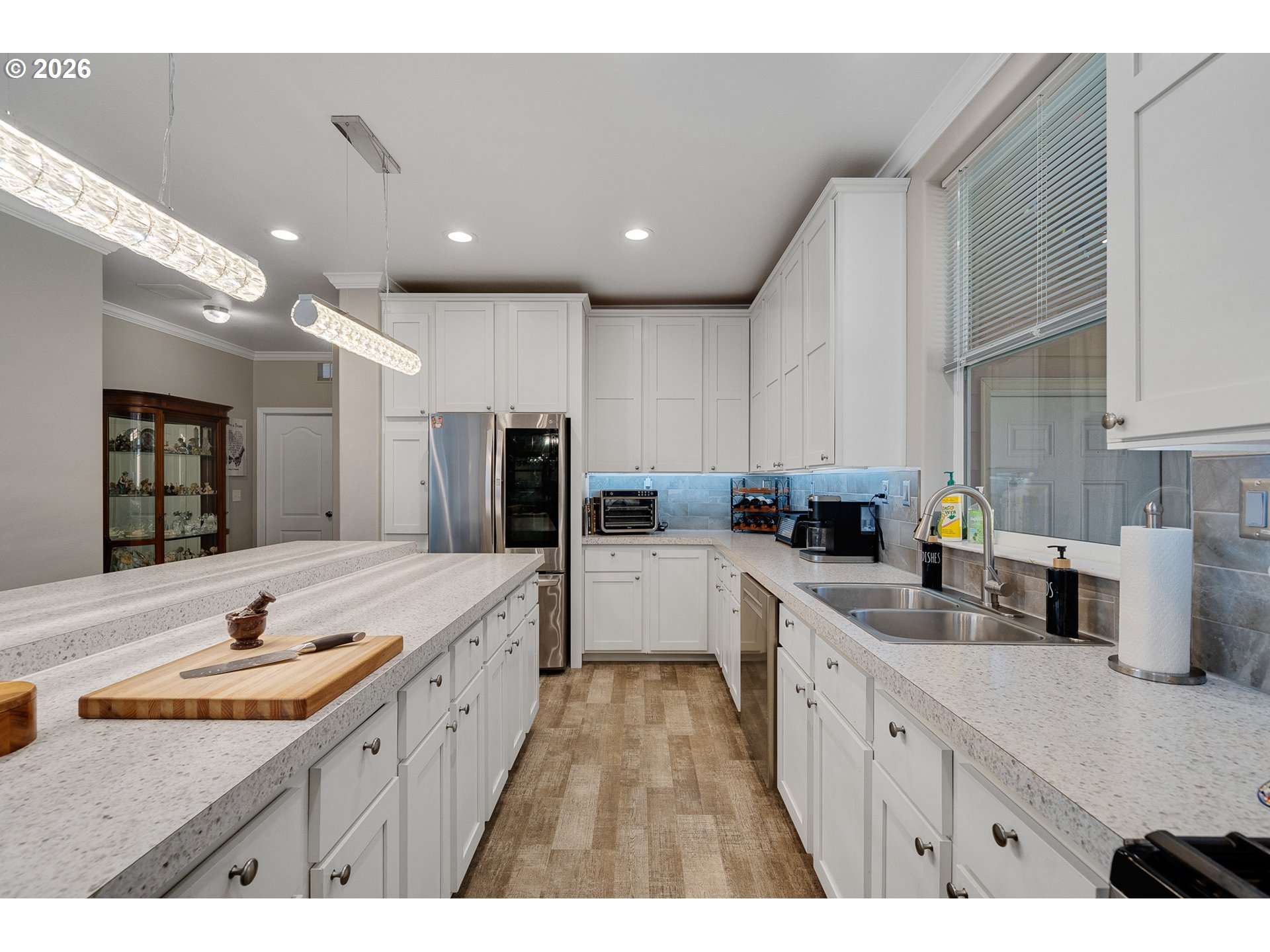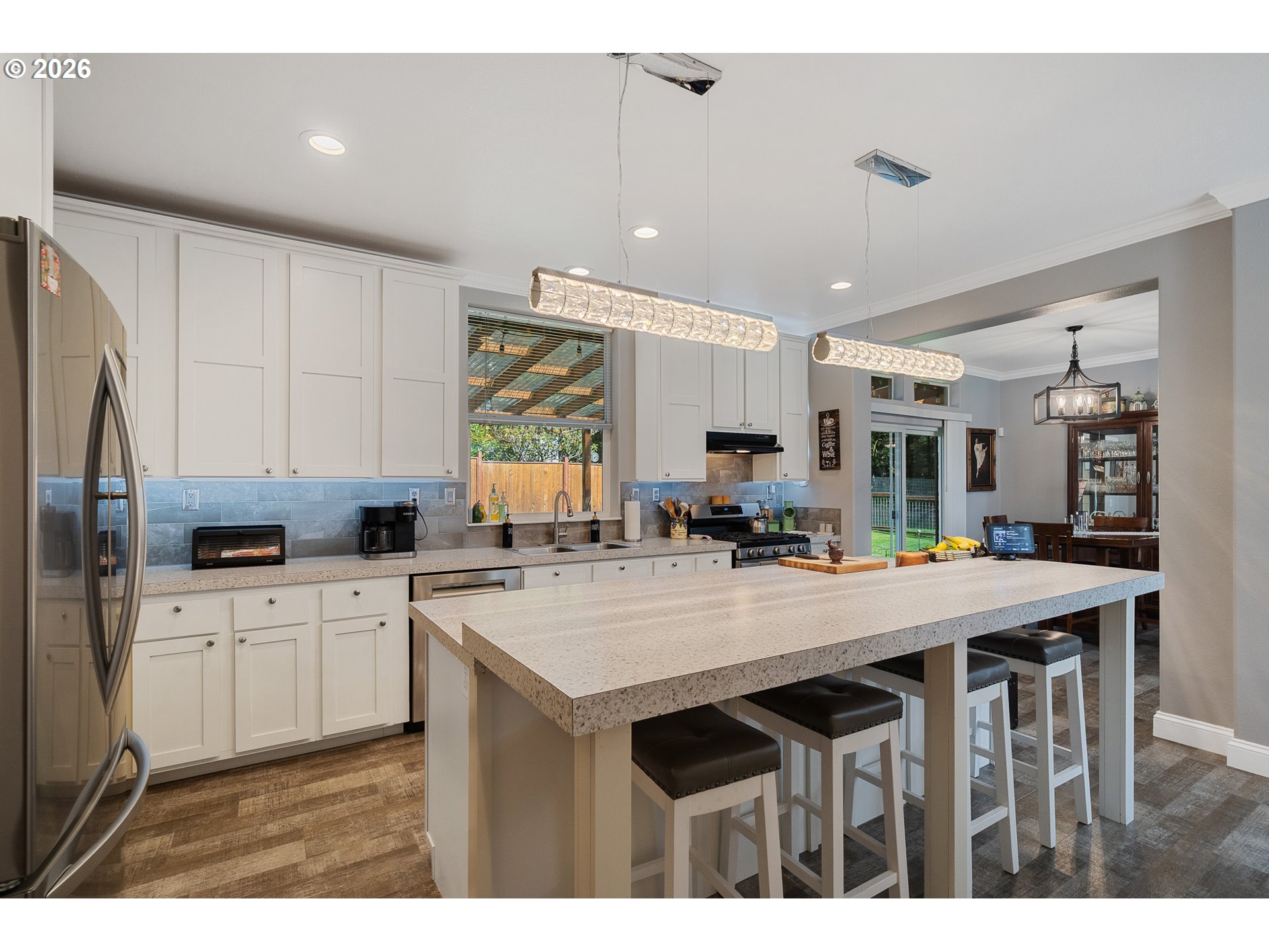 Dishwasher, Disposal, FreeStandingGasRange, FreeStandingRefrigerator, Island, Pantry, StainlessSteelApplia