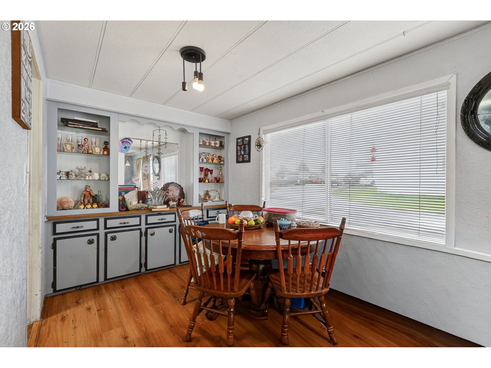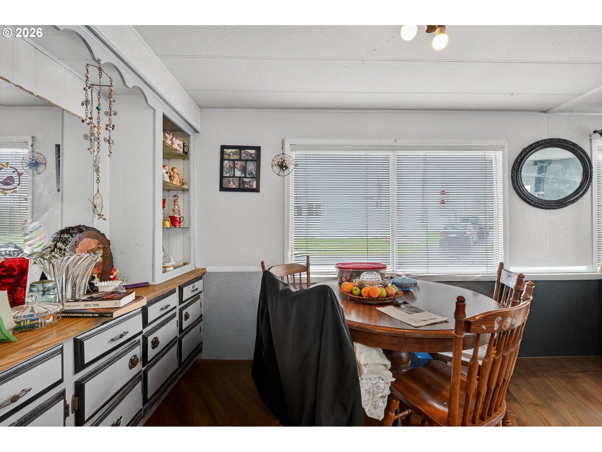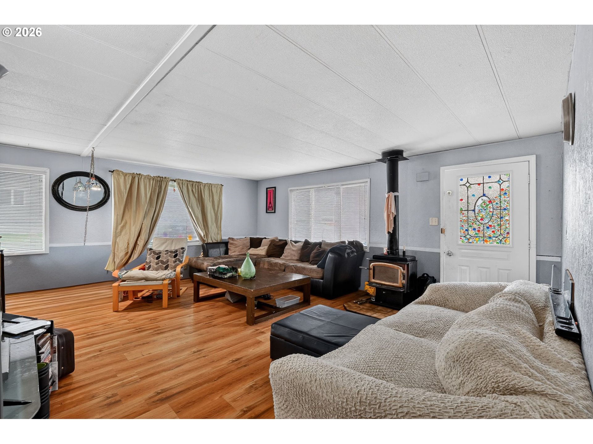 Bright and inviting, this 3-bedroom, 1-bath manufactured home offers comfortable living with laminate flooring throughout and abundant natural light from a generous number of windows. The living room features a cozy wood stove, perfect for chilly evenings, while the dining room includes charming built-in features that add both character and functionality. The closed kitchen is equipped with a built-in oven, making meal prep easy and efficient.Step outside to a spacious backyard, ideal for gardening, outdoor entertaining, or simply enjoying the fresh air. Located in a desirable area, this home offers the perfect blend of country tranquility and convenient access to local amenities, including nearby schools, parks, shopping, and community attractions. A fantastic opportunity to own a well-maintained home with practical features and a bright, open feel.