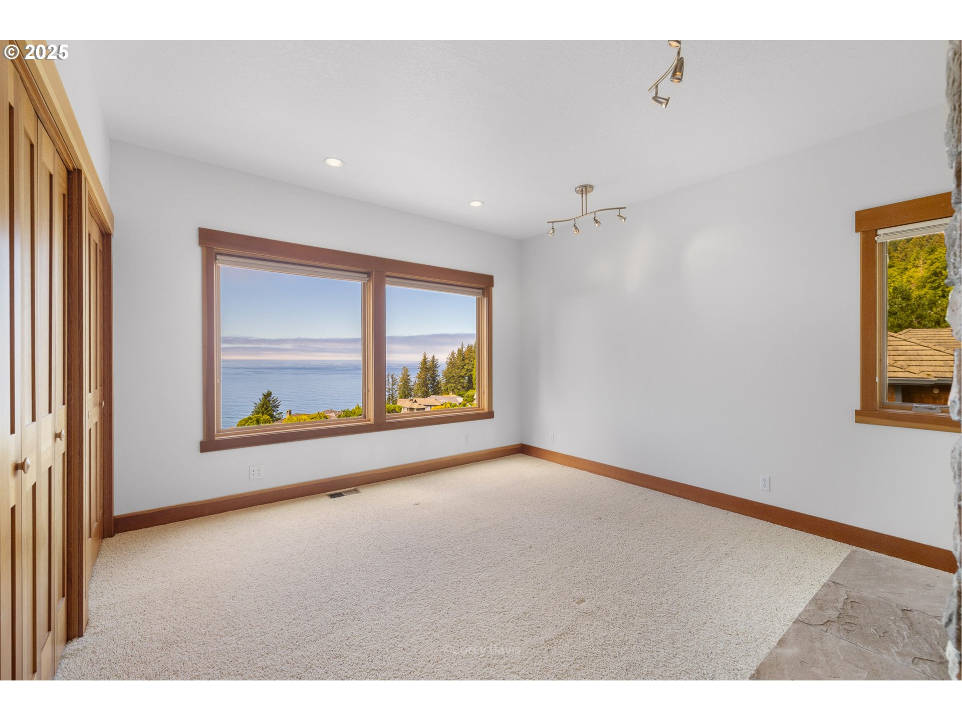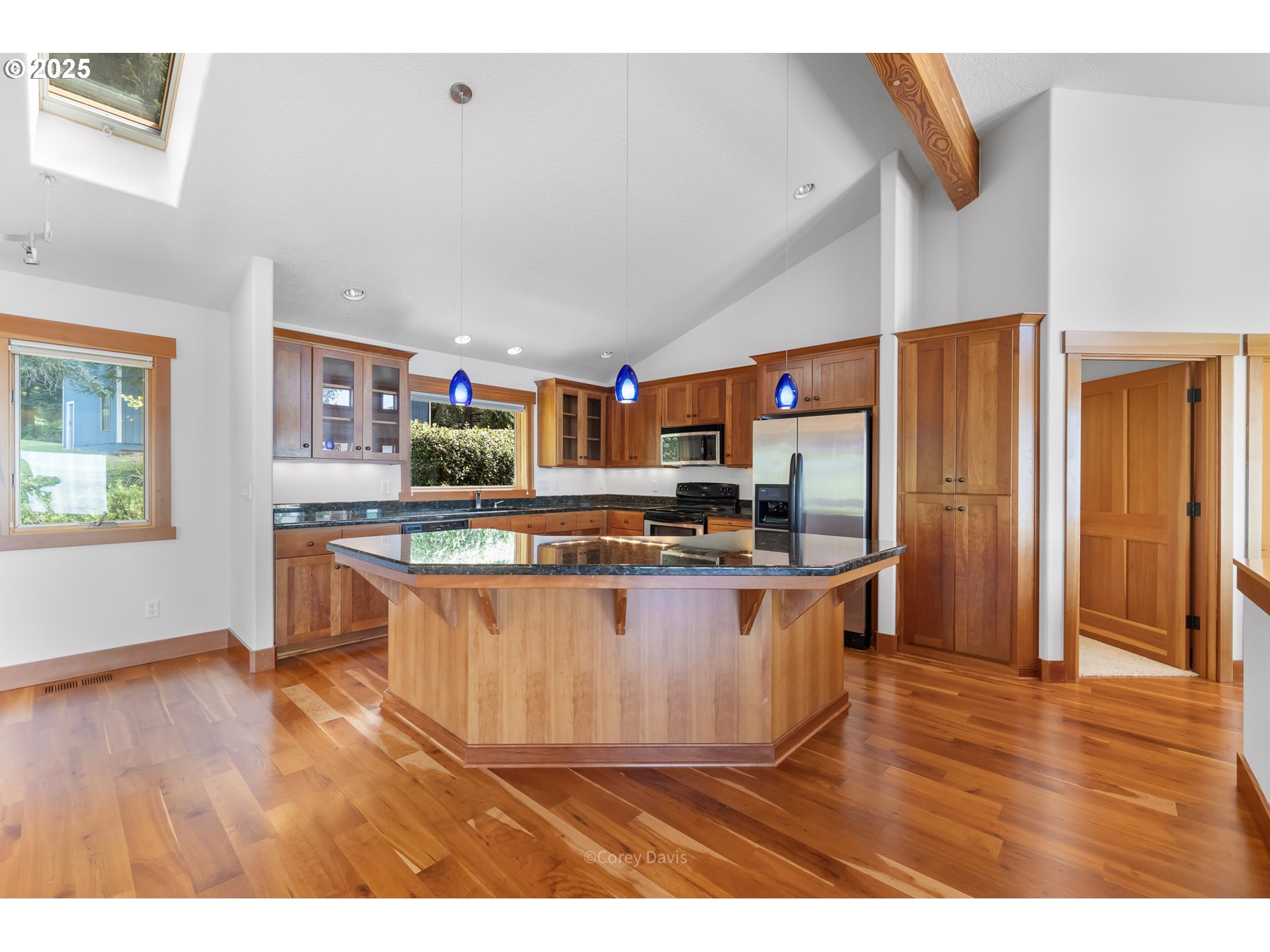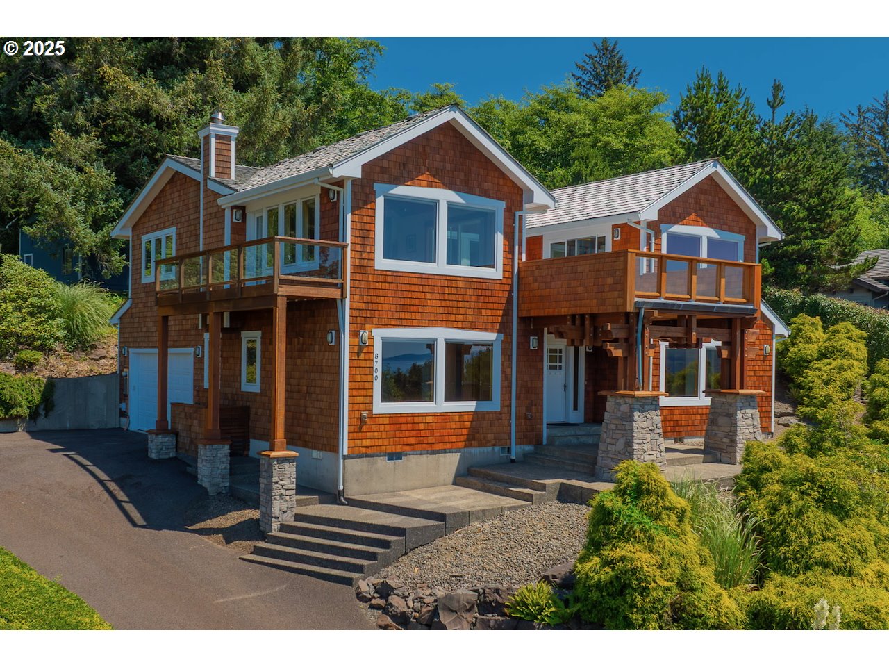 (503) 893-8874A vista lover’s dream in Neahkahnie Meadow. Enjoy breathtaking ocean, bay or mountain views from the generous deck and nearly every window in this custom-built Oregon coastal masterpiece. Vaulted/high ceilings and deluxe craftsmanship impress for the perfect balance of design and comfort. Spectacular woodwork includes wide plank cherry hardwood floors, custom cherry cabinets, tongue and groove living room ceiling and Douglas fir trim finishes. Must-see reverse floor plan optimizes ocean, bay and mountain views. Upstairs, the spacious owners’ retreat features a private bath and gorgeous coastal scenery. Downstairs, one of two view bedrooms delights with a cozy propane fireplace. With an open-concept main level, 4 bedrooms, media room and library/den, there’s room for everyone, plus space to live and work. Heat pump and forced air furnace provides year-round comfort. Neahkahnie Meadow offers gated security, a walking path to the beach, and private roads. Located out of tsunami zone with downtown Manzanita, miles of sandy beach and state park hiking trails nearby. Many features and recent updates; see documents for more information. After viewing the video and 3-D walkthrough, contact your broker for an exclusive viewing.
