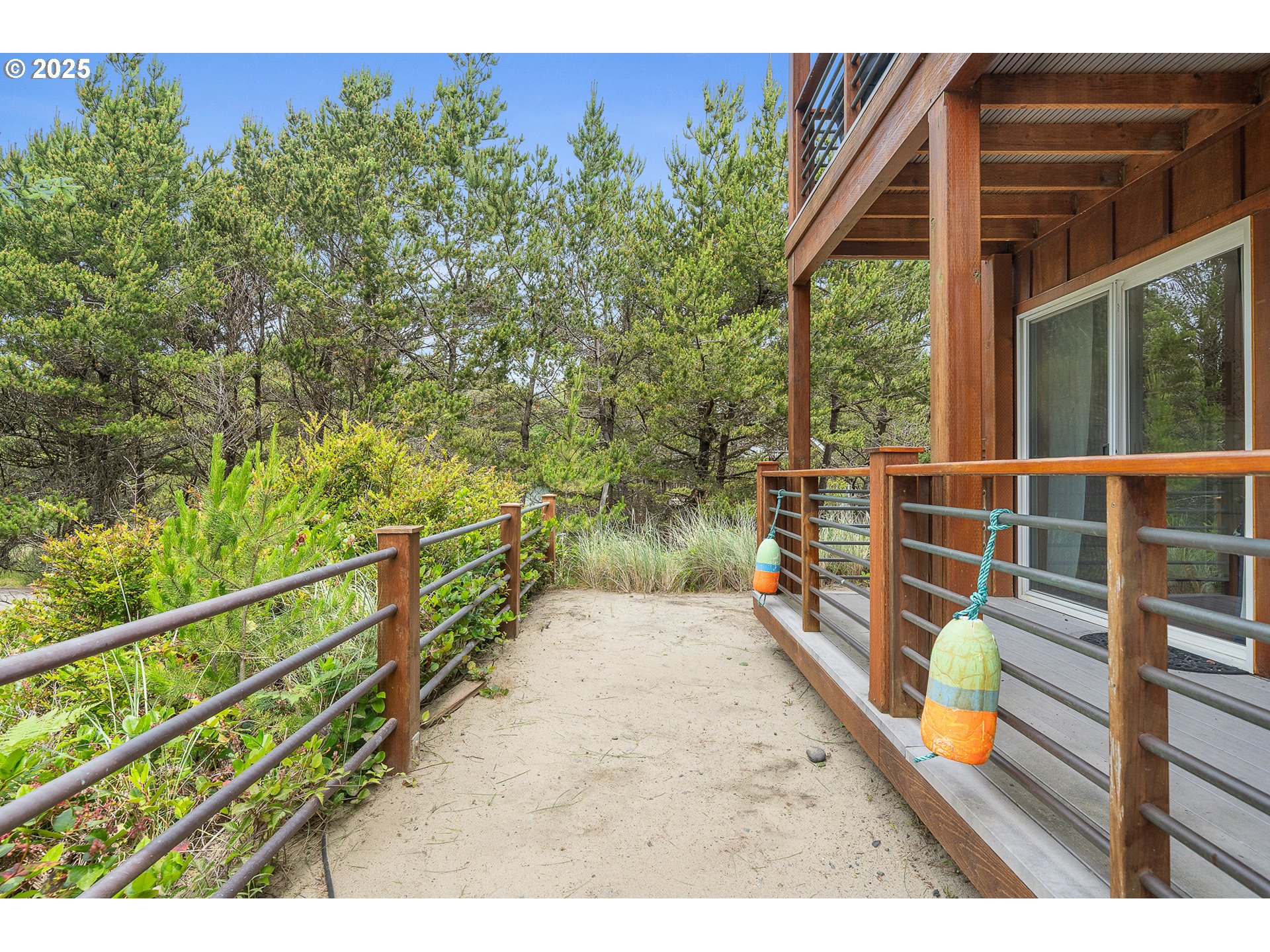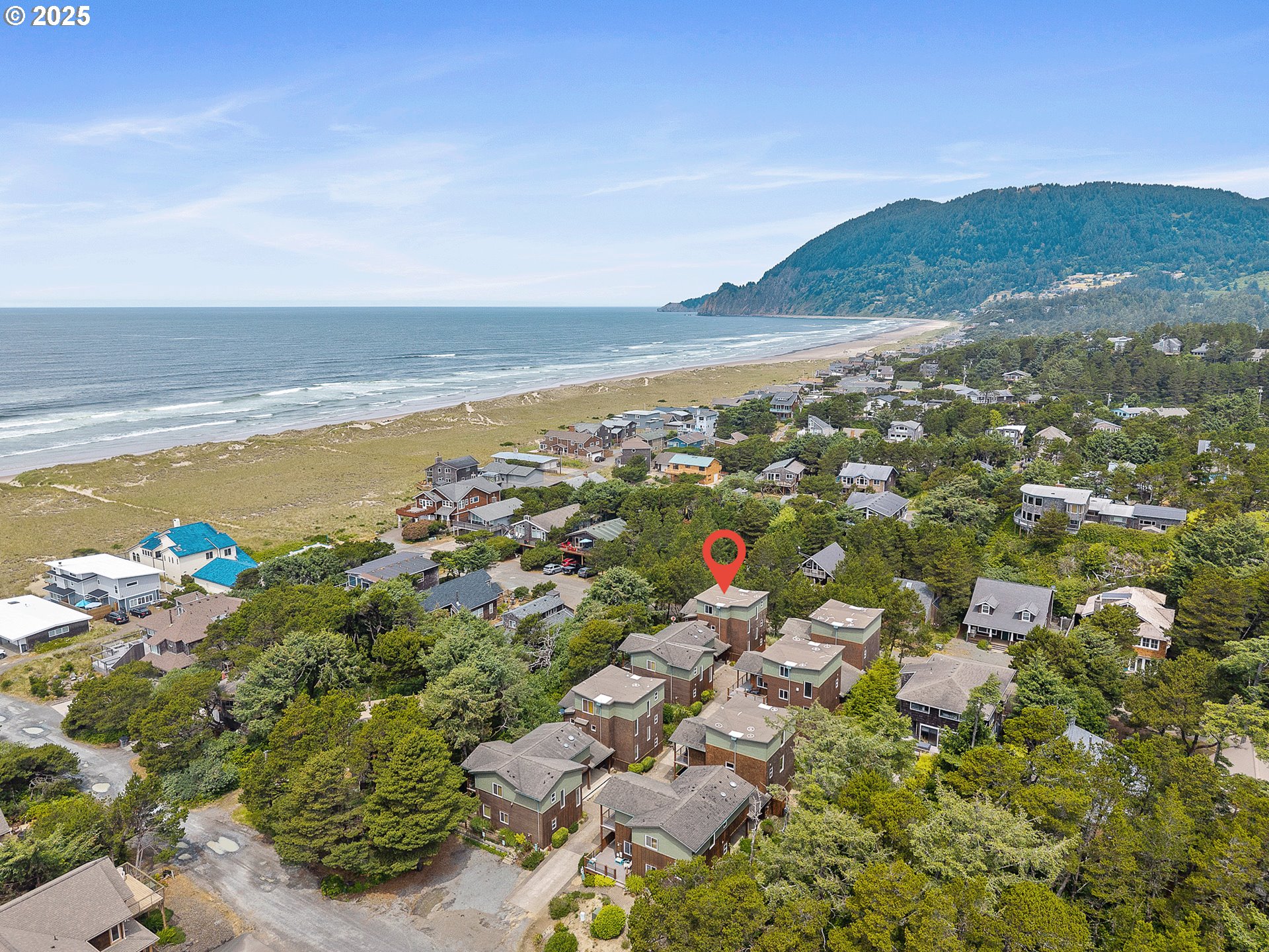 Steps from the beach, this 3 bedroom, 2.1 bathroom end-unit condo offers a partial ocean & Neahkahnie Mountain views. Make your way between the floors with the interior elevator. The home features two covered decks, one off the main living area & another shared by the two lower bedrooms providing usable outdoor space year round. The great room located on the middle floor includes a gas fireplace, hardwood floors, and a custom kitchen with live-edge granite surfaces, stainless appliances, & alder cabinets. The top floor, primary suite, features vaulted wood ceilings & an ensuite bath. The home is being offered as furnished. Located near a walking path to Manzanita shops, golf, & Nehalem Bay State Park trails. Call your broker to schedule a viewing & for more info.