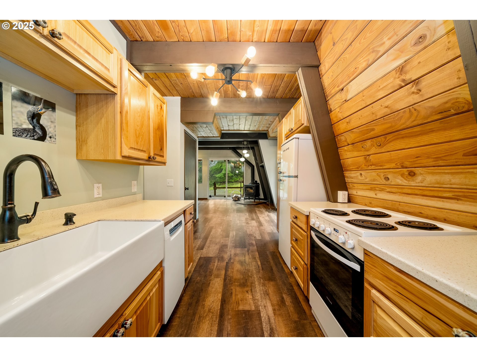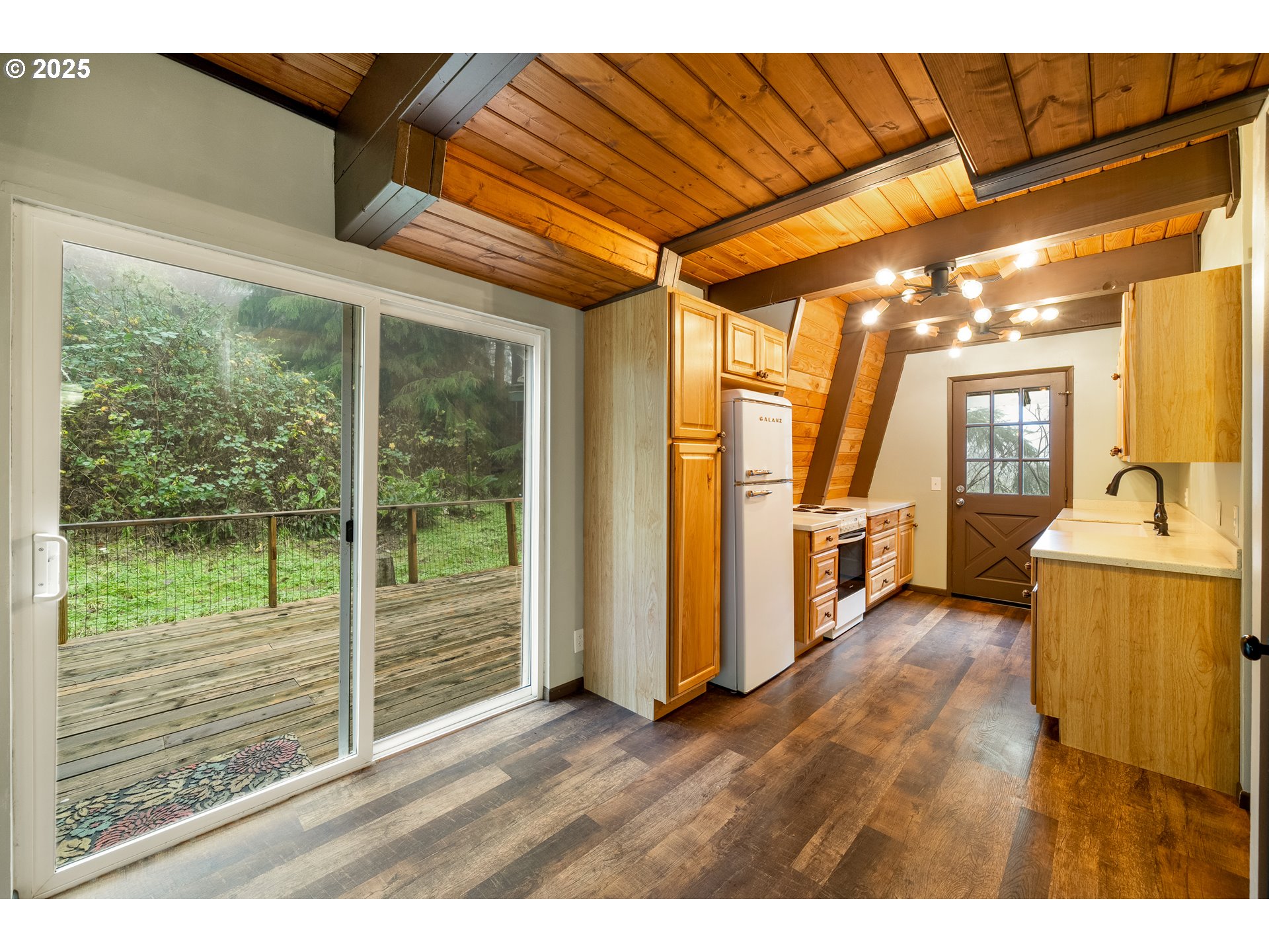 (503) 893-8874Your secluded beach retreat is here! This unique, 2 bedroom, 2 full bath flat-topped A-frame cabin is tucked into the woods on nearly a quarter acre in one of the few Rockaway Beach neighborhoods offering comfortable elevation while still being an easy walk to the beach. This charming home has undergone extensive updates in recent years. Exterior improvements include a newer roof and gutters. Interior upgrades include a completely remodeled kitchen, updated bathrooms, new flooring throughout, and engineered foundation stabilization. A Regency wood stove adds warmth and ambiance for cozy coastal evenings. Outdoor features include a relaxing hot tub and two detached outbuildings, including a glass-enclosed structure and a studio-style space suitable for hobbies or workspace. This thoughtfully updated cabin offers simple, low-stress coastal living for years to come.