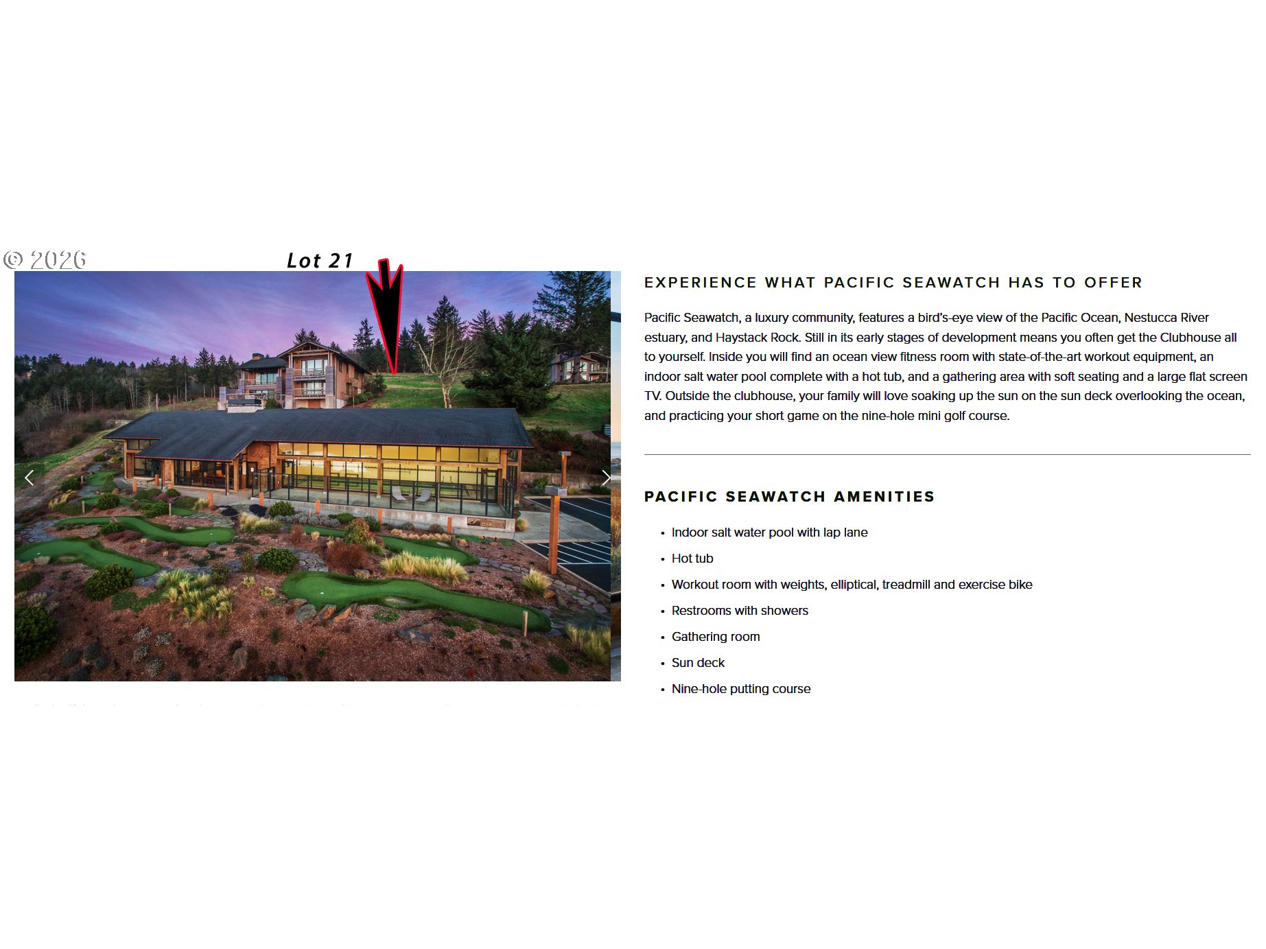 Perched above the Pacific Ocean, this generous lot combines stunning views and safety from Ocean/River flood hazards. Design your custom retreat with view of the Cape Kiwanda Rock and the ocean. Underground utilities, gentle slope and lot placement lessen the complexity of building. Pacific Seawatch has a myriad of community amenities; indoor saline swimming pool & hot tub, weight room, party room and ocean view golf putting course. Lot #21 is a short walk to the clubhouse and sits across the street from the "Coastal Living Home" a custom designed beauty that is a pleasure to look at. A community utility easement on the South side adds a bit more privacy and space between lots #21 & #22.Pacific City beach has a great surf break, wide sandy beaches and a vibrant collection of shops, dining and activities. The Nestucca River flows into the Pacific Ocean at this point and you can kayak, canoe and fish the Nestucca as well as enjoying the view of the confluence of the river and the ocean. A special treat for an unparalleled view opportunity. Pacific Seawatch has maintained view corridors with strict height restrictions, so each ocean view lot has the opportunity to have their view maintained. Buyer to perform due diligence on land use regulations & build process.Seller is licensed real estate agent in state of Oregon Clubhouse link in virtual tour