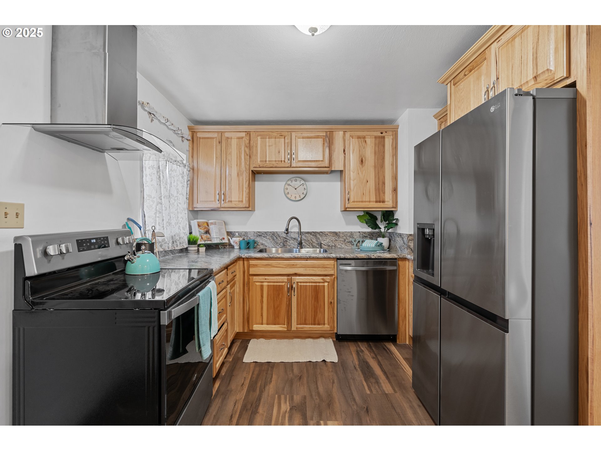 Packed with New Features Inside and Out!This fully updated 3-bedroom, 1-bath home has been beautifully redone from top to bottom — offering a perfect blend of modern updates with a touch of original charm. The kitchen has been fully remodeled with brand new oversized oak cabinets, an oversized farmhouse sink, new countertops, and all new stainless steel appliances — including a stove, dishwasher, and fridge with ice maker, water, and filter system. Washer and dryer are also included, making this home completely move-in ready. Step inside to brand new LVP flooring throughout the main areas and new carpet in the bedrooms. The bathroom has been completely updated with tile shower walls, a new sink, toilet, and light fixtures. Throughout the home, you’ll find new double-pane vinyl windows, hardwood closet doors, and an efficient certified wood stove — keeping a little original character while everything else feels brand new. The home also features a brand new AC system, new furnace, new thermostat, and new ducting throughout for year-round comfort. An efficient electric water heater and new door knobs add even more value to this beautifully redone home. Outside, you’ll find a large backyard with chain link fencing, perfect for enjoying outdoor space. There’s also a storage room in the back with a carport for additional covered parking or storage. The exterior paint was done just 3 years ago, and the roof is only 4 years old. The driveway fits two vehicles, and the furnace runs on gas. This home is truly move-in ready with all the major updates already completed — new inside, refreshed outside, and ready for its next owner!