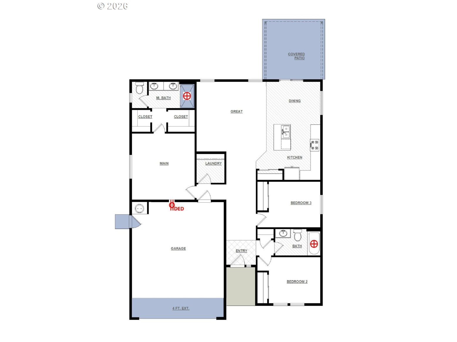 Unlock 2026 Home Savings Event Happening Now! Contact our Community Manager to learn more. The 1408 square foot Edgewood is a mid-sized home catering to those who value both comfort and efficiency in a single level home. An award-winning designed kitchen, featuring a breakfast bar and ample counter space, overlooks both the spacious living and dining rooms. The separate main suite affords you privacy and features two large closets in addition to a dual vanity ensuite. The two sizeable bedrooms share a full bathroom and complete this design-smart home plan.