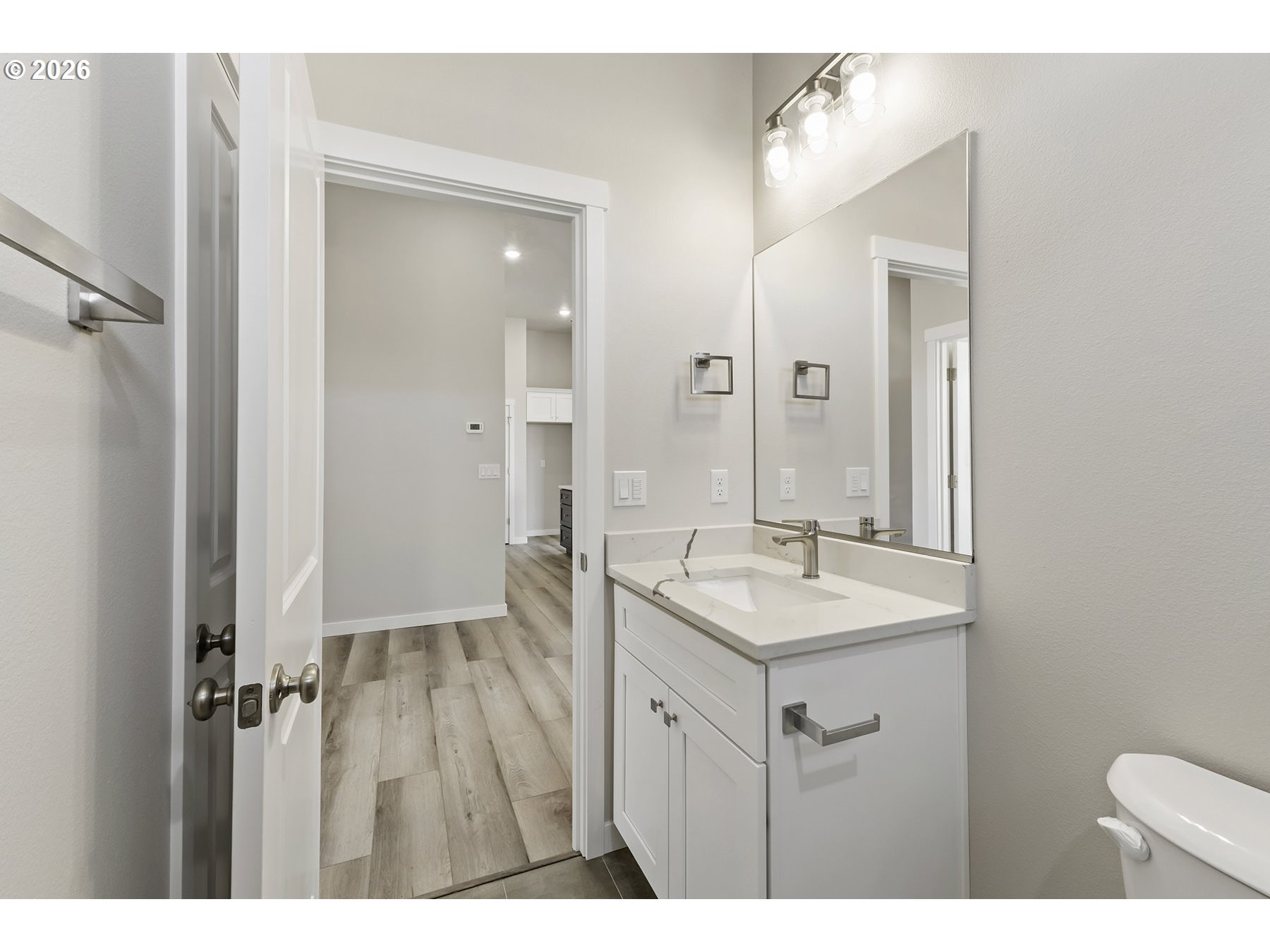 (503) 893-8874VIEW WOOD ESTATES NEWEST: Step into refined comfort and thoughtful design with this beautiful 3-bedroom, 2-bath residence, offering an exceptional blend of style, function, and modern craftsmanship. The heart of the home is a stunning great room featuring an impressive 11-foot raised ceiling, elegantly enhanced by crown molding that outlines the uppermost ceiling plane, creating a sense of openness and architectural distinction. A striking floor-to-ceiling sheetrock fireplace bump-out anchors the space, showcasing a sleek 60-inch electric fireplace that adds warmth and contemporary sophistication. The kitchen is designed to impress, complete with a freestanding hood vent, a fully trimmed built-in microwave, and a gas-ready range with a dedicated gas line. Perfect for both everyday living and entertaining. Thoughtful details continue throughout, including a spacious laundry room outfitted with a custom 3-cubby bench for added convenience and organization. Retreat to the private quarters where both bathrooms feature coordinated finishes, with the guest bath offering tile flooring and a shower that mirrors the upscale design of the primary suite. Car enthusiasts and hobbyists alike will appreciate the expansive 3 car garage, highlighted by colonial grid pattern garage doors, a third bay with mechanical opener, and a dedicated 220V circuit ideal for tools, equipment, or electric vehicle charging. The home’s exterior is finished with durable and stylish fiber cement board siding, ensuring lasting curb appeal. Step outside to enjoy a thoughtfully designed rear concrete patio, featuring a clean, symmetrical four square layout perfect for outdoor gatherings or quiet relaxation. Completing the home is a welcoming front entry with a built in peephole for added security and peace of mind. This residence is a true blend of elegance, practicality, and modern amenities ready to welcome you home. Call today for your personal showing.