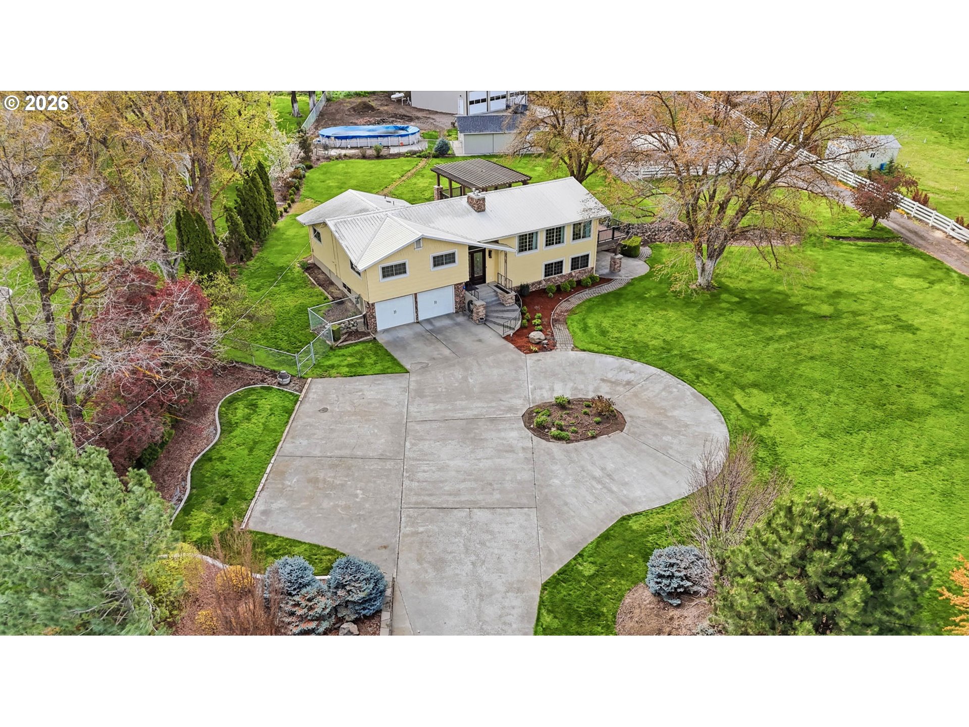 Some homes give you square footage. This one gives you space to live the way you want. Set behind mature trees with a wide circular driveway, this property immediately feels open and private. The backyard is fully fenced, and your evenings are meant to be spent under the covered patio. The separately fenced pool will create a summer hub for memories, laughter, and long warm nights. The 38'x42' shop is heated with three roll-up doors (two are automatic), a lean-too and ready for projects, toys, or business needs. A 20'x28' storage bldg is freshly sided, painted and roofed. Plus a 20'x18' metal awning to use as parking cover is included. Inside, the split-level layout creates natural separation while keeping everyone connected. The remodeled kitchen is built for gathering — gas stove, wall ovens, pantry — ready for holidays and everyday dinners alike. Bathrooms have been beautifully updated - Primary bath is brand new, never used! Downstairs offers a cozy family room with gas fireplace, a 4th bedroom with shiplap detail, and even a sauna for your own private reset. Homes with this much flexibility and outdoor space are hard to find. Schedule your private tour and see what life here could look like.