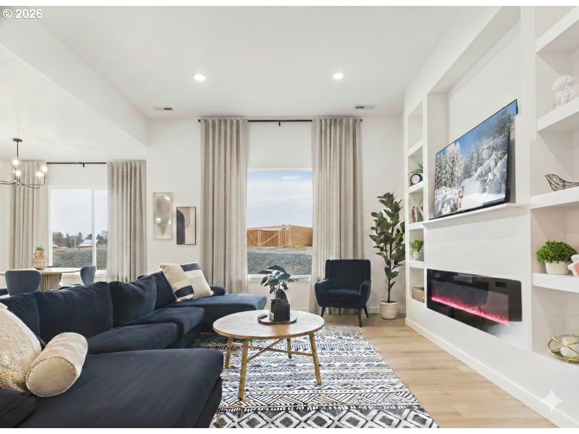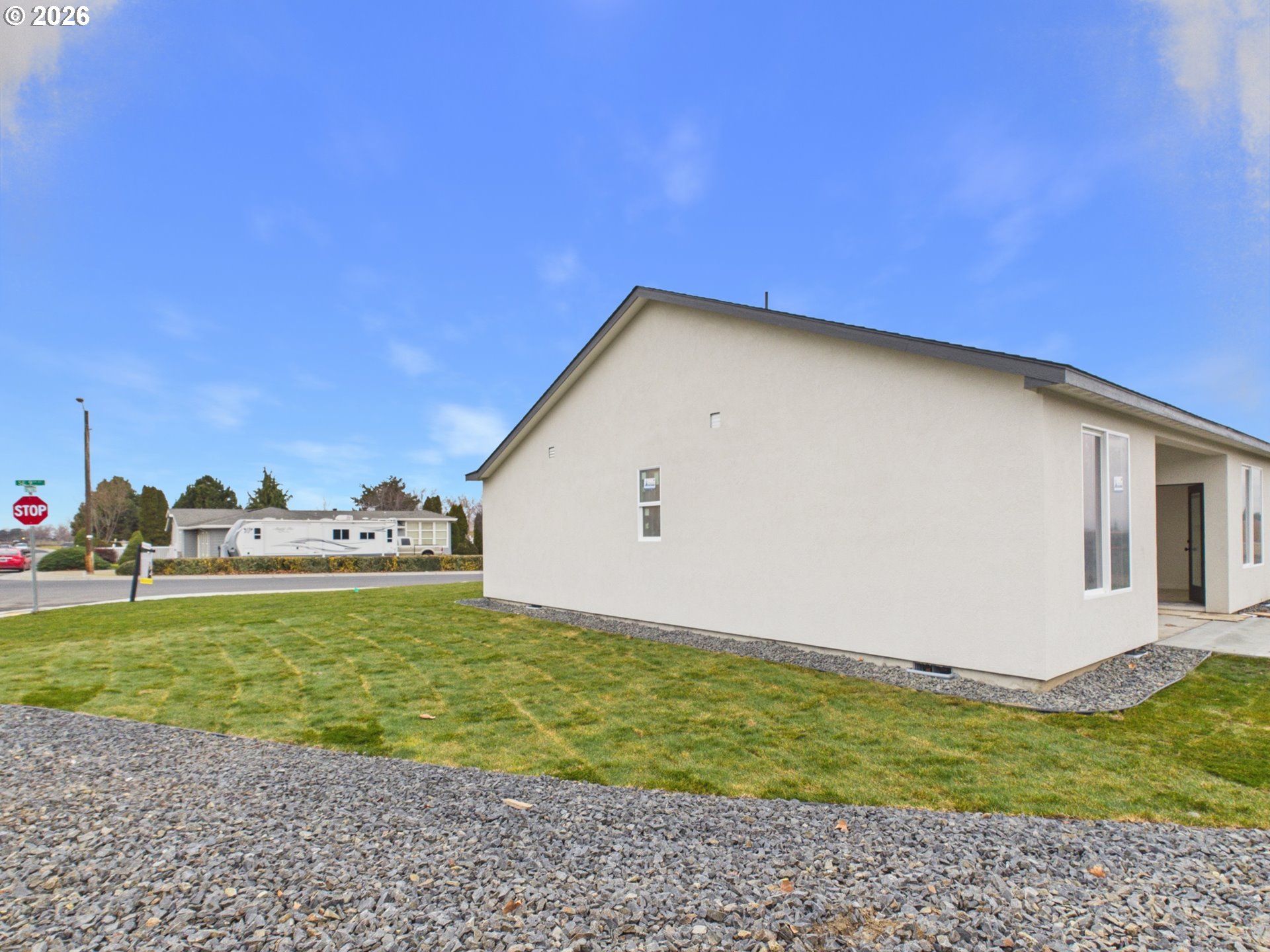 Ask about our full appliance package OR Closing cost incentive! Check out one-of-a-kind residence located on a desirable corner lot in a brand-new Hermiston subdivision. NEARLY COMPLETE! An expansive, open-concept layout greets you, highlighted by soaring ceilings and a modern linear fireplace that provides a stunning focal point. The home flows beautifully across luxury vinyl plank floors, leading to a chef's kitchen with pristine quartz countertops.Retreat to your spacious primary suite, featuring an expansive closet and a spa-like, walk-in tile shower. Every detail, from the modern lighting to the high-end fixtures, has been curated for a high-end living experience.This home is nearly complete and is being offered fully move-in ready with free backyard landscaping included.Located for convenience, you're just moments from Highway 395, with easy access to schools, restaurants, and your commute.This is your chance to be the first. Set an appointment to view this stunning home today!