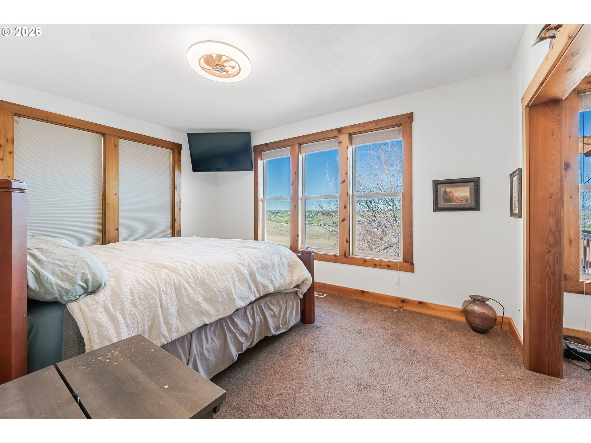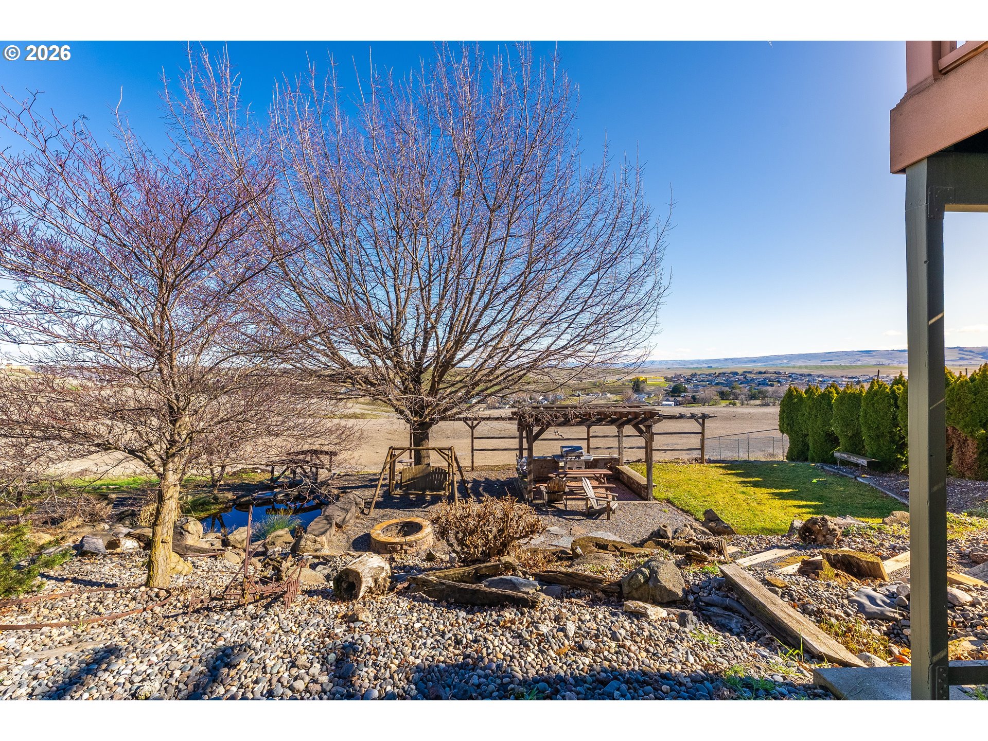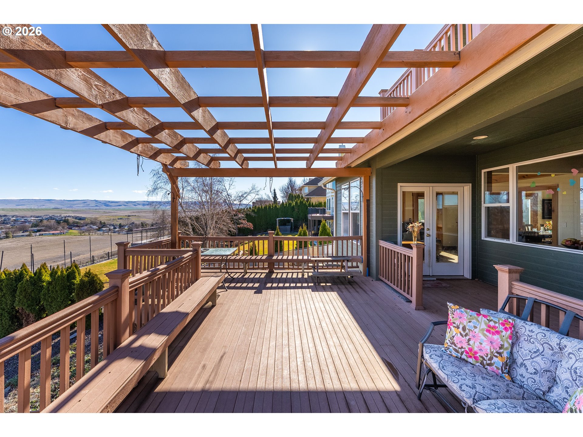 Location, Location, Location!Welcome to the highly sought-after SW 18th area of Pendleton, where breathtaking views of the Blue Mountains meet timeless custom design. This exceptional 4,029± sq. ft. home offers space, flexibility, and stunning scenery you’ll enjoy every single day. Featuring 5 bedrooms and 3.5 baths, this thoughtfully designed home provides incredible versatility, including the rare opportunity for two primary suites—one conveniently located on the main level and another upstairs. The main floor also includes an additional ensuite bedroom, ideal for guests or multi-generational living. Inside, you’ll find quality finishes throughout. Enjoy the granite countertops, hardwood floors, tile accents, and stainless-steel gas appliances. Relax and unwind in the luxurious jetted tub, or gather with friends and family in the open living spaces designed for comfort and entertaining. Step outside to enjoy the covered deck and covered patio—perfect for taking in those spectacular Blue Mountain views year-round. The beautifully maintained yard includes a garden area and tranquil water feature. This home offers extra savings with the solar system. Get paid back on all the sunny days while you enjoy the views. With one of the only access points to the lower backyard, this property offers a unique advantage that sets it apart. Beauty. Size. Views. Location. This home truly has it all.Don’t miss your chance to own a piece of one of Pendleton’s most desirable neighborhoods.Call today to schedule your private showing!