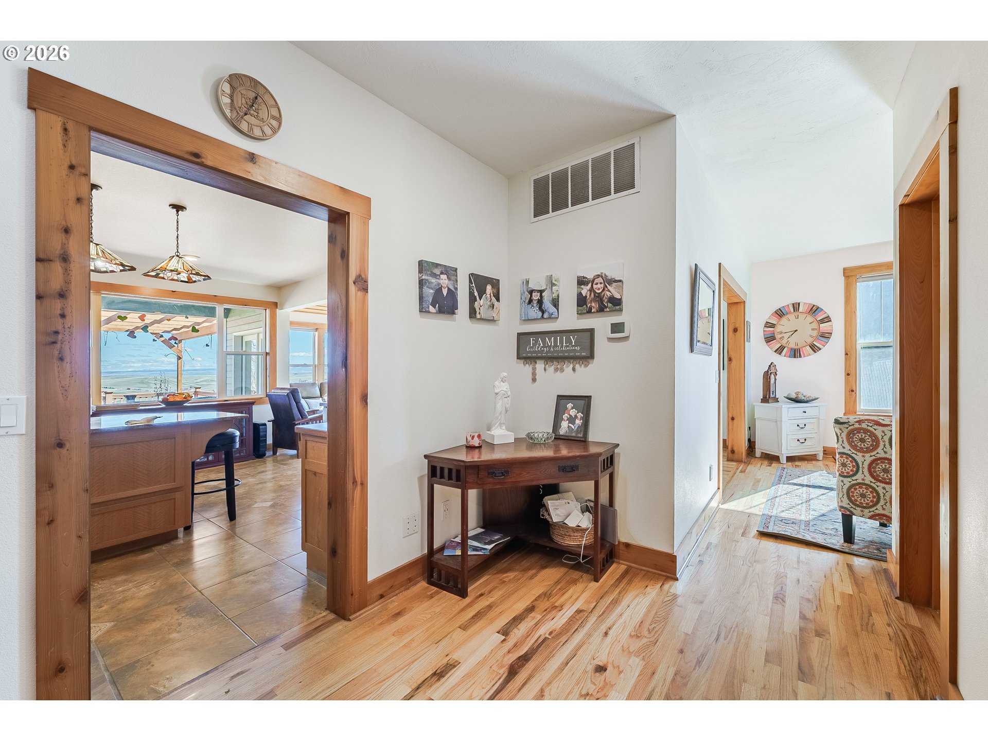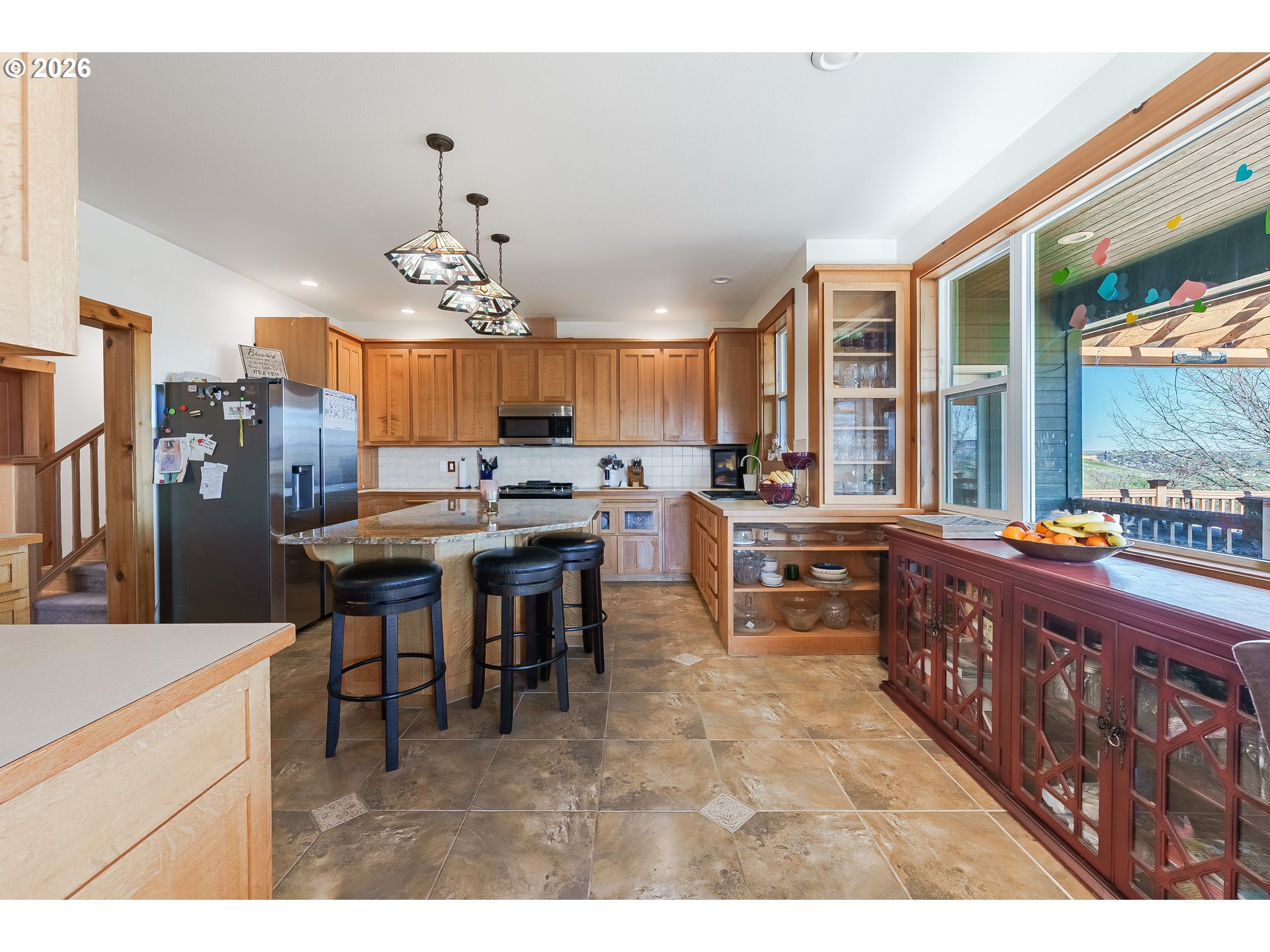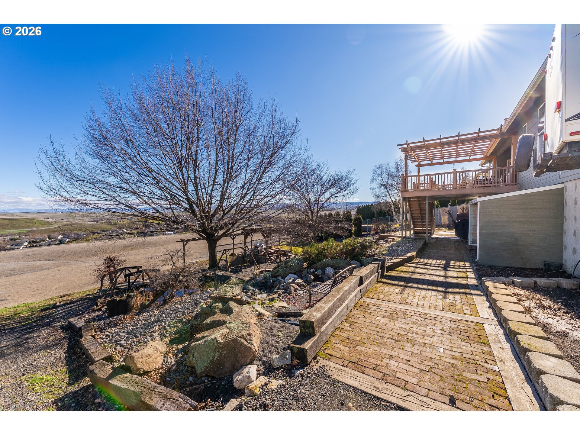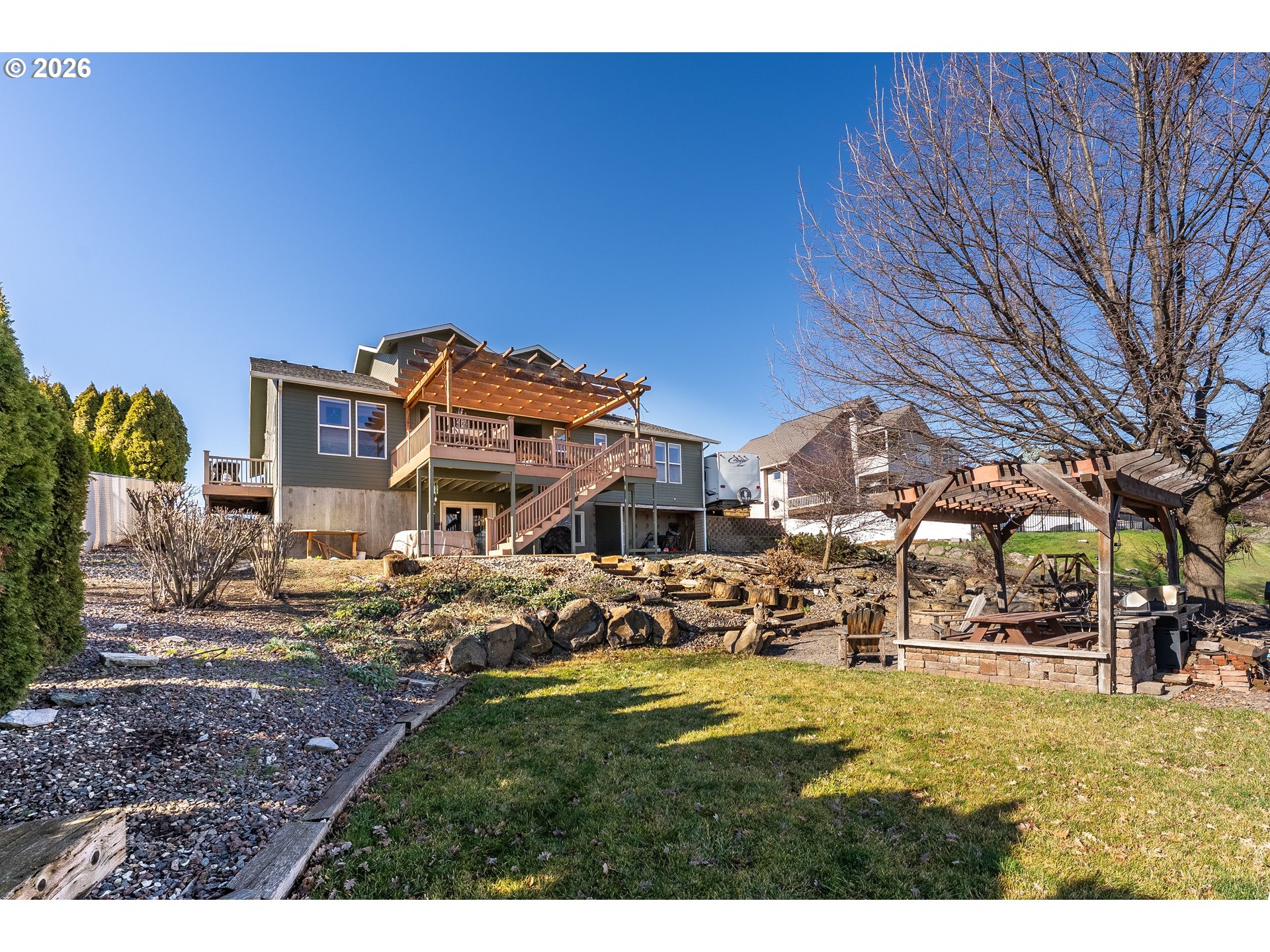 Location, Location, Location!Welcome to the highly sought-after SW 18th area of Pendleton, where breathtaking views of the Blue Mountains meet timeless custom design. This exceptional 4,029± sq. ft. home offers space, flexibility, and stunning scenery you’ll enjoy every single day. Featuring 5 bedrooms and 3.5 baths, this thoughtfully designed home provides incredible versatility, including the rare opportunity for two primary suites—one conveniently located on the main level and another upstairs. The main floor also includes an additional ensuite bedroom, ideal for guests or multi-generational living. Inside, you’ll find quality finishes throughout. Enjoy the granite countertops, hardwood floors, tile accents, and stainless-steel gas appliances. Relax and unwind in the luxurious jetted tub, or gather with friends and family in the open living spaces designed for comfort and entertaining. Step outside to enjoy the covered deck and covered patio—perfect for taking in those spectacular Blue Mountain views year-round. The beautifully maintained yard includes a garden area and tranquil water feature. This home offers extra savings with the solar system. Get paid back on all the sunny days while you enjoy the views. With one of the only access points to the lower backyard, this property offers a unique advantage that sets it apart. Beauty. Size. Views. Location. This home truly has it all.Don’t miss your chance to own a piece of one of Pendleton’s most desirable neighborhoods.Call today to schedule your private showing!