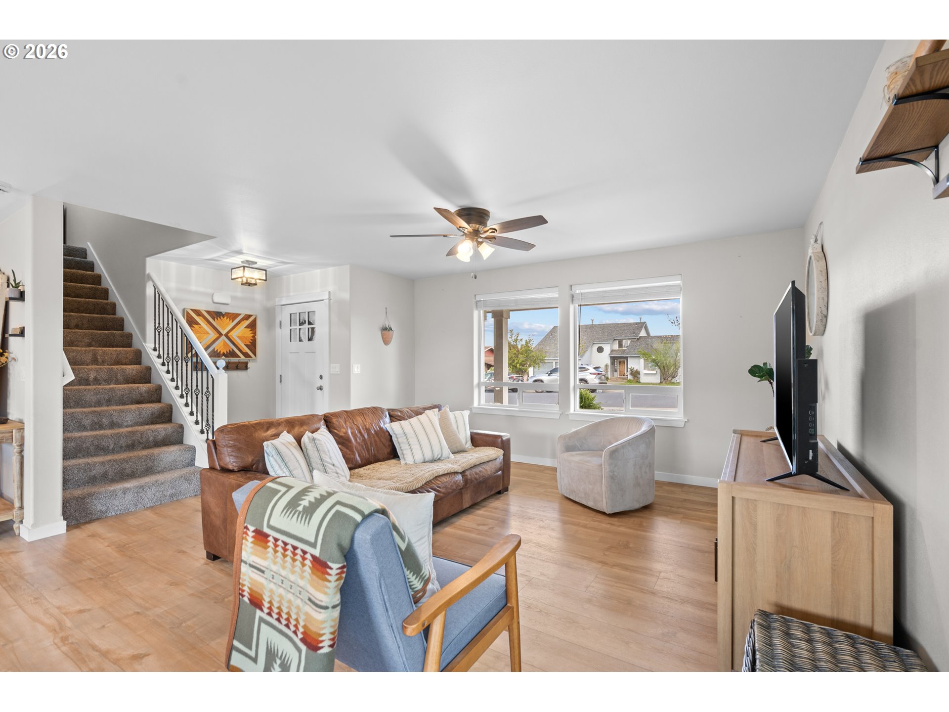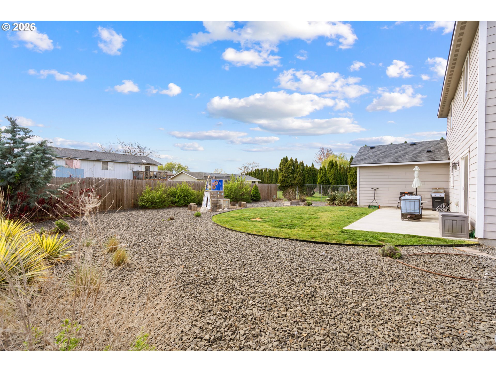 Well-positioned near the Columbia River and competitively priced in Umatilla, Oregon this 2020-built home offers space, flexibility and value that is increasingly hard to find. With 4 bedrooms, 2.5 baths, and approximately 2,097 sq ft, the layout is both functional and versatile. The main-level primary suite provides everyday ease, while the upper level includes additional bedrooms plus a spacious fourth bedroom that can also function as a bonus room, media space, or flexible retreat with peek-a-boo river views. The kitchen features an island, pantry, and stainless-steel appliances, opening to the main living area for a natural flow that supports both daily living and entertaining. High ceilings and natural light enhance the overall feel of the home. Outside, the xeriscape yard keeps maintenance simple while maximizing usable space. The extended concrete pad is ready for a variety of uses: currently prepped for summertime fun with an above ground pool (or basketball year-round), while the patio and fire pit area create a comfortable setting for outdoor gatherings. Located just minutes from Big River Golf Course with quick access to I-82 across the river to the Tri-Cities and a convenient commute to the Port of Morrow in Boardman, this home provides a practical option for a variety of work locations. With newer construction, flexible living space, and a compelling price point, 185 Rio Senda St, Umatilla presents a strong opportunity in today’s market.