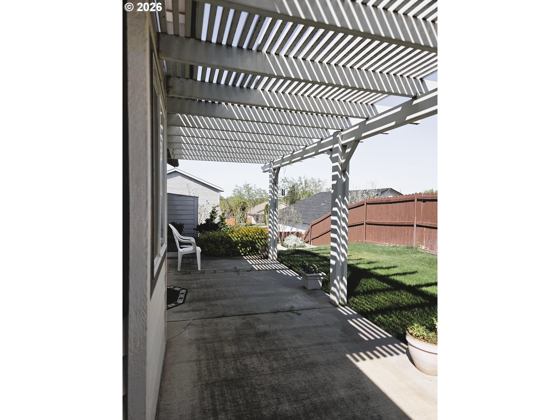 Hard-to-find 3-car garage meets comfort and style in this beautifully maintained home, nestled in a desirable Hermiston neighborhood. This inviting 3-bedroom, 2-bath residence offers 1,727 sq ft of comfortable living space with an open and functional layout perfect for everyday living and entertaining.Step through the welcoming courtyard entry and into a spacious interior featuring a cozy living room with gas fireplace, vaulted ceilings, and abundant natural light. The open kitchen flows seamlessly into the dining and family areas, creating a warm and connected space for gatherings.Enjoy indoor-outdoor living with sliding doors leading to a covered patio and pergola—ideal for relaxing or entertaining—overlooking a beautifully landscaped and fenced backyard.This home combines comfort, functionality, and great curb appeal—all in a convenient location nearby schools, parks, and amenities, and features a rare find 3-car garage.