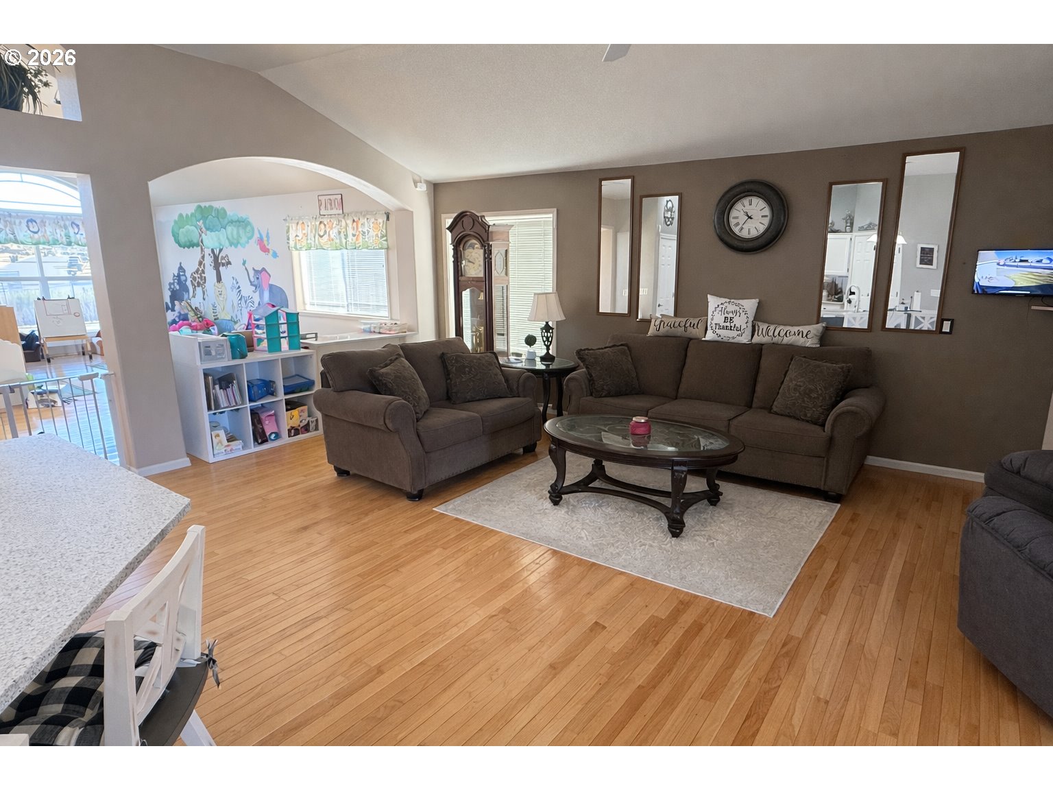 This Incredible Single Level Home features 4 bedrooms, 2 baths and 2,046 square feet on a large, landscaped lot conveniently located close to schools and parks! Inside features beautiful real hardwood floors, soaring vaulted ceilings, and an open concept layout. Stunning kitchen remodel with new quartz counters, stainless steel appliances, paint, and flooring! Large master bedroom with lots of windows and a gorgeous master bath with custom tile work and jetted soaking tub. Need storage room? There is a huge 3 car attached garage with room for a man cave, workshop, or workout area. You will also love your fully fenced back yard with sprinklers, covered patio, and storage shed. This is the home you have been waiting for!