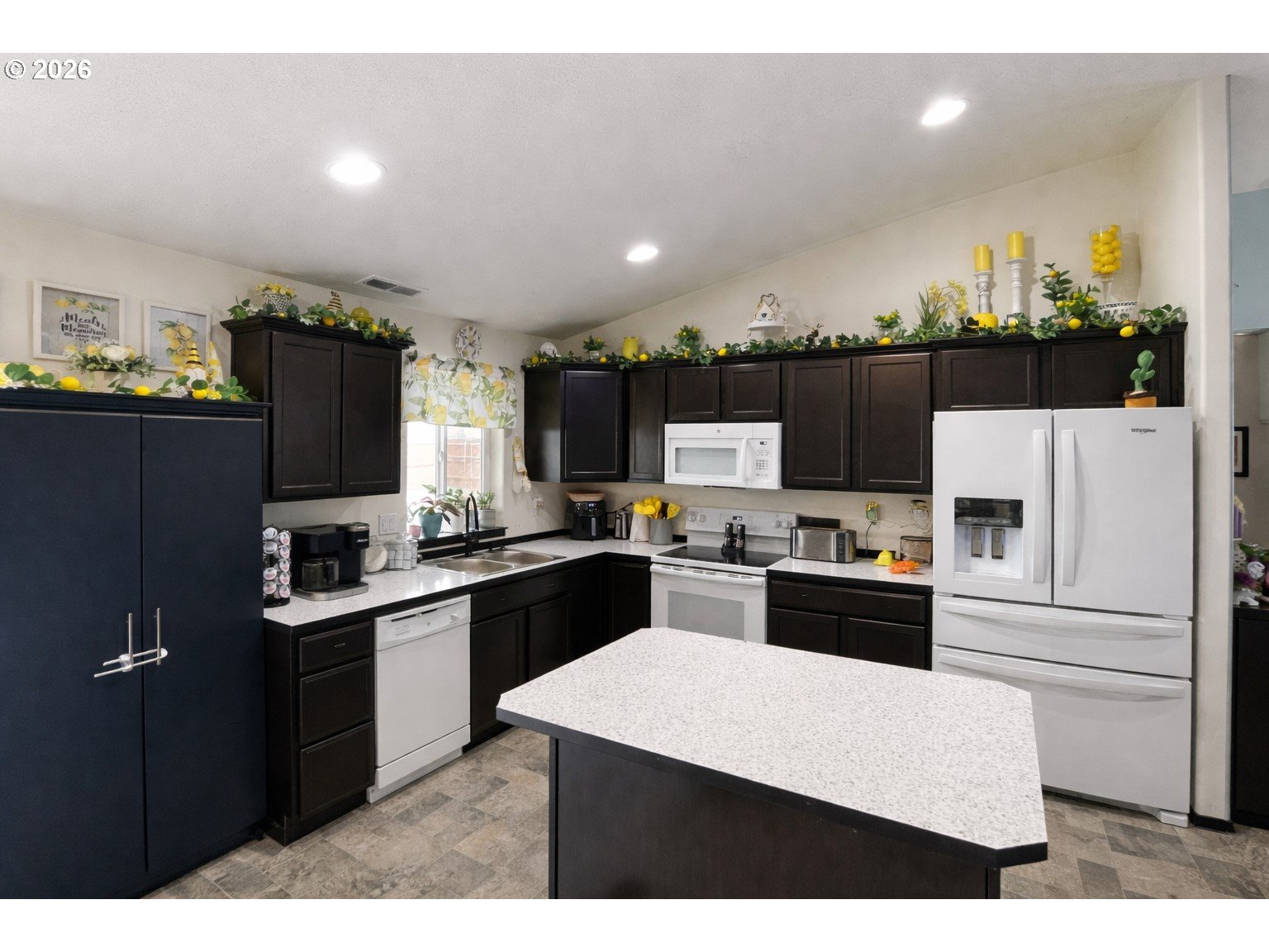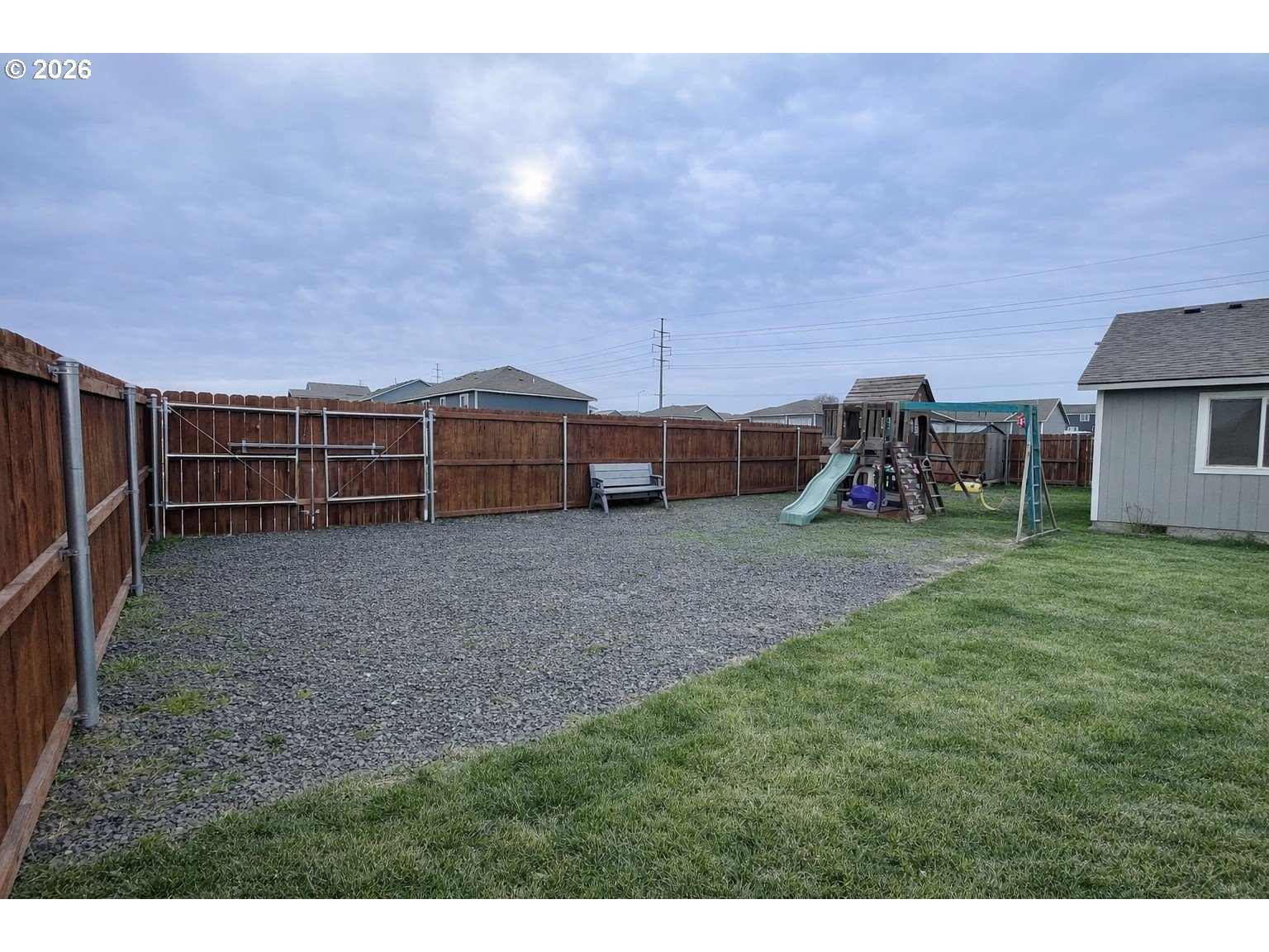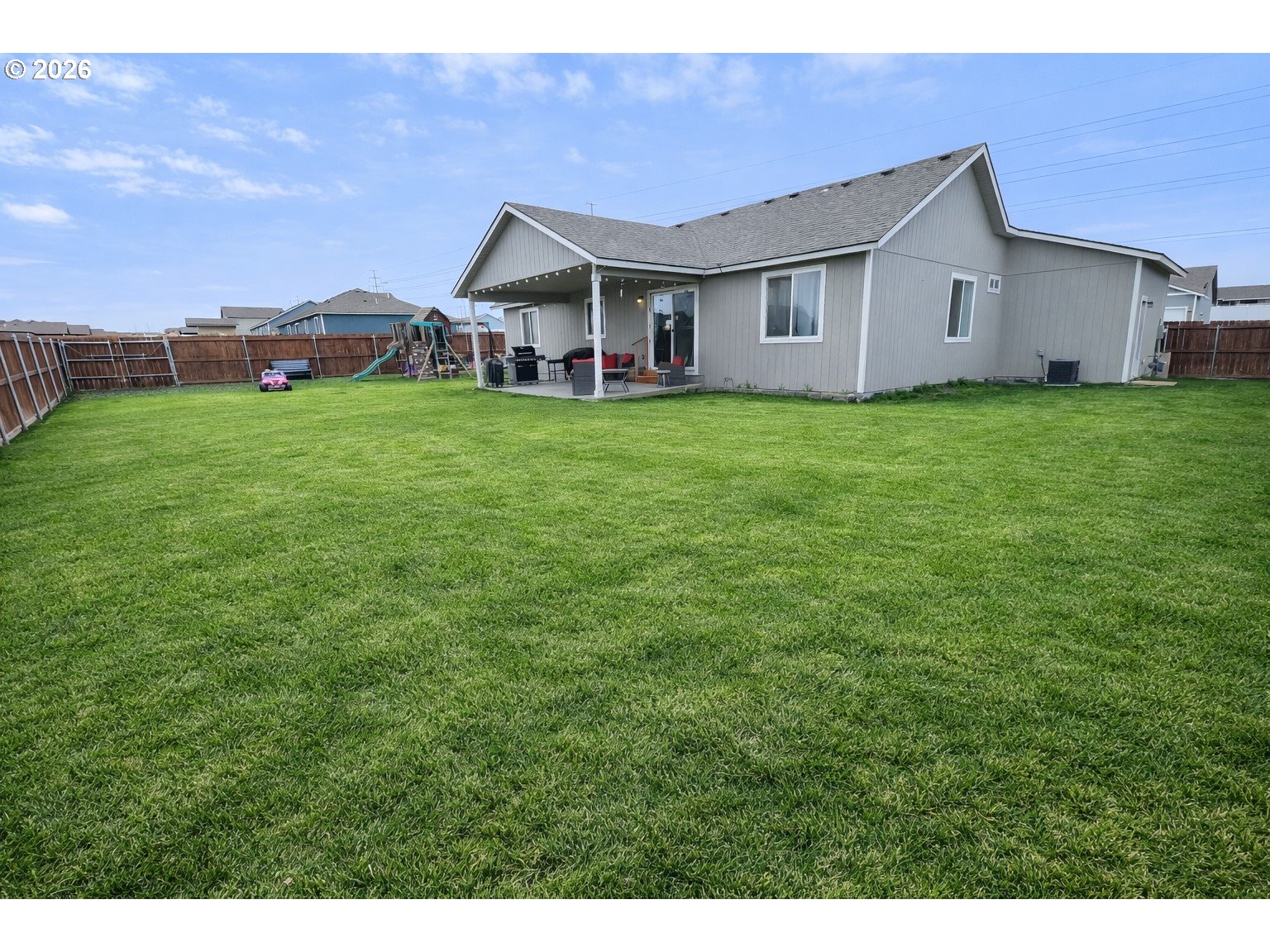 PERFECT FAMILY HOME ON A HUGE CORNER LOT! Do you need space for the kids or home business? This beautiful one level home offers 4 bedrooms and 2 full baths. Very open floor plan with vaulted ceilings creates a spacious and comfortable place to live. The kitchen offers plenty of storage and a large island for eating space or food prep! Step out back and you will find a massive covered patio that is perfect for BBQing or relaxing! The oversized 0.21 acre, corner lot was professionally leveled and finished with underground sprinklers, tons of lawn space, is fully fenced, and has a huge graveled area for RV or boat parking, or would make a great spot for a shop! You will also appreciate the three car attached garage with one bay walled off for private storage or would make an amazing man cave! Don't wait on this one! Priced to move!