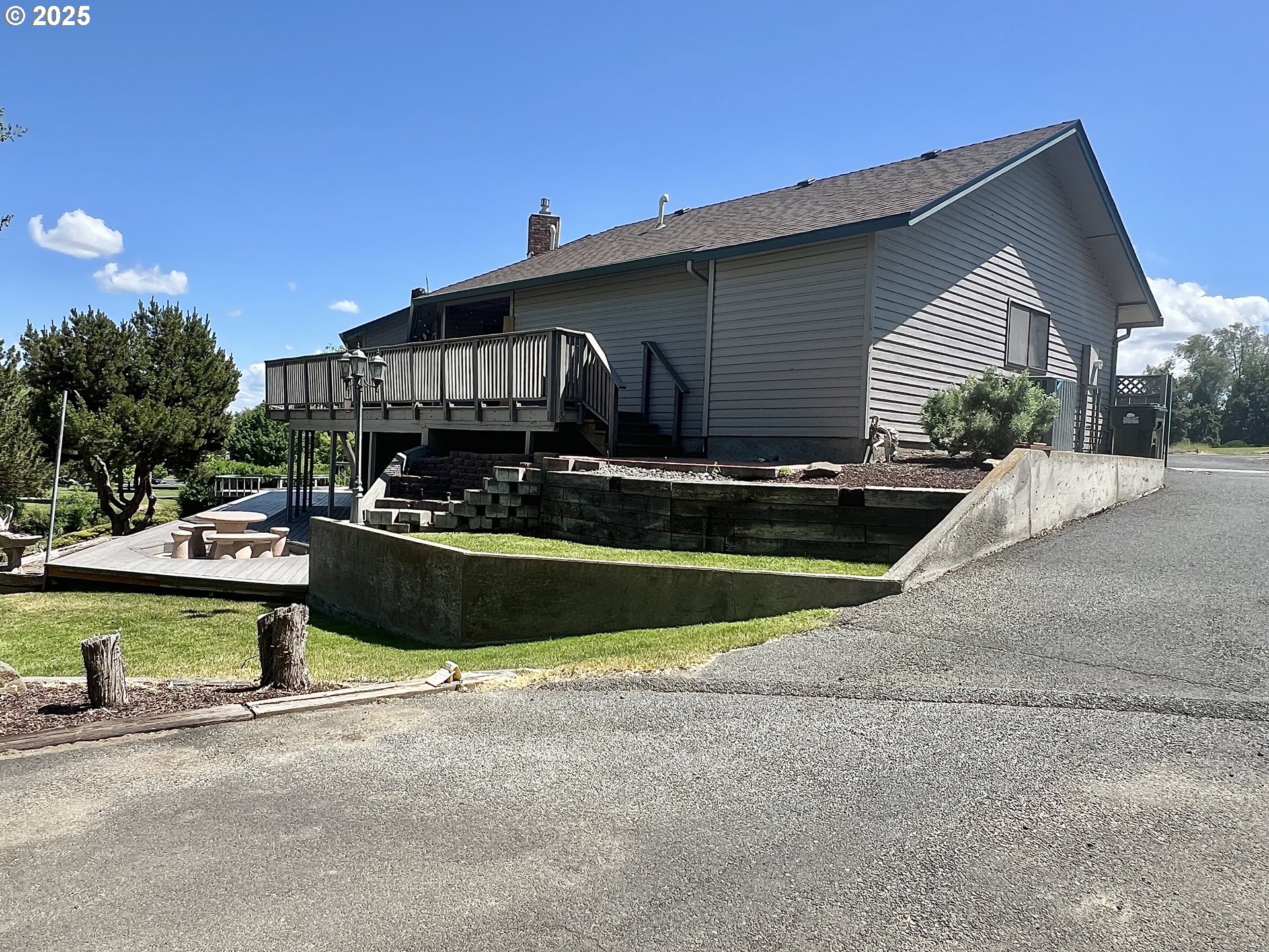 Custom built home, only 1 owner sitting on 0.91ac! As you step inside, the living room greets you with floor-to-ceiling windows that showcase views across the Umatilla River and Riverfront Park. The double-decker decks along the full backside of the home also take advantage of the views and are great for relaxation or entertaining guests. The main level flows seamlessly between the living room, kitchen, and dining area. A distinctive walk-around brick wall provides a unique space for displaying cherished items and books. The kitchen features Corian countertops, an eating bar, a large pantry, hardwood floors, and an adjacent dining room with sliding doors leading to the upper deck. Next to the living room, is a room you could use as an office, reading nook, or workout room. The primary bedroom offers private deck access, generous closet space, and a spacious bathroom equipped with a double sink vanity, quartz counters, a separate room with a toilet, a walk-in shower, and a soaking tub. The walk-out basement is where you’ll find a family room with a gas fireplace, built-in cabinets and shelving, and a door leading to the lower deck. Three additional bedrooms on this level provide privacy and share a full bath, making it perfect for guests. The laundry room is equipped with cabinets, a storage closet, a furnace, and a tankless water heater. An extra storage room, along with an adjoining space featuring a door to the lower deck, is perfect for seasonal items or outdoor equipment. The oversized 2-car garage is attached with space beside the home for RV or toy parking. Reach out to your favorite Realtor today to arrange a tour of this remarkable property!